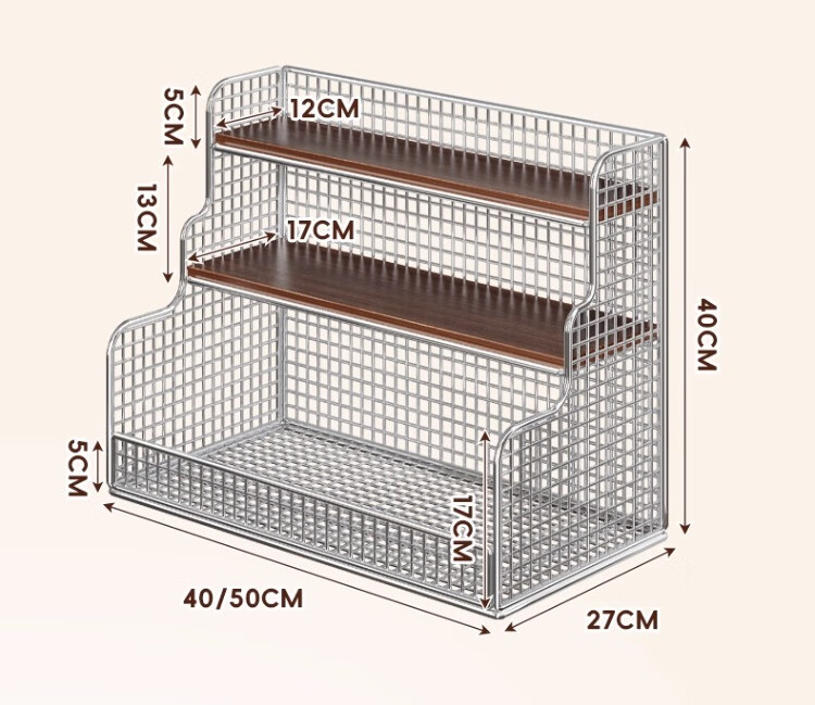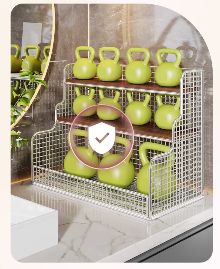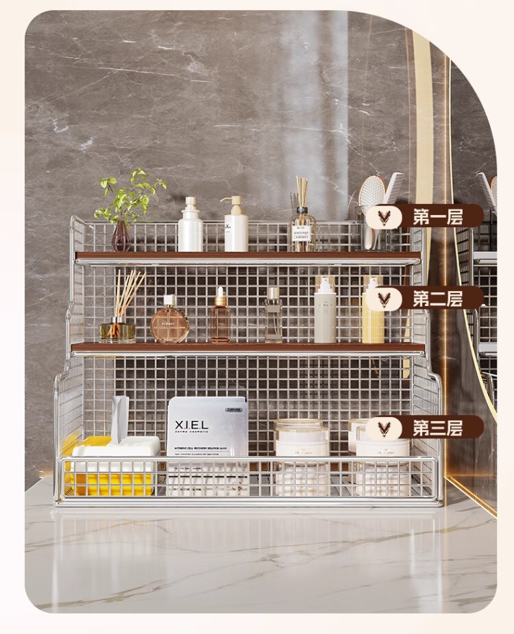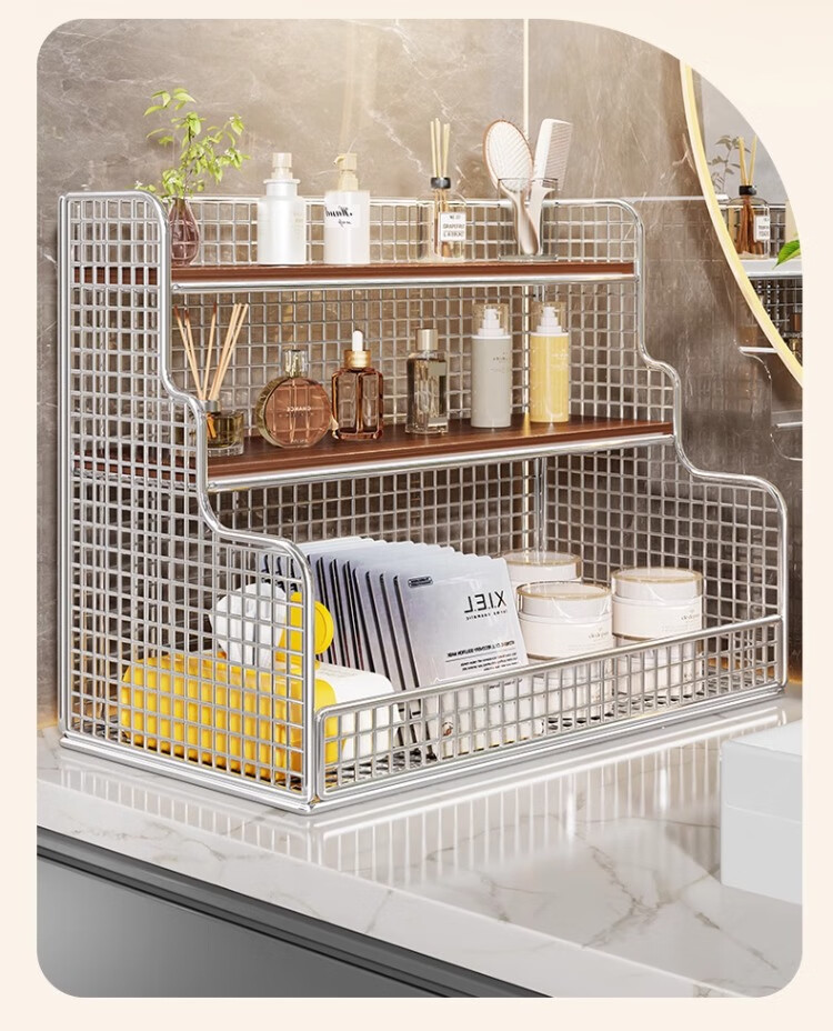 尔思家卫生间置物架台面多层化妆品收纳架护肤品浴室洗手台洗漱台储物架 银色柚木板-大号