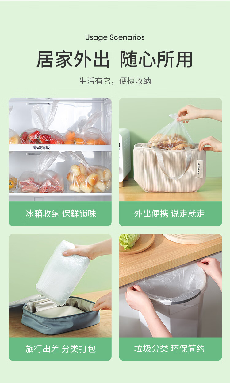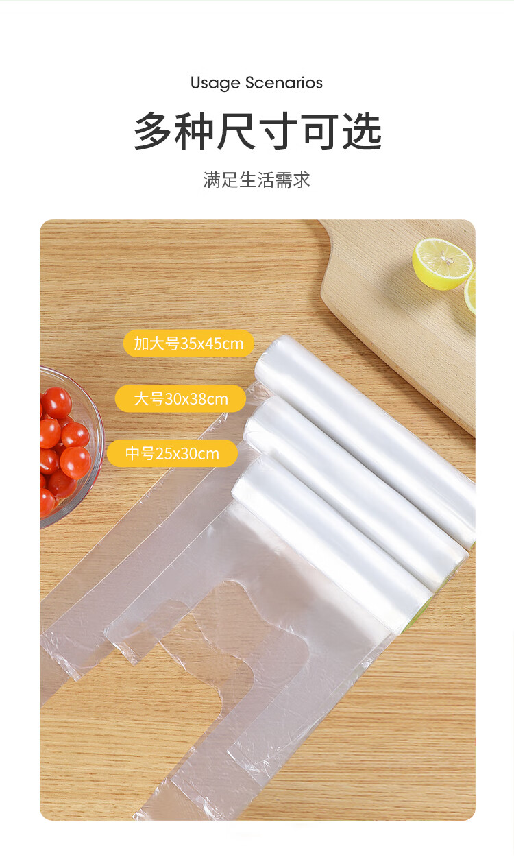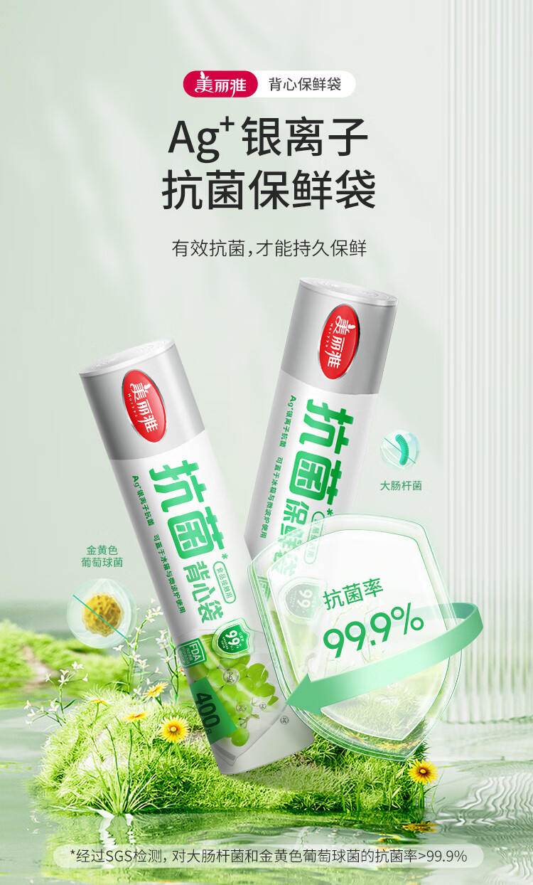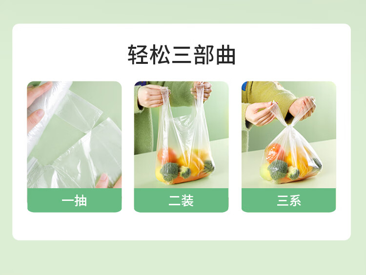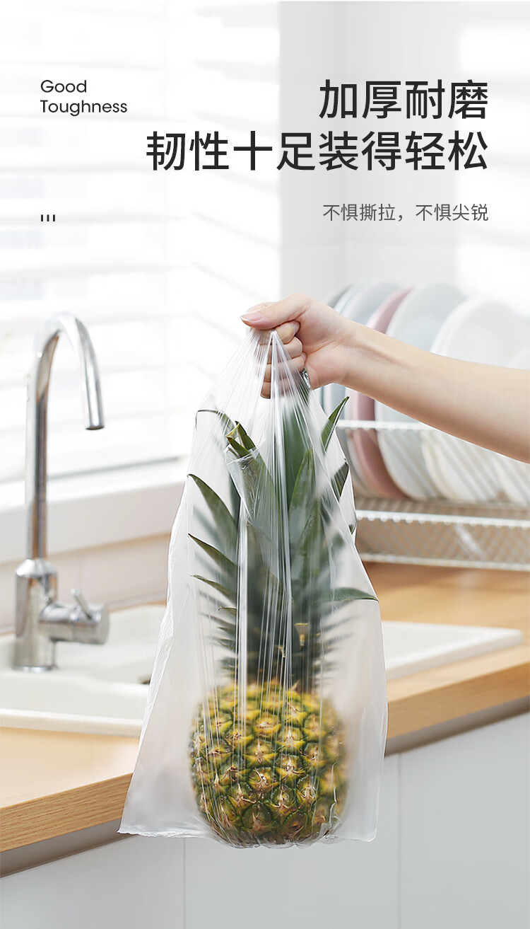 美丽雅保鲜袋背心式400只 中号食品级加厚密封袋 一次性冰箱连卷分装袋