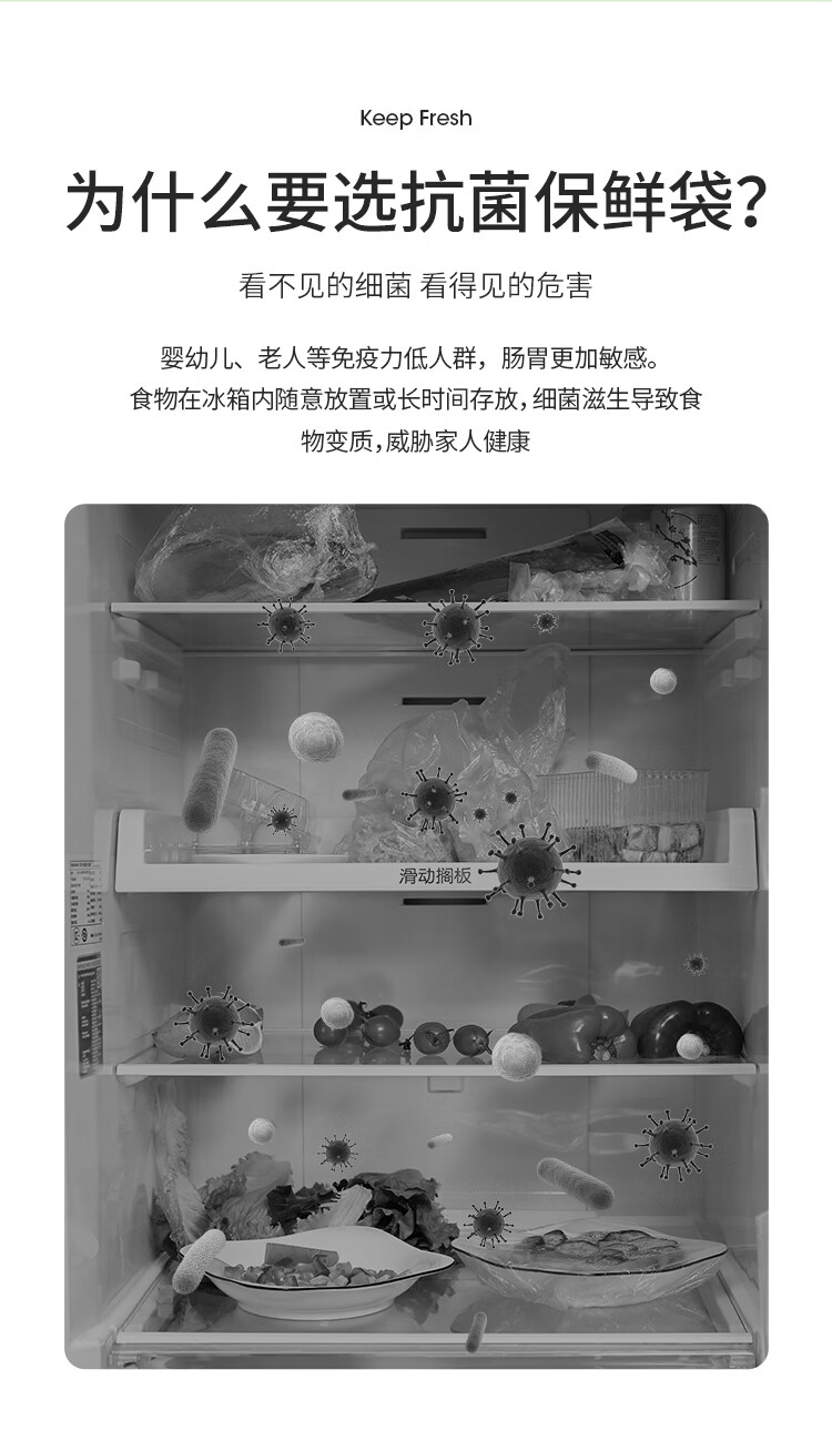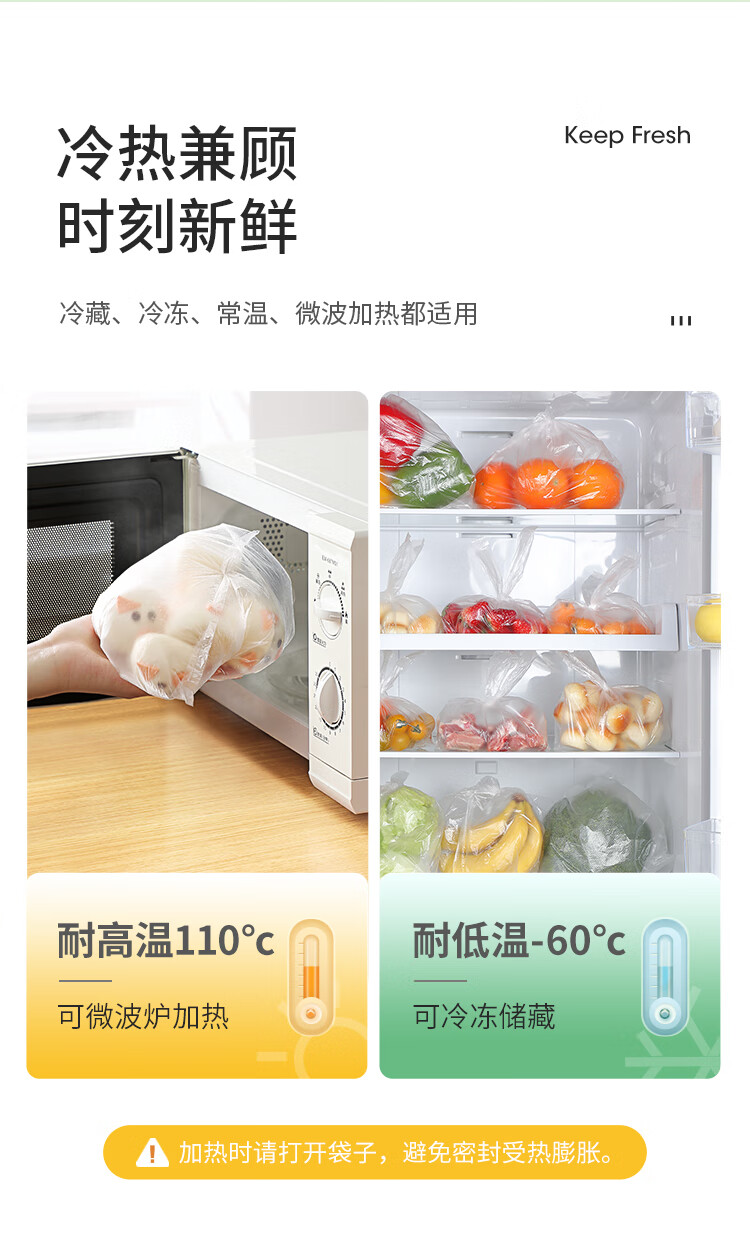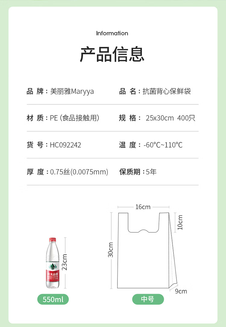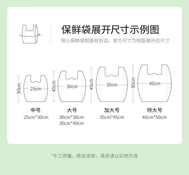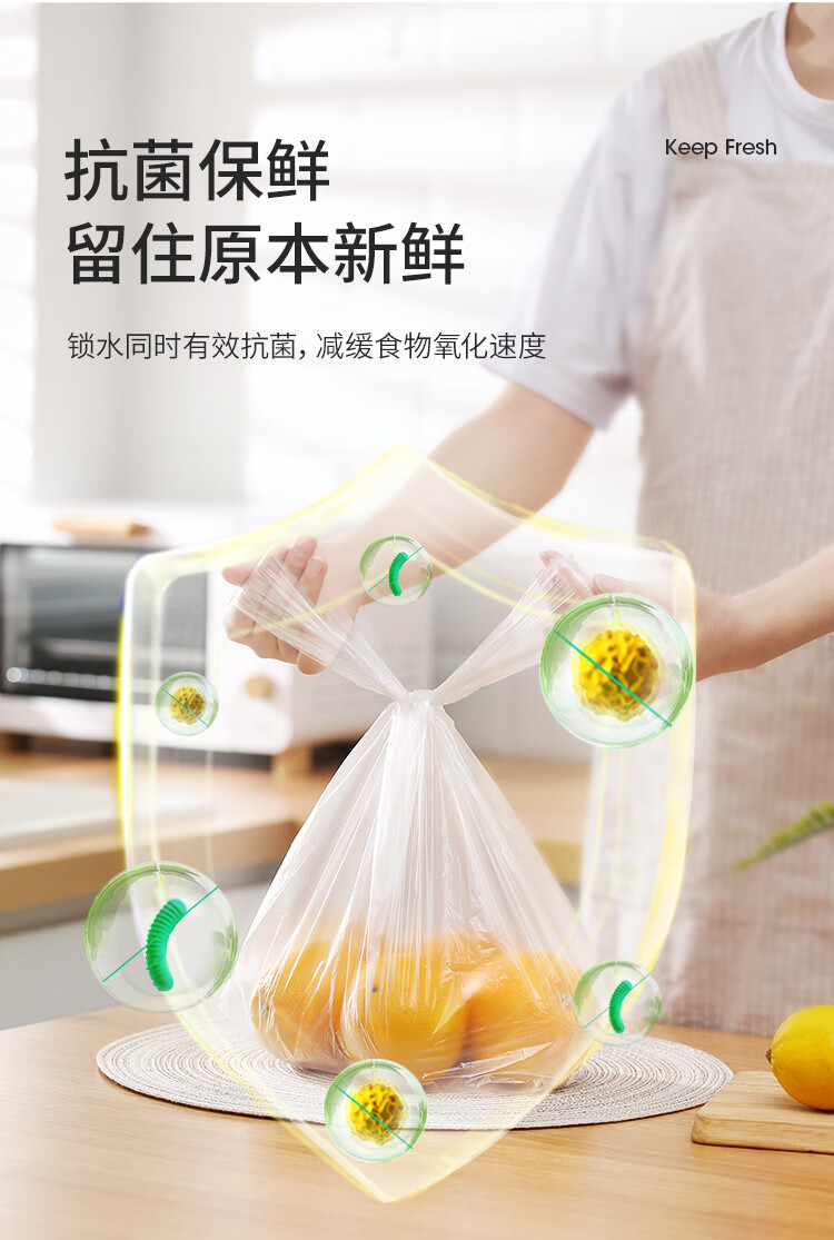 美丽雅保鲜袋背心式400只 中号食品级加厚密封袋 一次性冰箱连卷分装袋