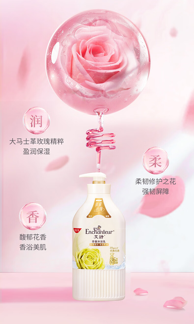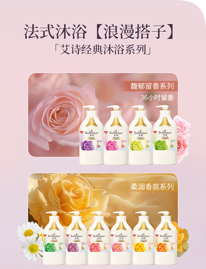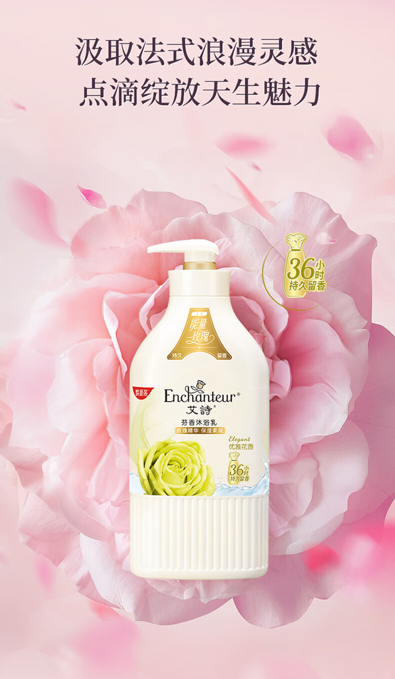 艾诗(Enchanteur)沐浴露 柔滑滋养玫瑰精华香水沐浴乳女 优雅花香420ml