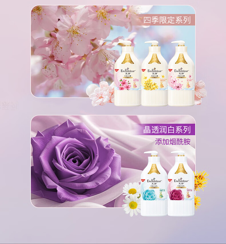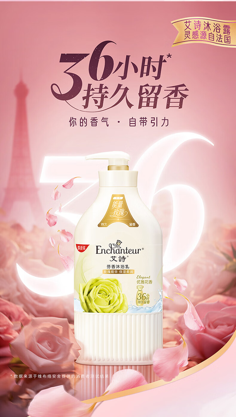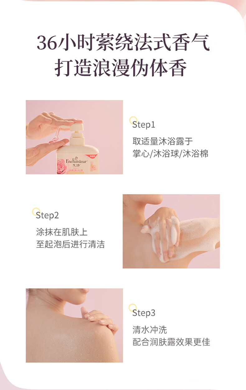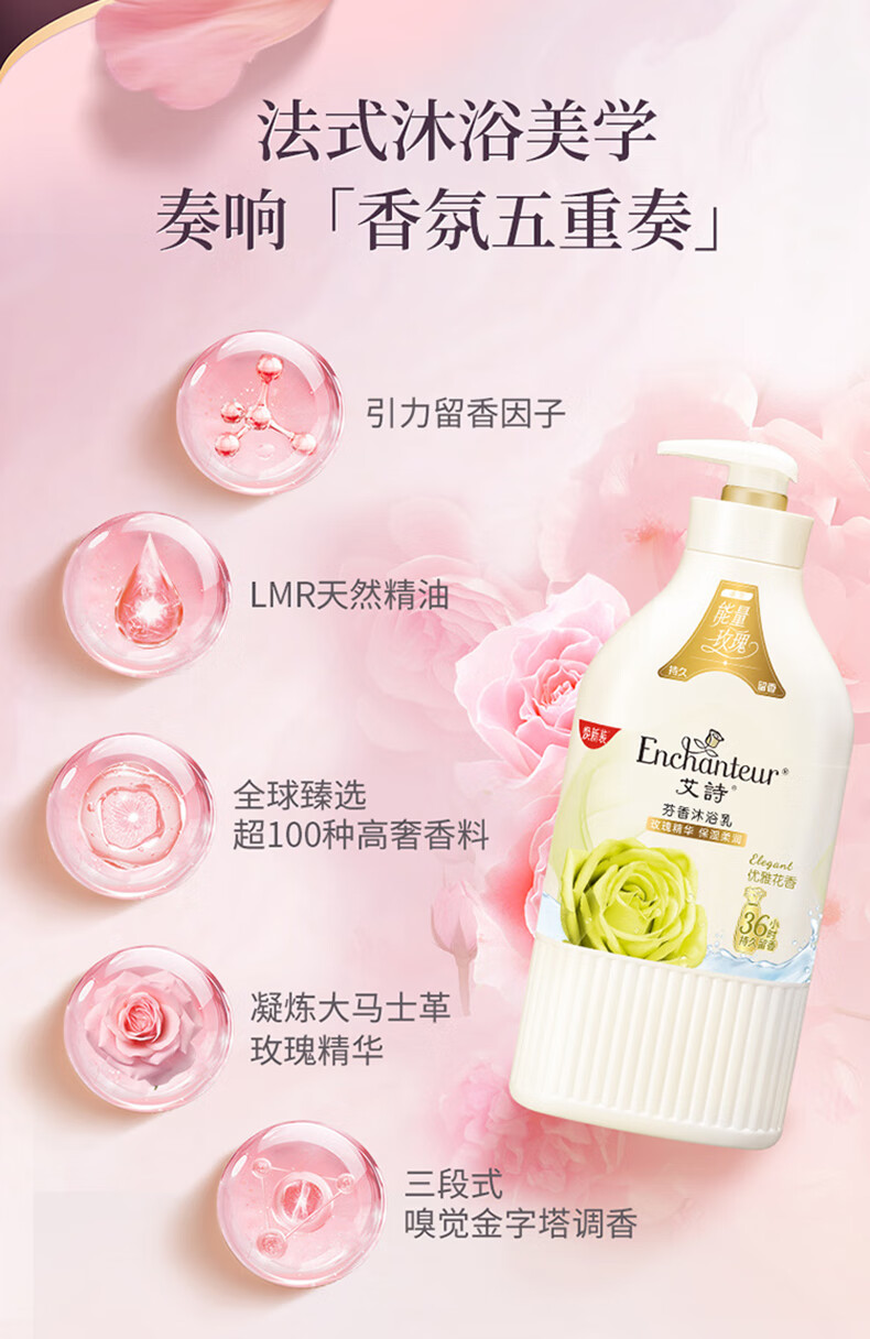 艾诗(Enchanteur)沐浴露 柔滑滋养玫瑰精华香水沐浴乳女 优雅花香420ml