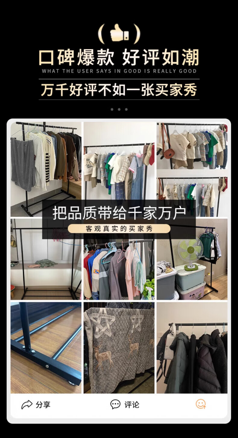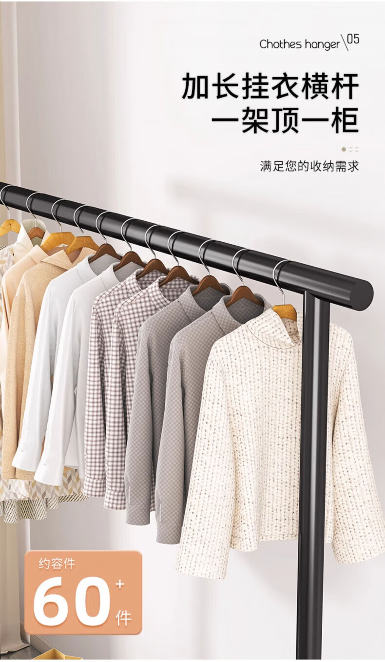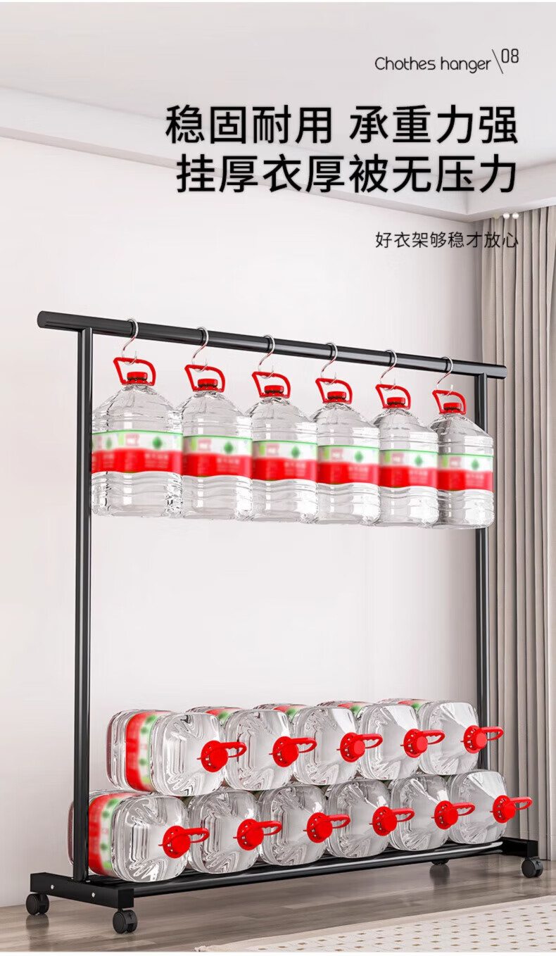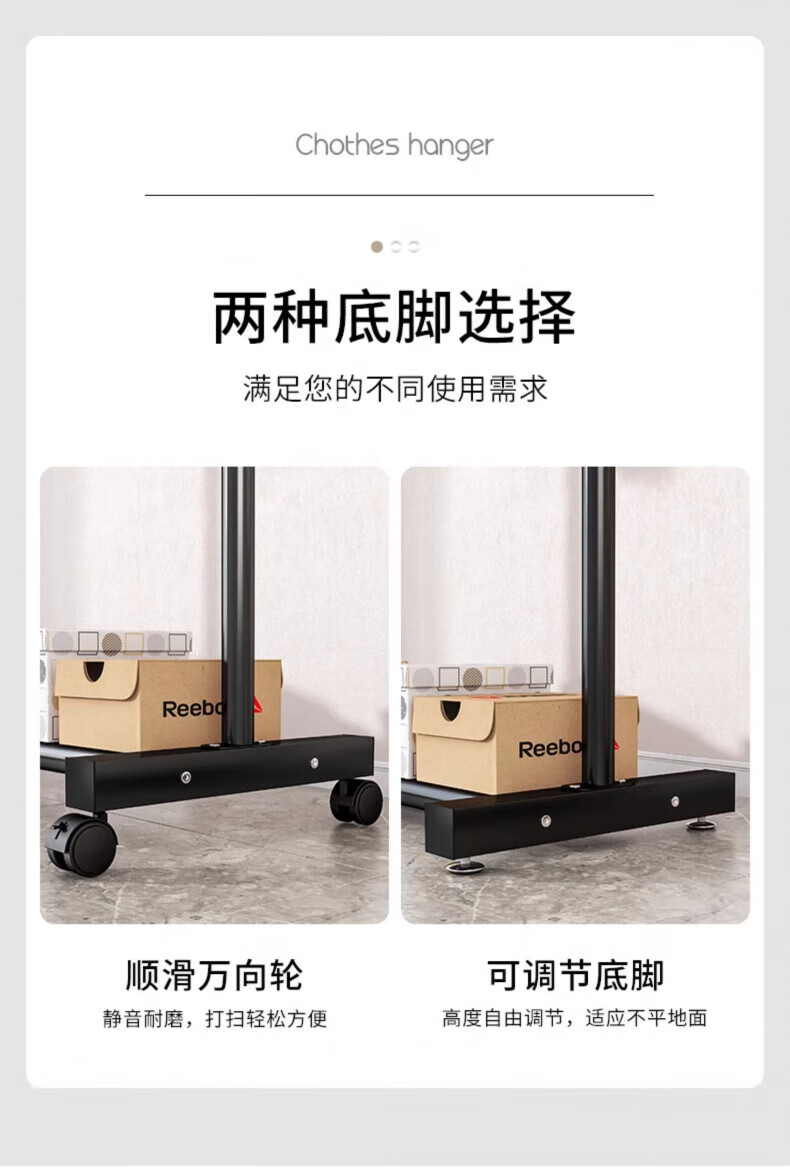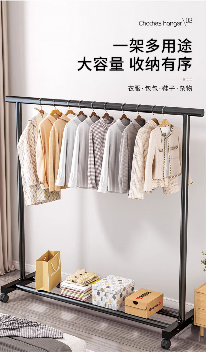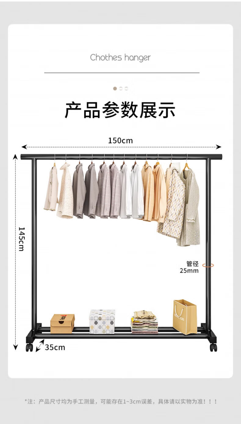 WCZ德国晾衣架落地室内家用挂衣架客厅卧室单杆加厚可移动阳台简易衣 【120cm奶油白】22加粗管+万向轮 强力承重 稳固不晃 不易生锈