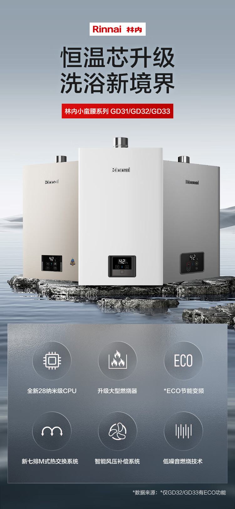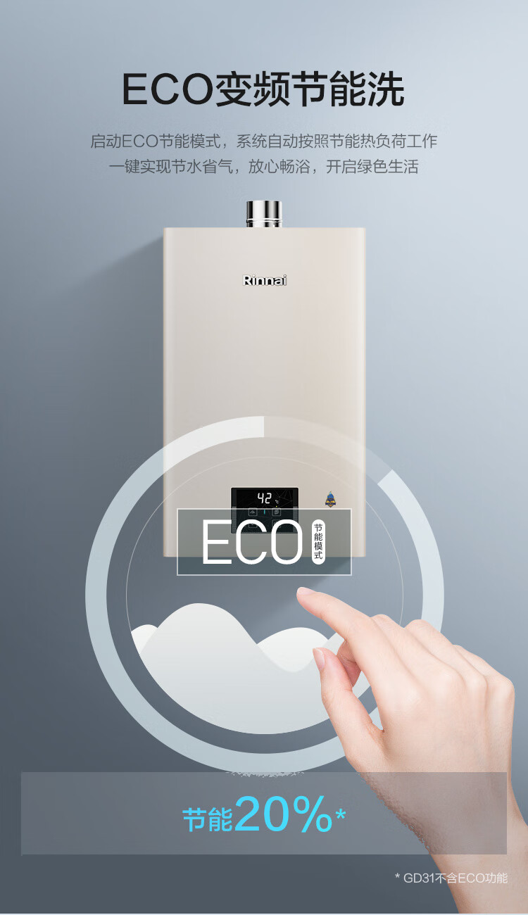林内(Rinnai)【小蛮腰】【国家补贴立减15%】 燃气热水器天然气13升 恒温轻音 纤巧机身 13GD31 以旧换新 13L GD31【小蛮腰-恒温轻音】