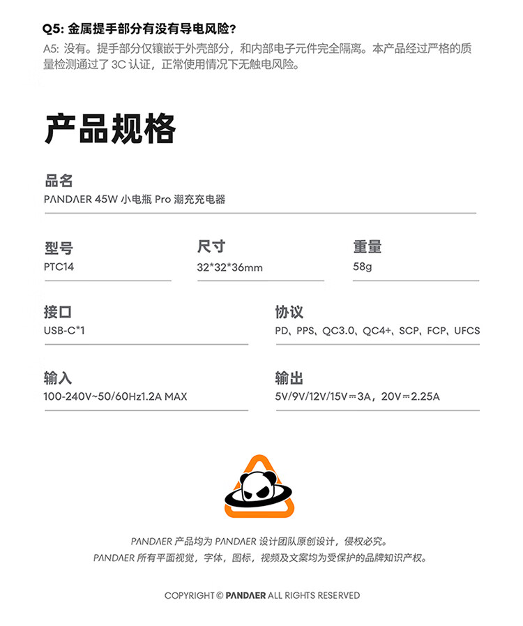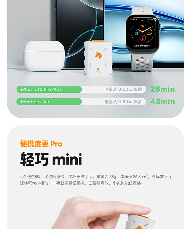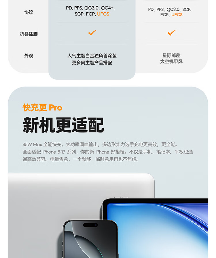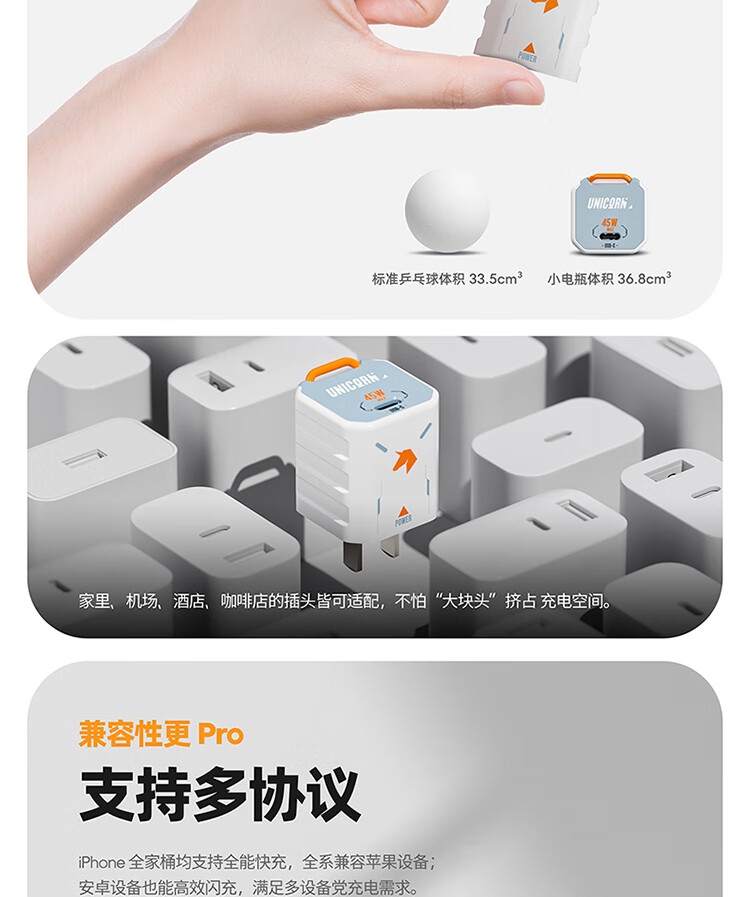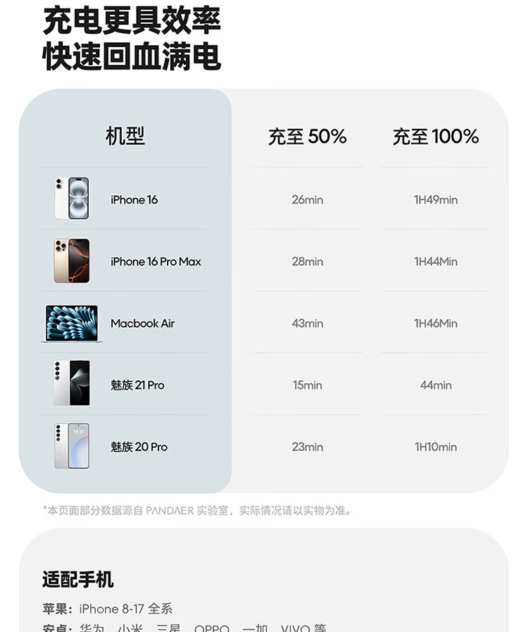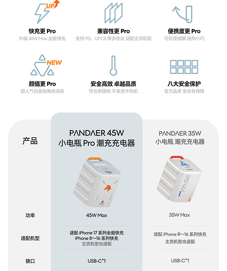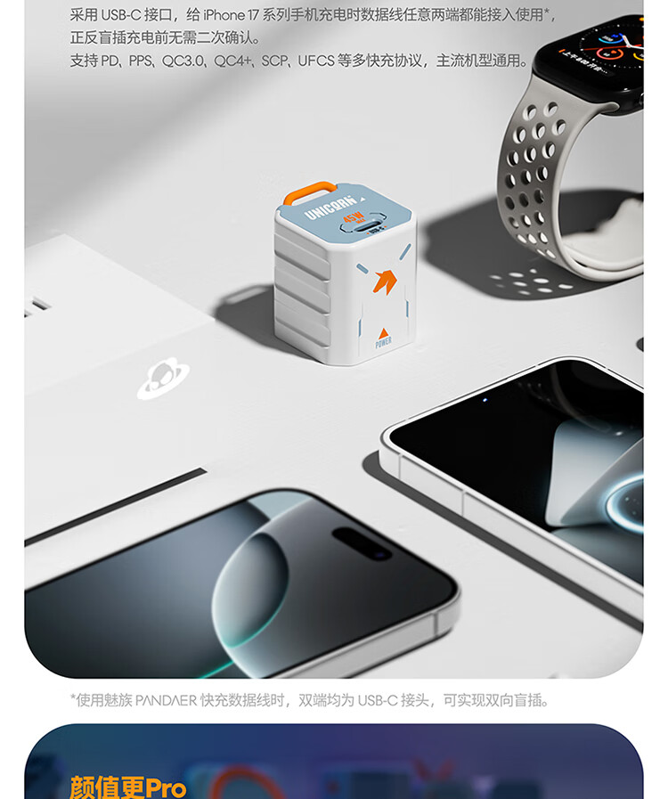 魅族(MEIZU)PANDAER 40W/45W GaN小电瓶Pro 潮充充电头 白金独角兽 可折叠插脚 多品牌兼容 适用iPhone17系列