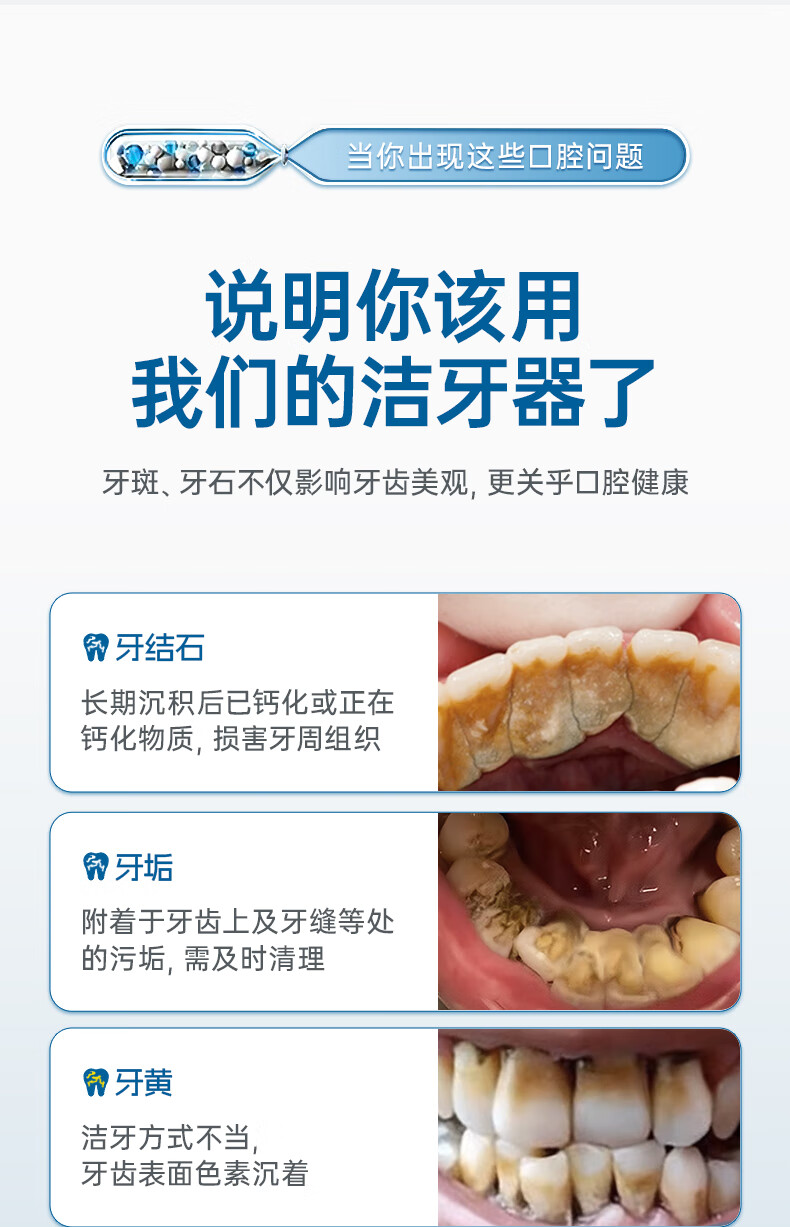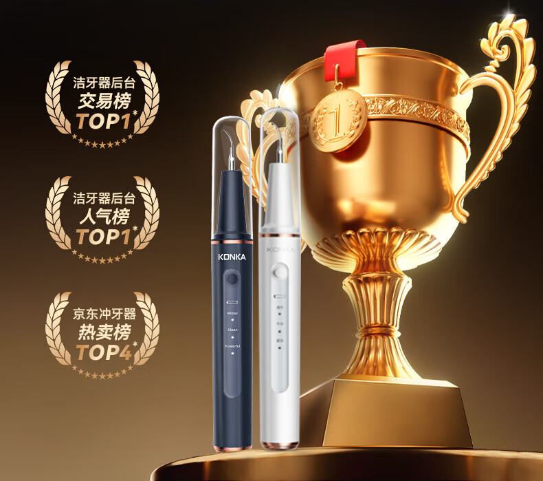 康佳(KONKA)超频声波洁牙器洗牙器结石超去清除洁洗牙齿冲洗机器去黄牙结石清洁打磨神器烟渍茶渍工具在家 闪耀白【高频声波+洁牙套装】 4支喷头