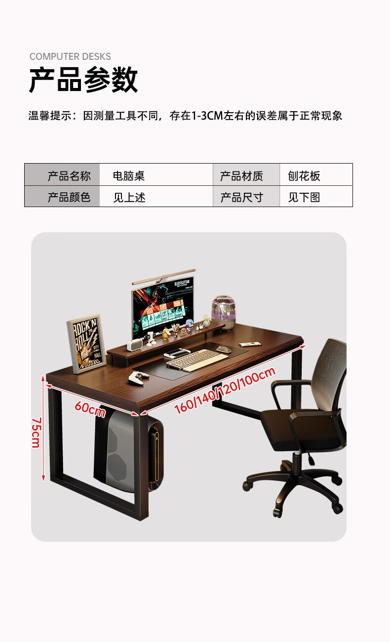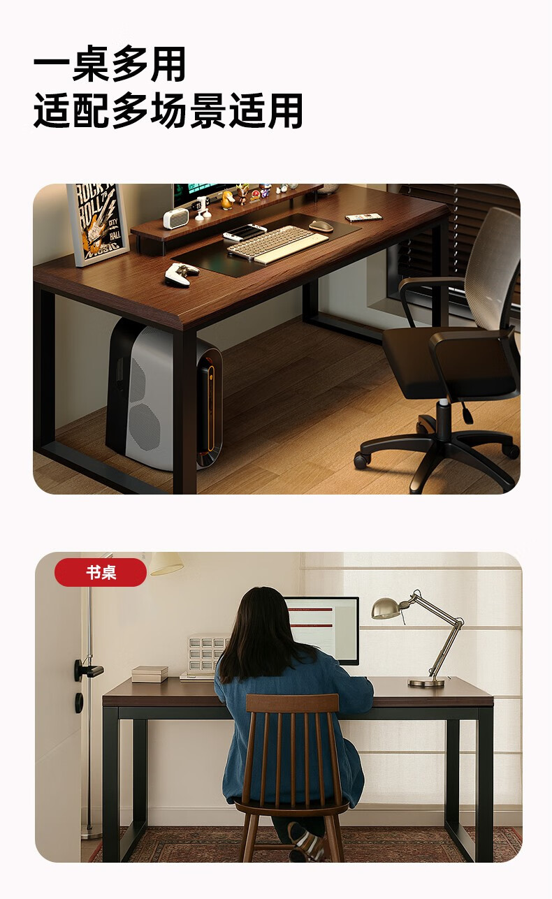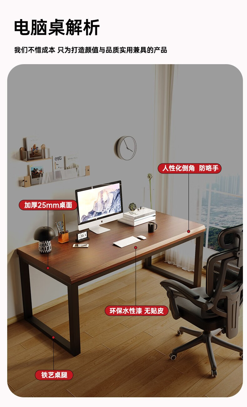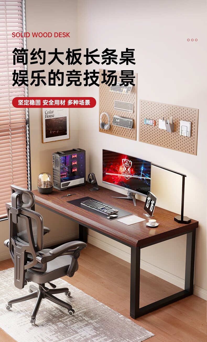 倘然之家双人长书桌卧室家用轻奢现代长条桌子简约电脑办公桌实木腿工作台 【进口松木加厚桌腿】140*50*75cm胡桃色