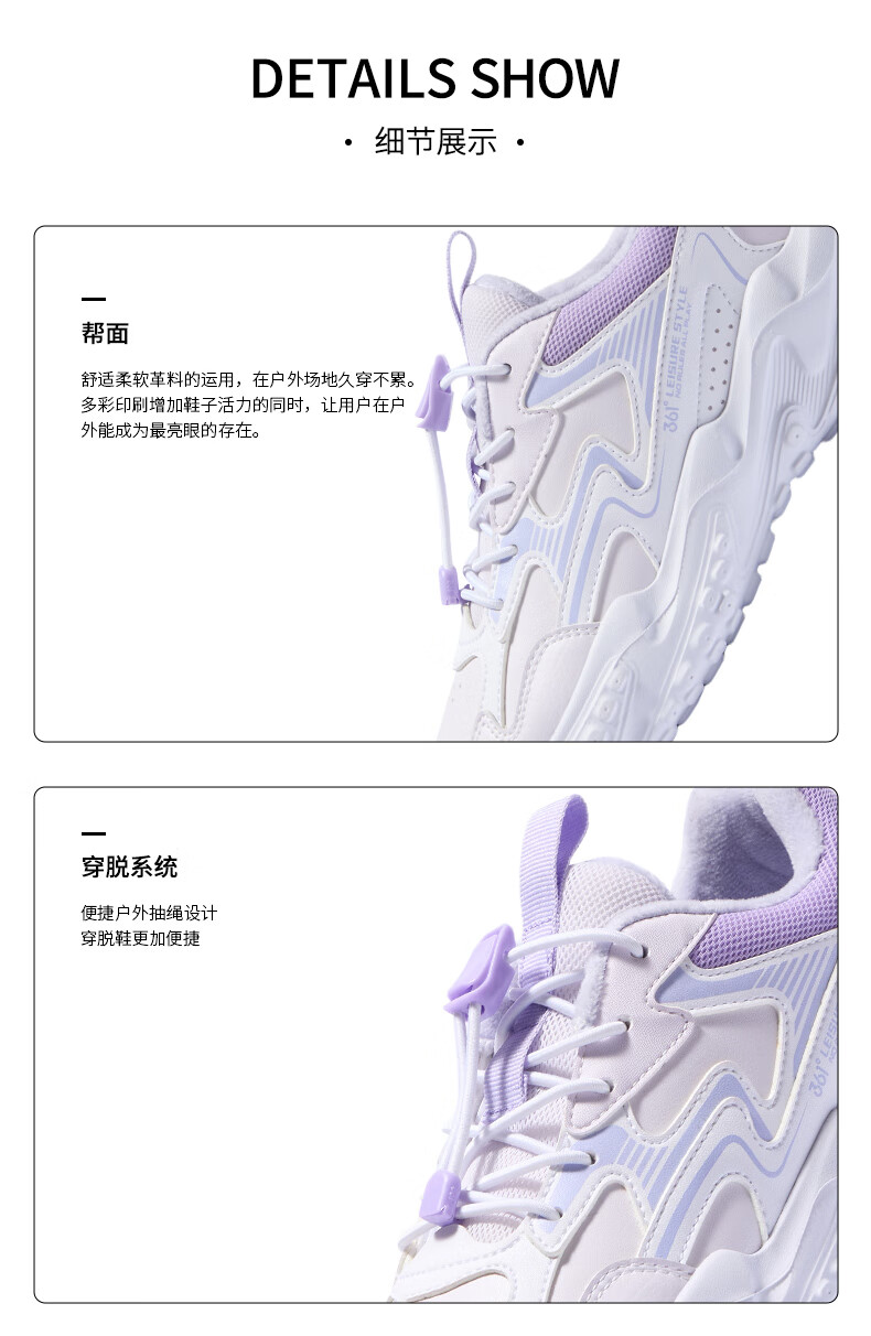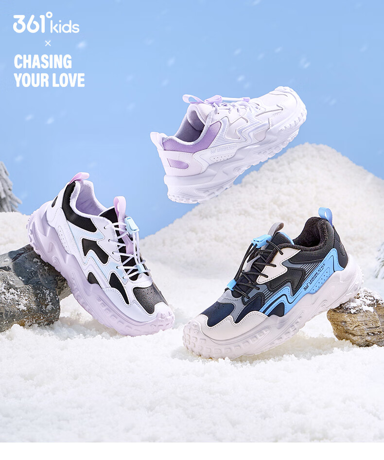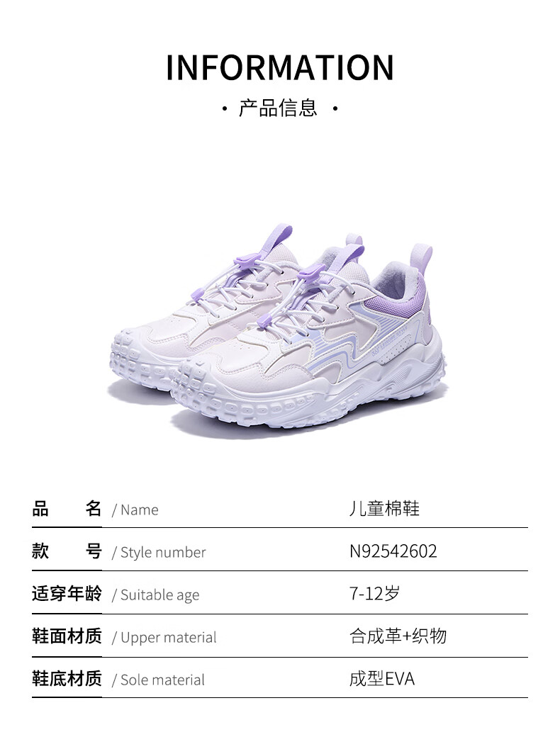 361°童鞋男女童保暖棉鞋2025年冬季新款中大童鞋子 玫瑰水紫色/361度白/木藤紫色 33