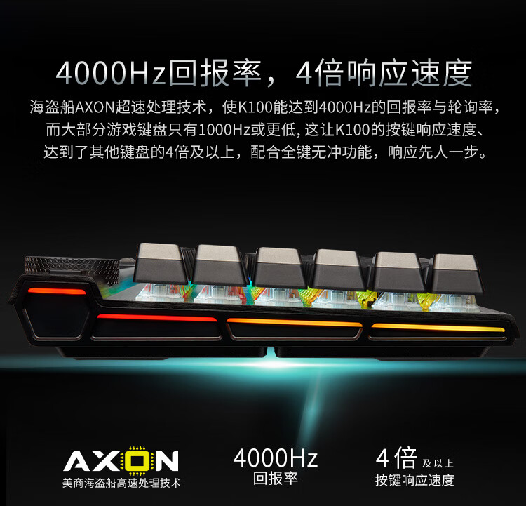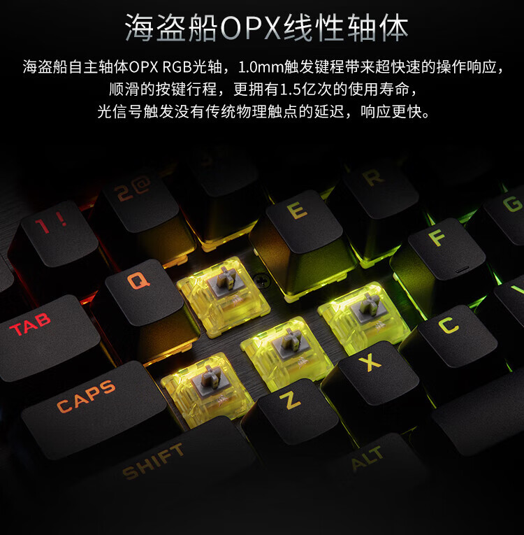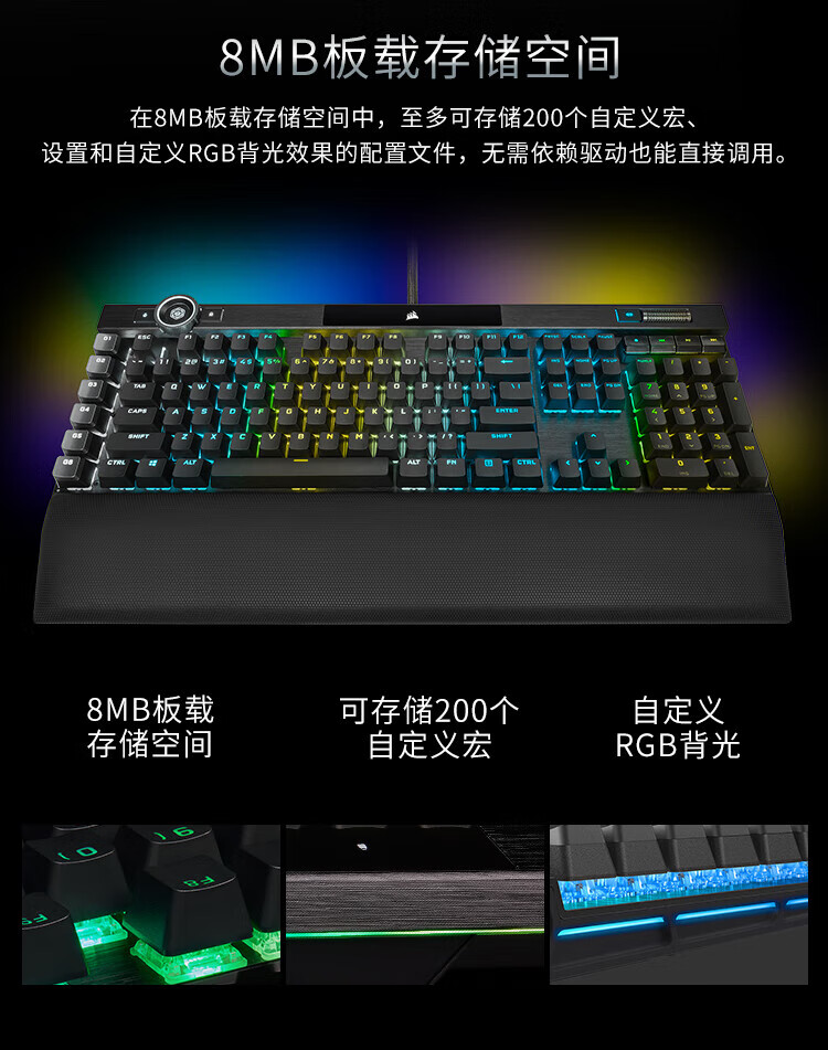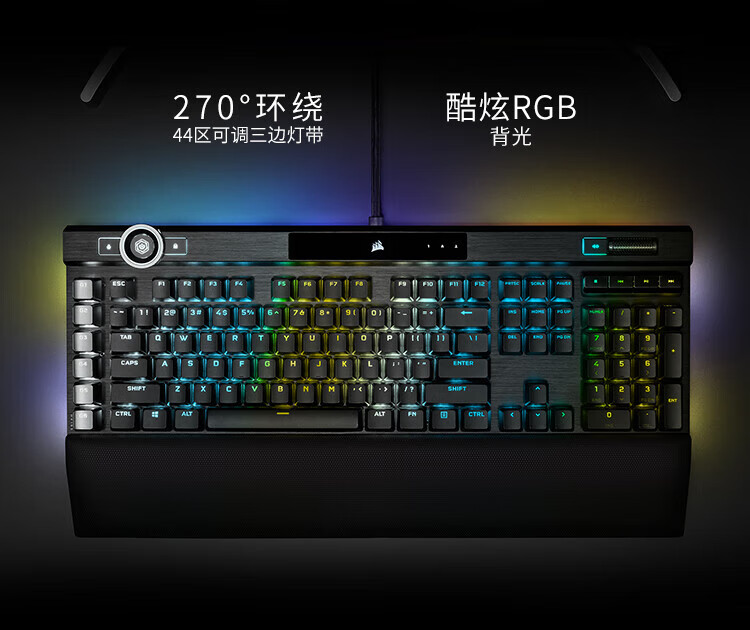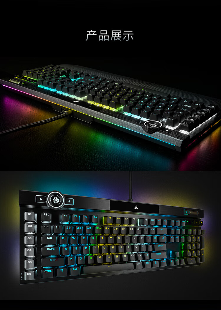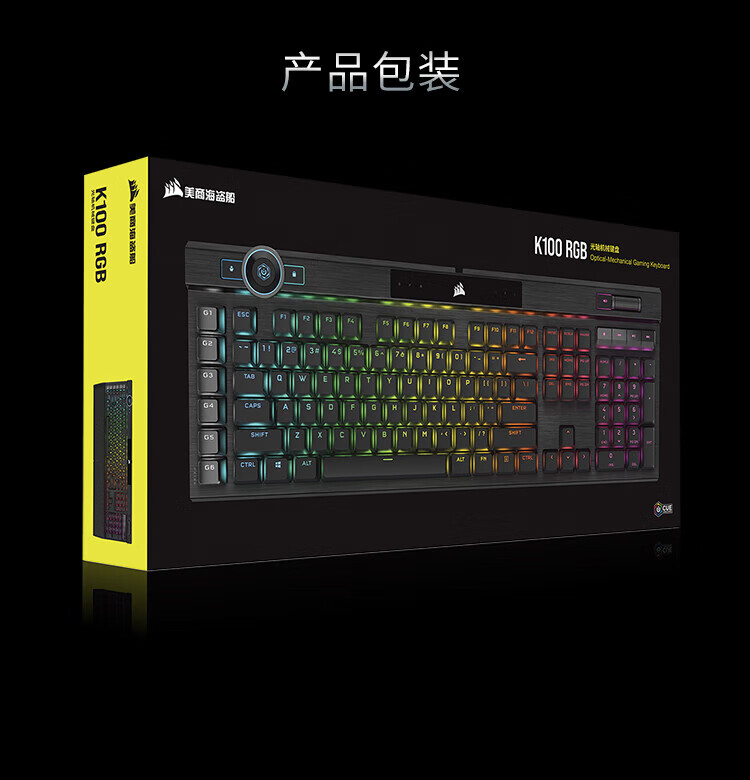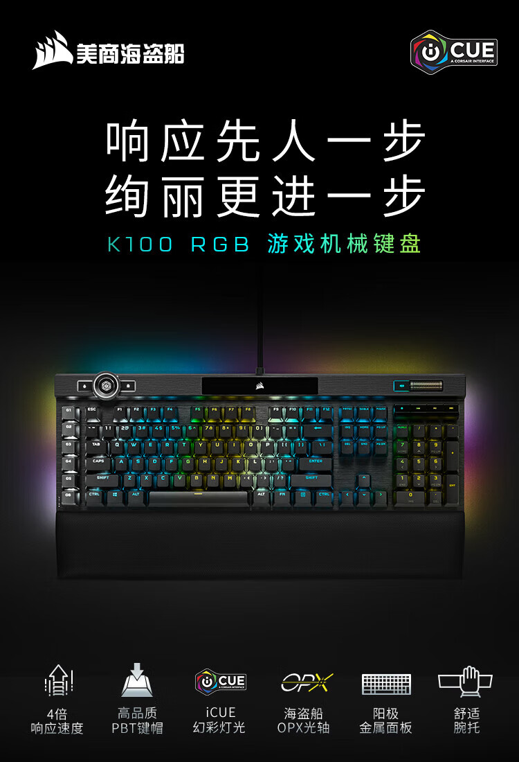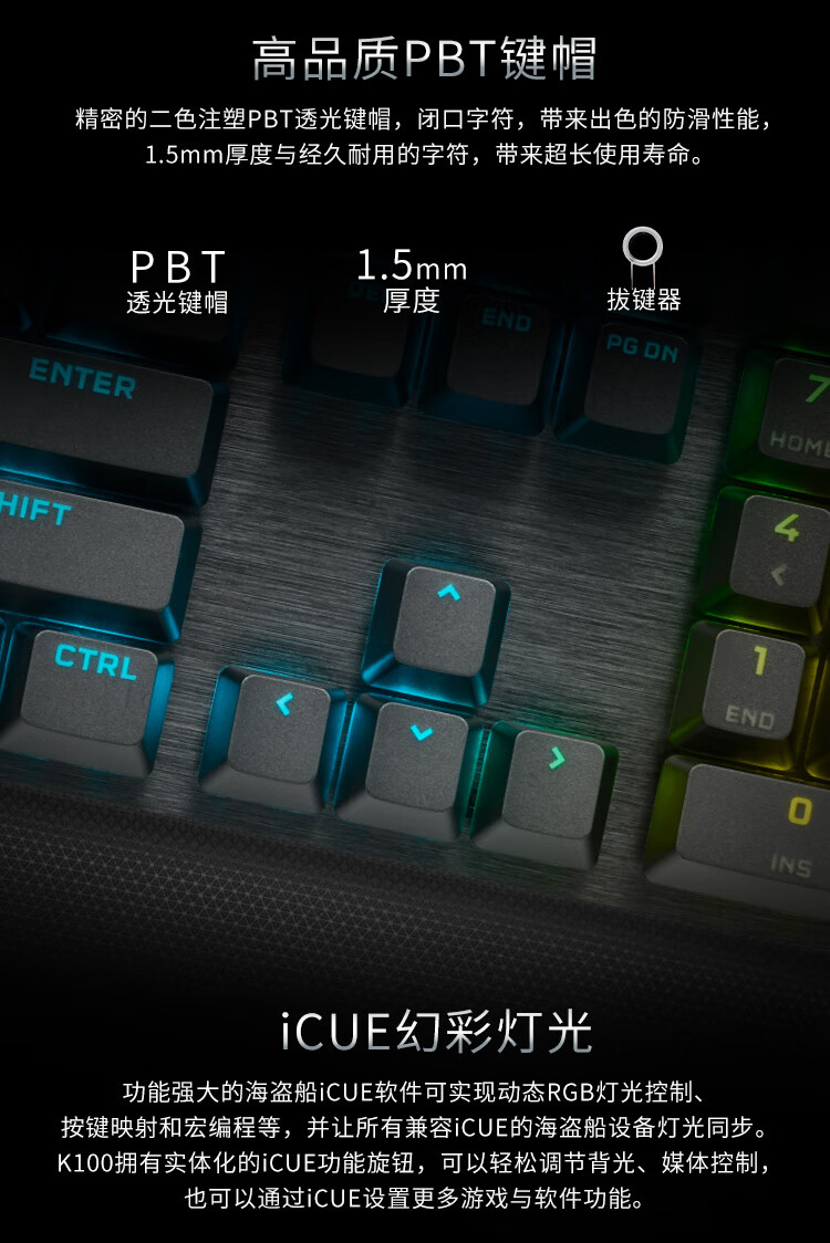 美商海盗船 (USCORSAIR) K100 RGB 光轴 机械键盘 游戏键盘 有线连接 全尺寸 黑色 OPX光轴