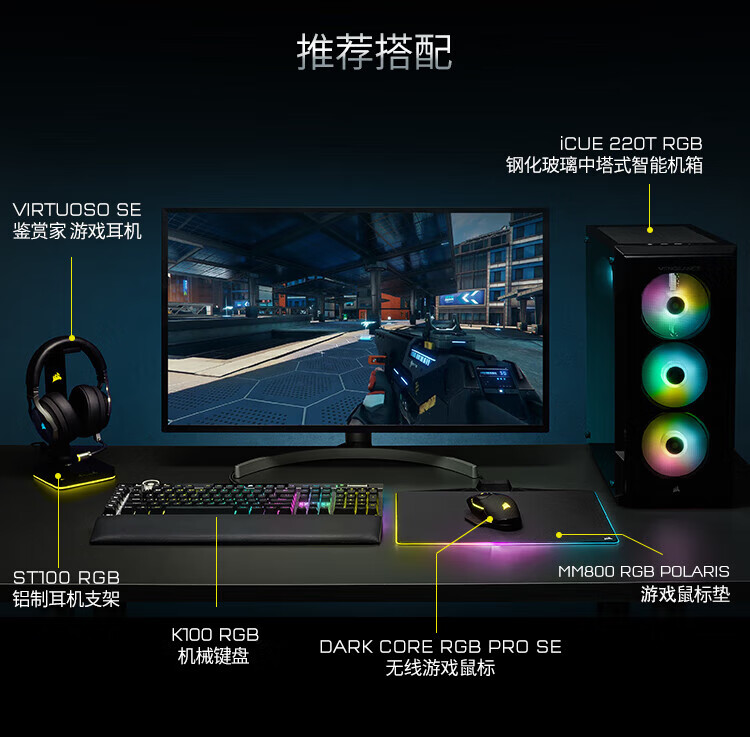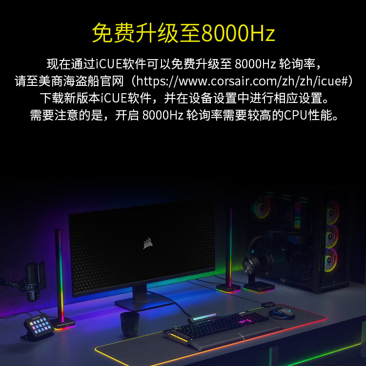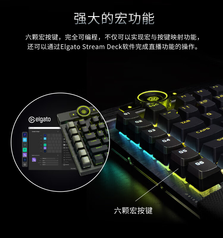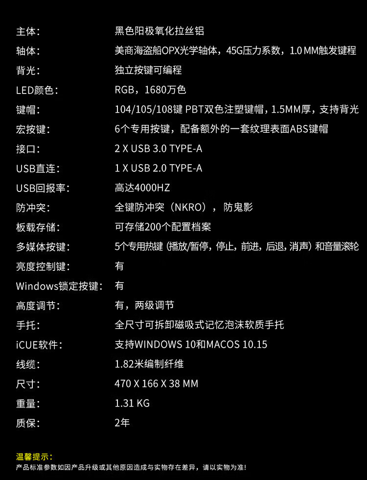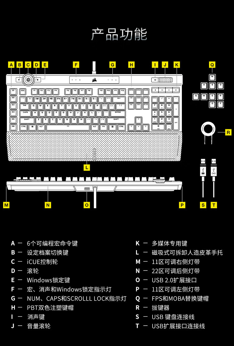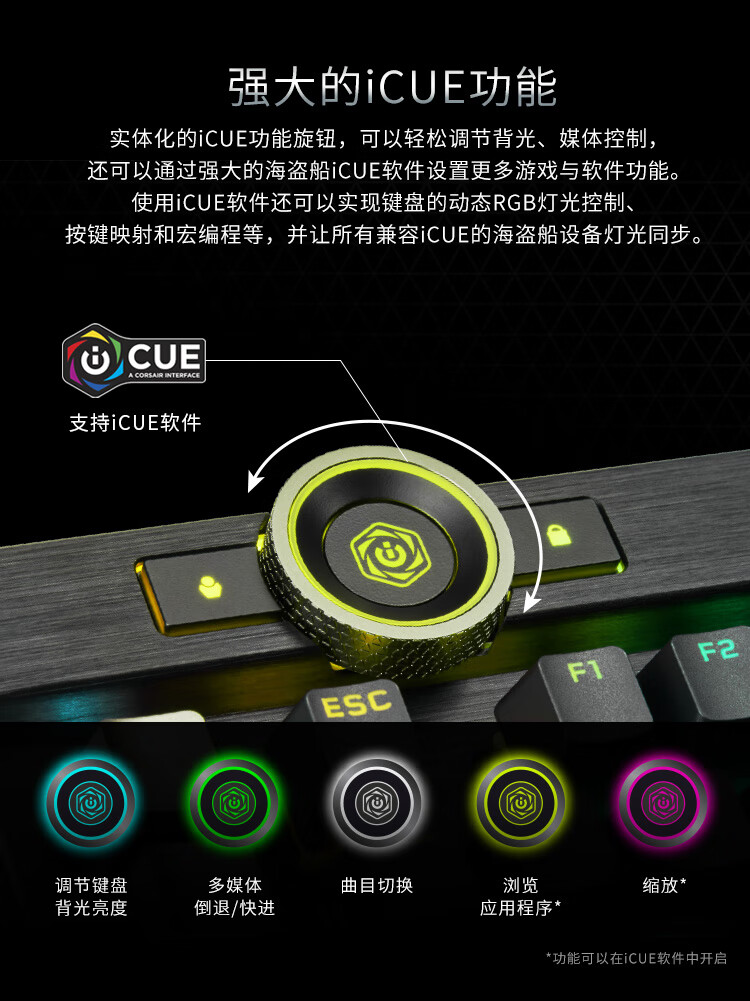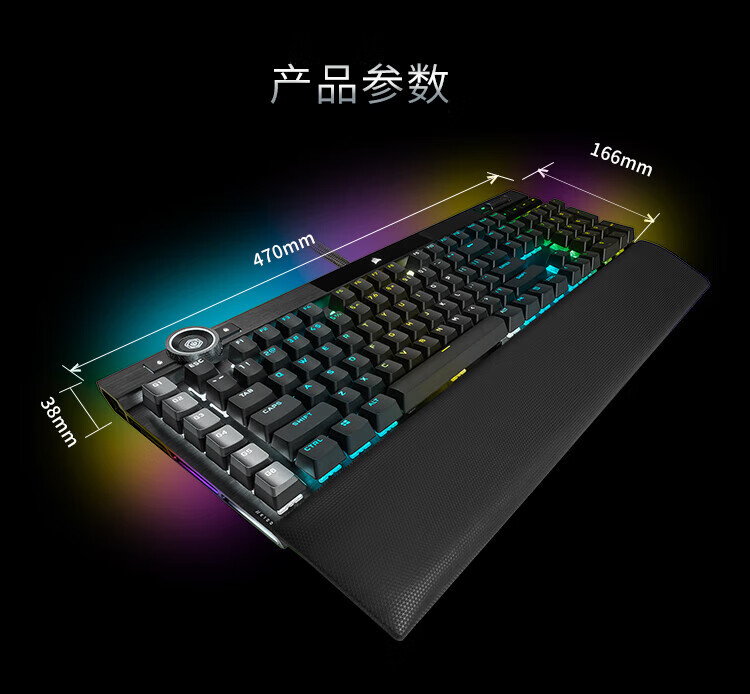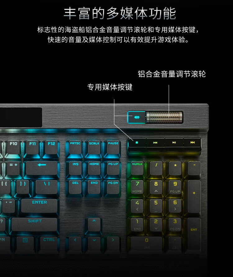 美商海盗船 (USCORSAIR) K100 RGB 光轴 机械键盘 游戏键盘 有线连接 全尺寸 黑色 OPX光轴