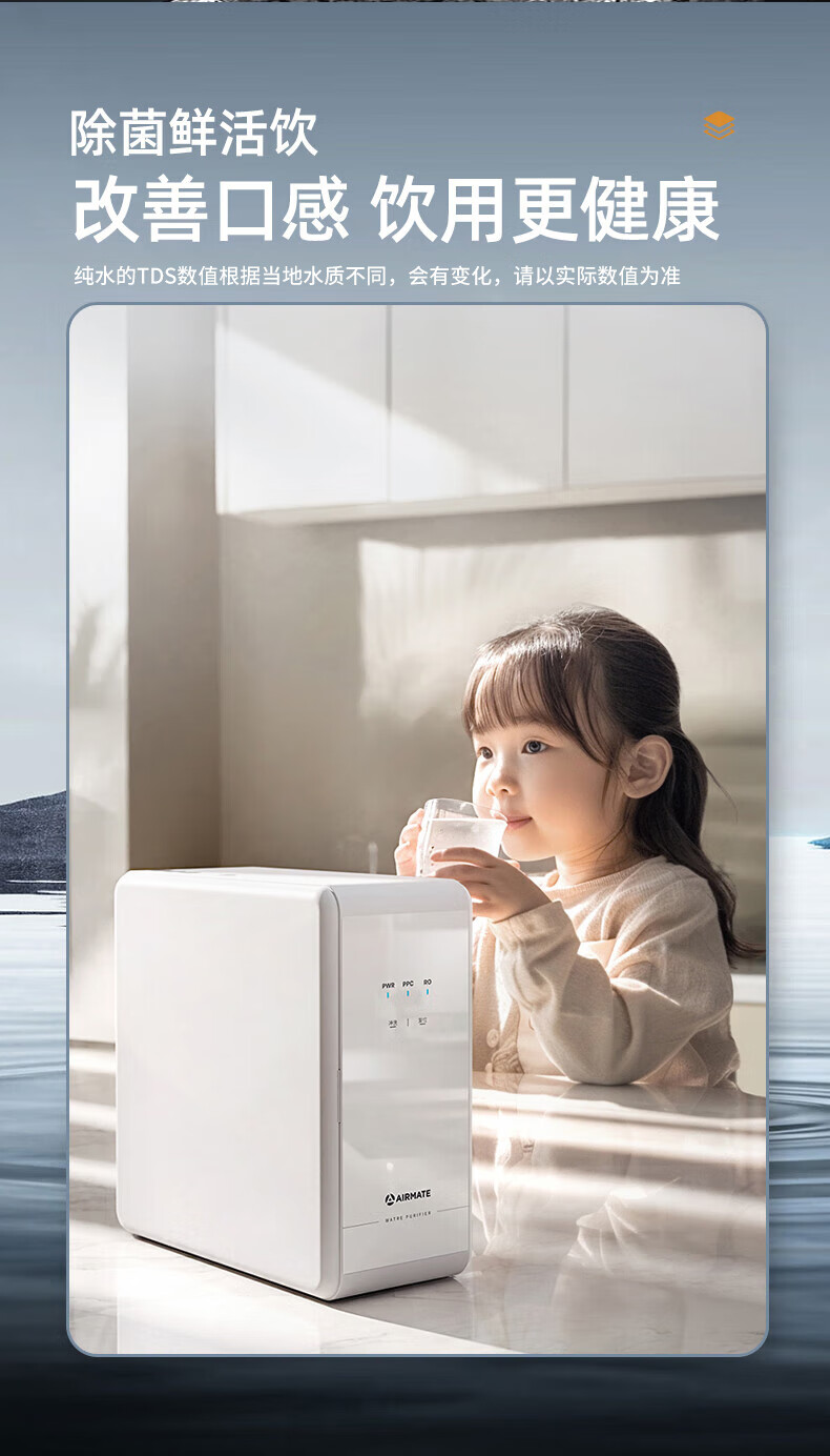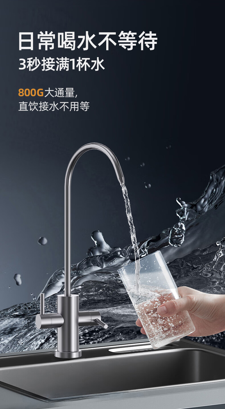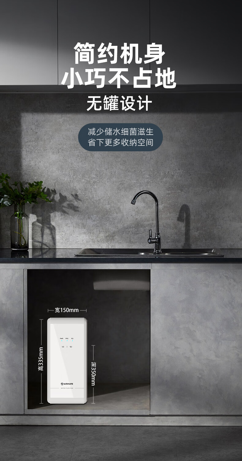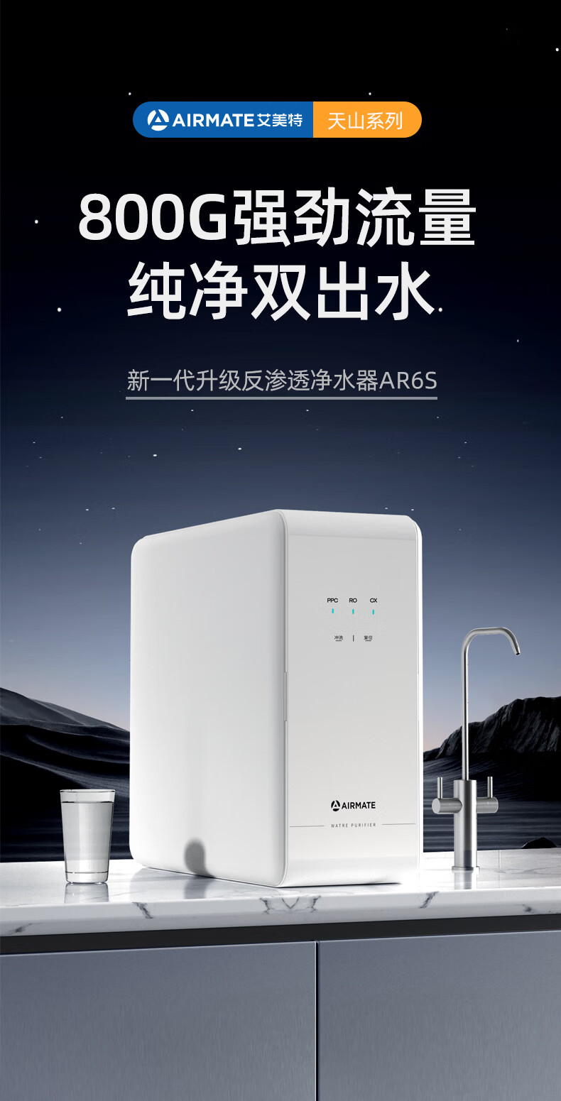 艾美特(AIRMATE)净水器家用净水机800GRO反渗透厨下式净水器直饮水过滤器净饮机 双出水 低噪省水AR6S