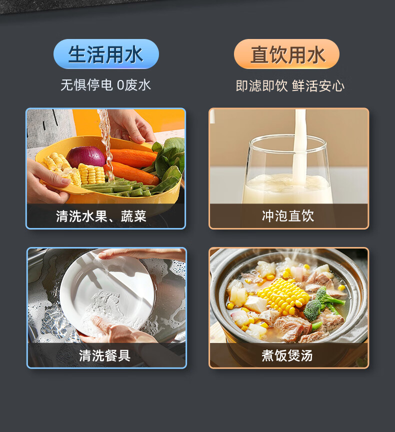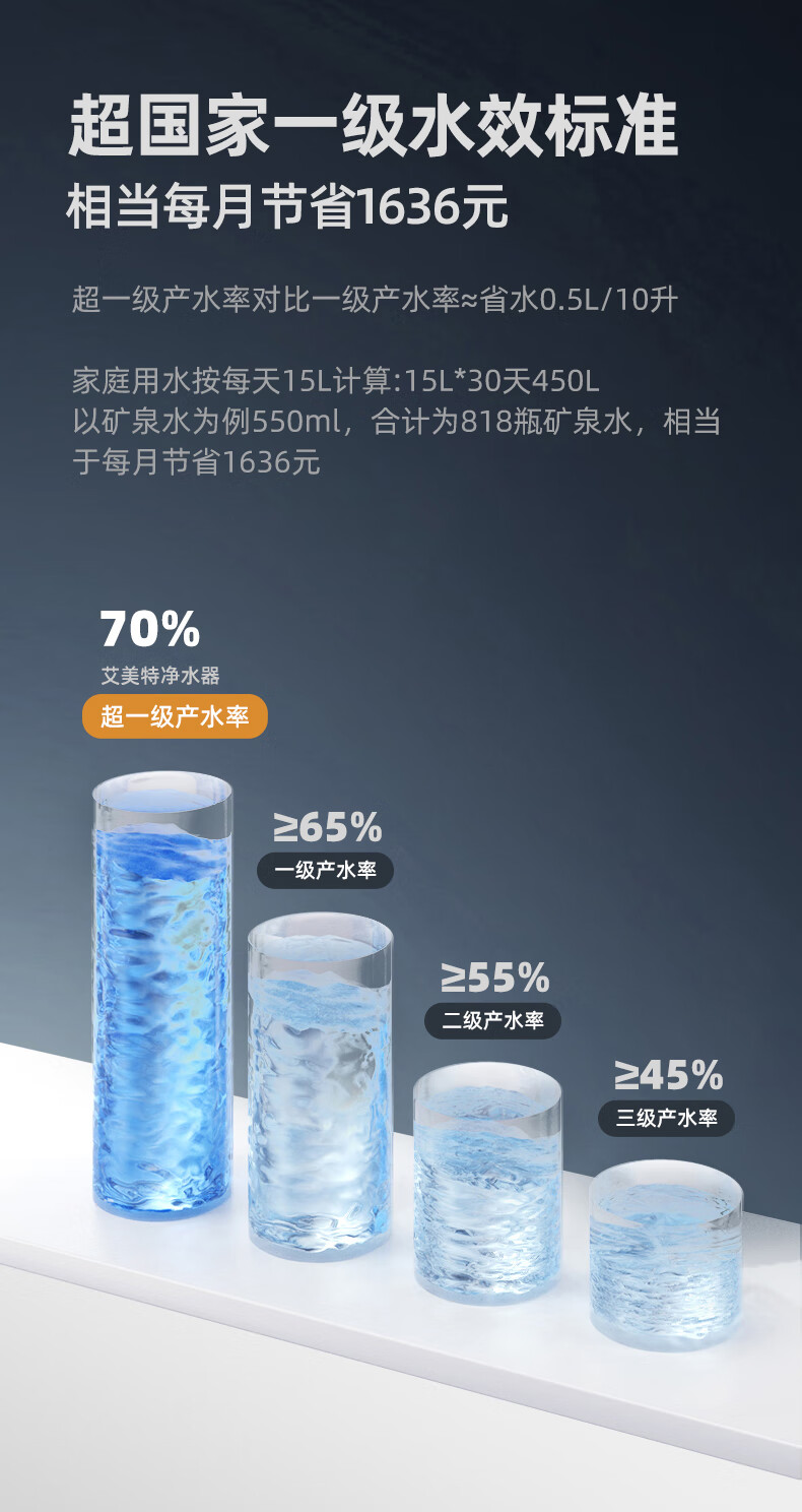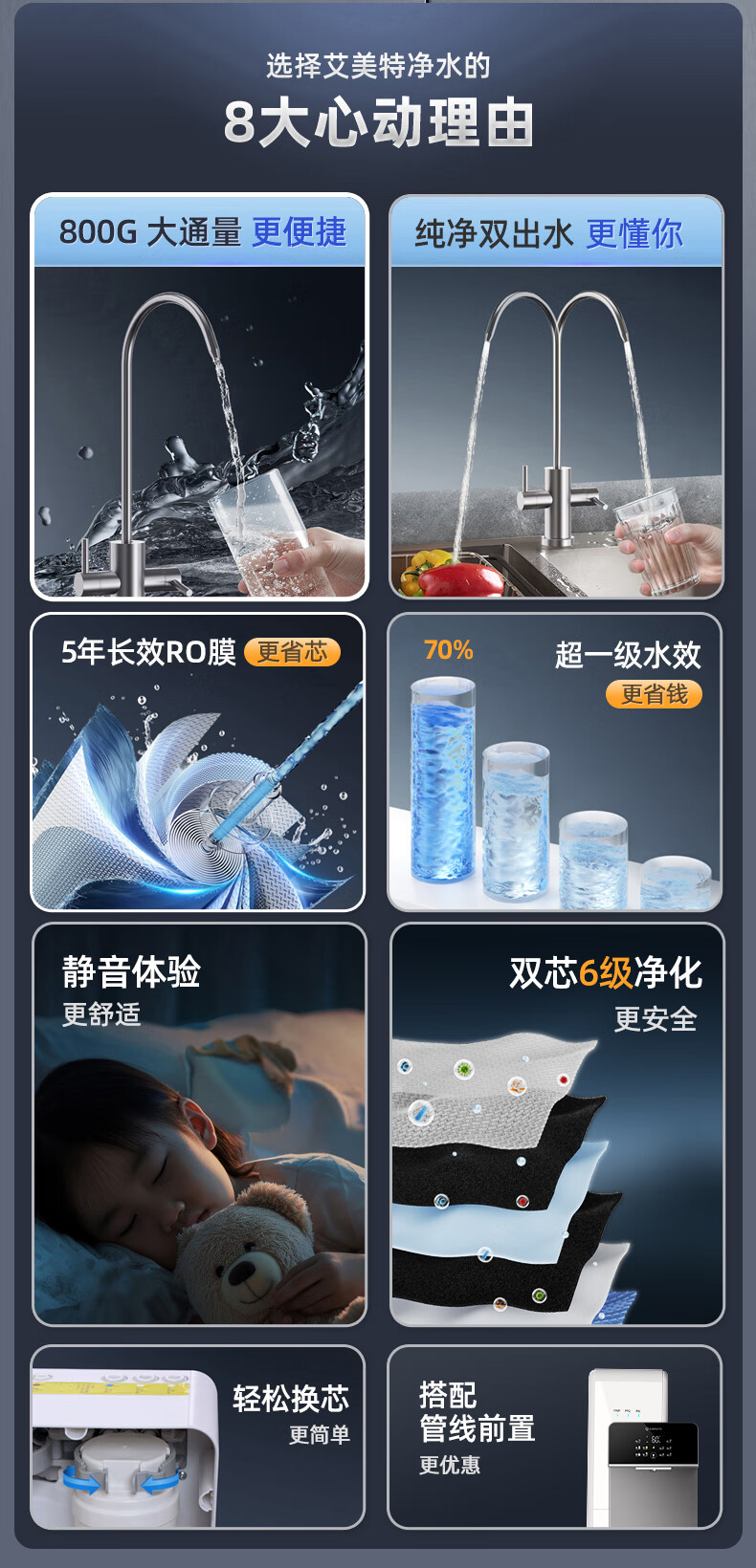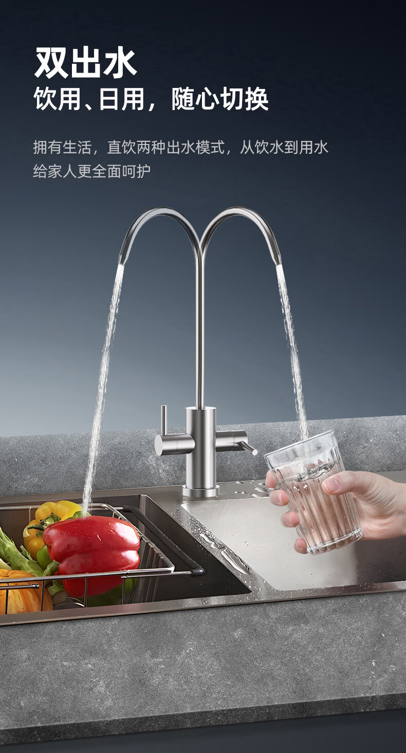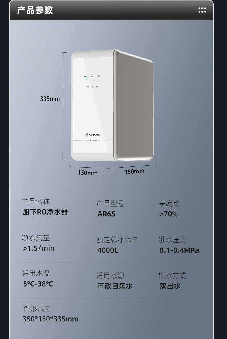艾美特(AIRMATE)净水器家用净水机800GRO反渗透厨下式净水器直饮水过滤器净饮机 双出水 低噪省水AR6S