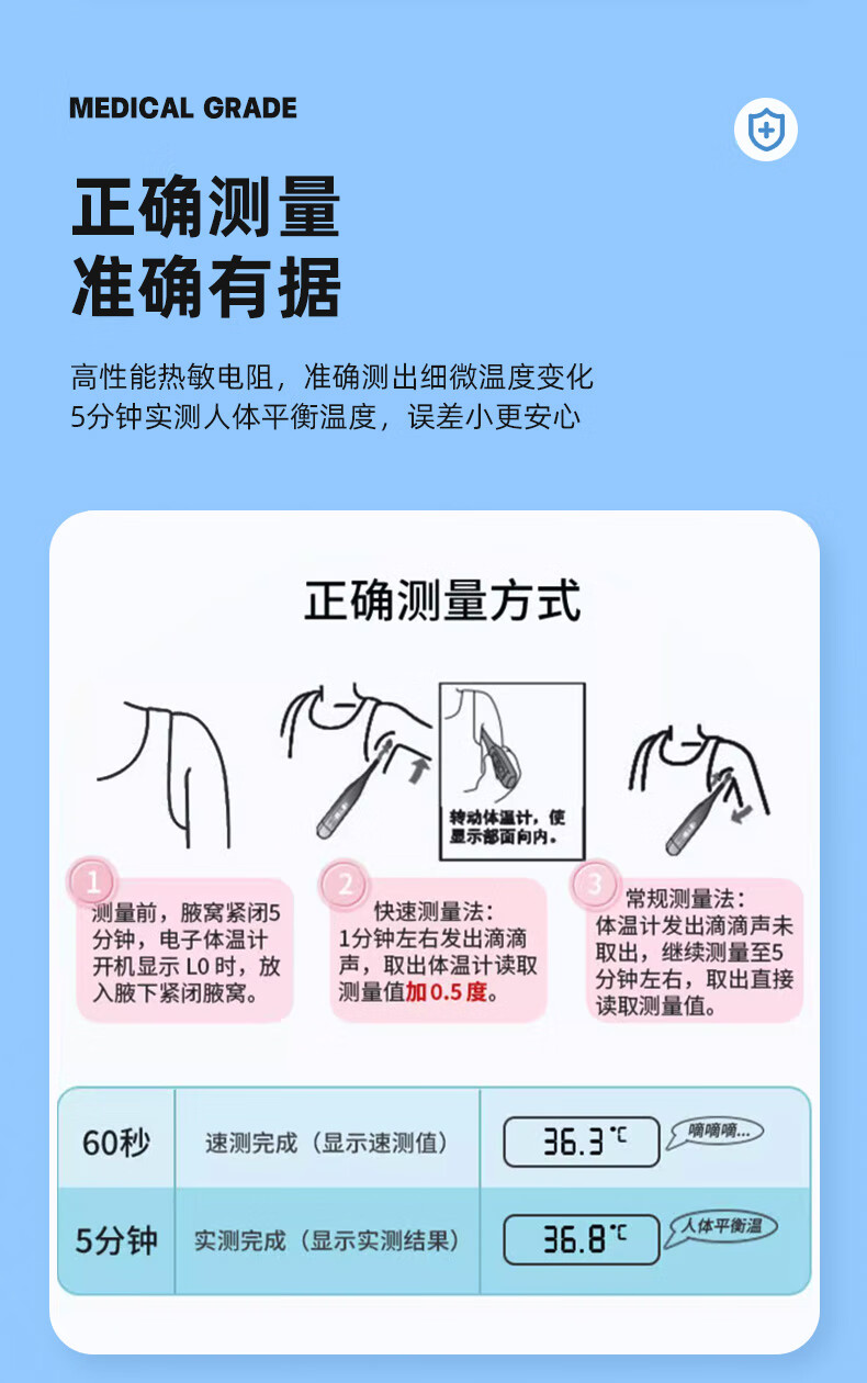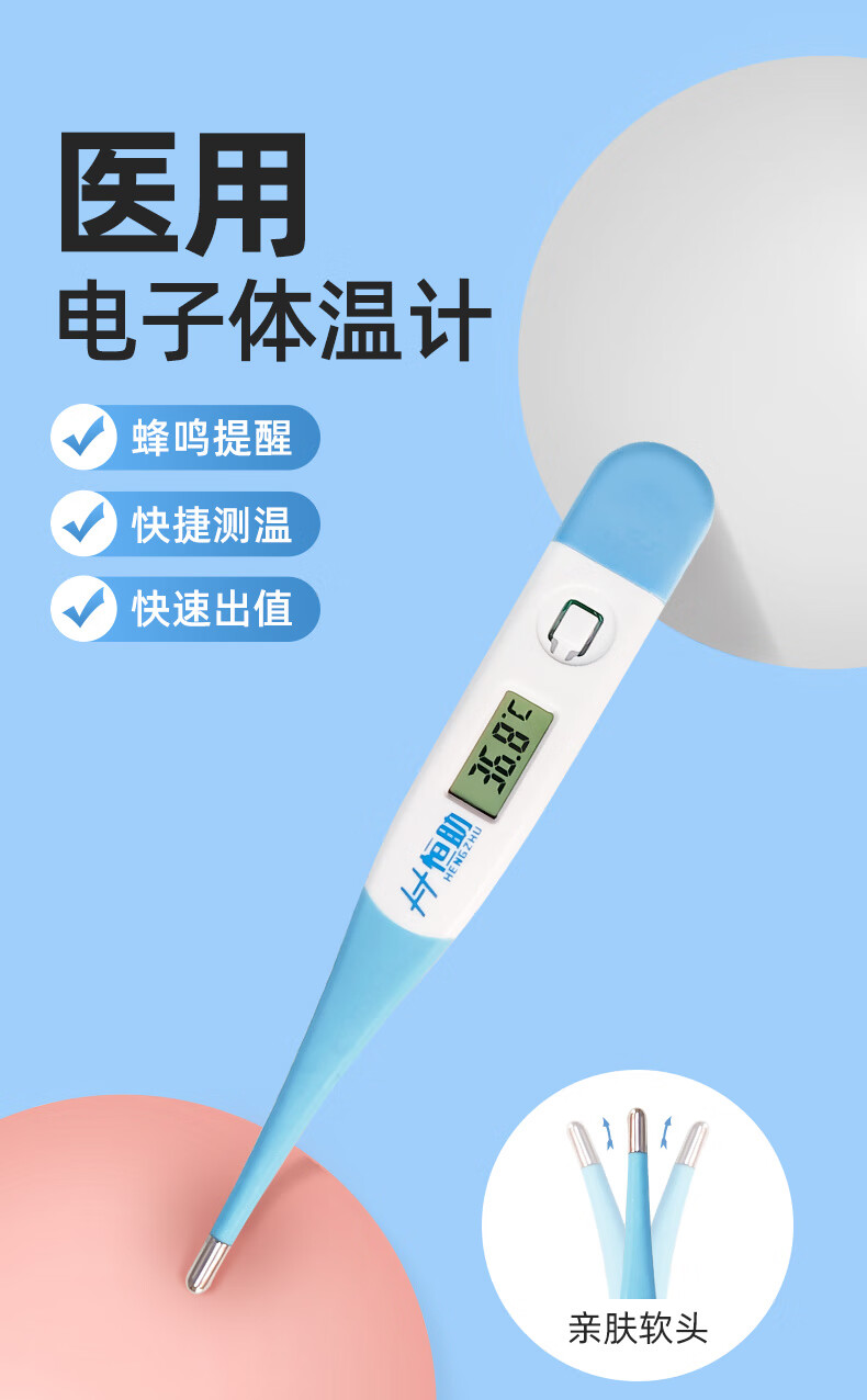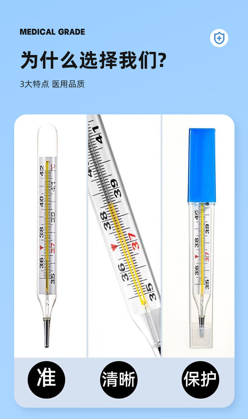 恒助电子体温计水银大刻度三山儿童成人家用电子温度计额温枪婴儿精准 【水银】1支体温计(内附收纳盒)