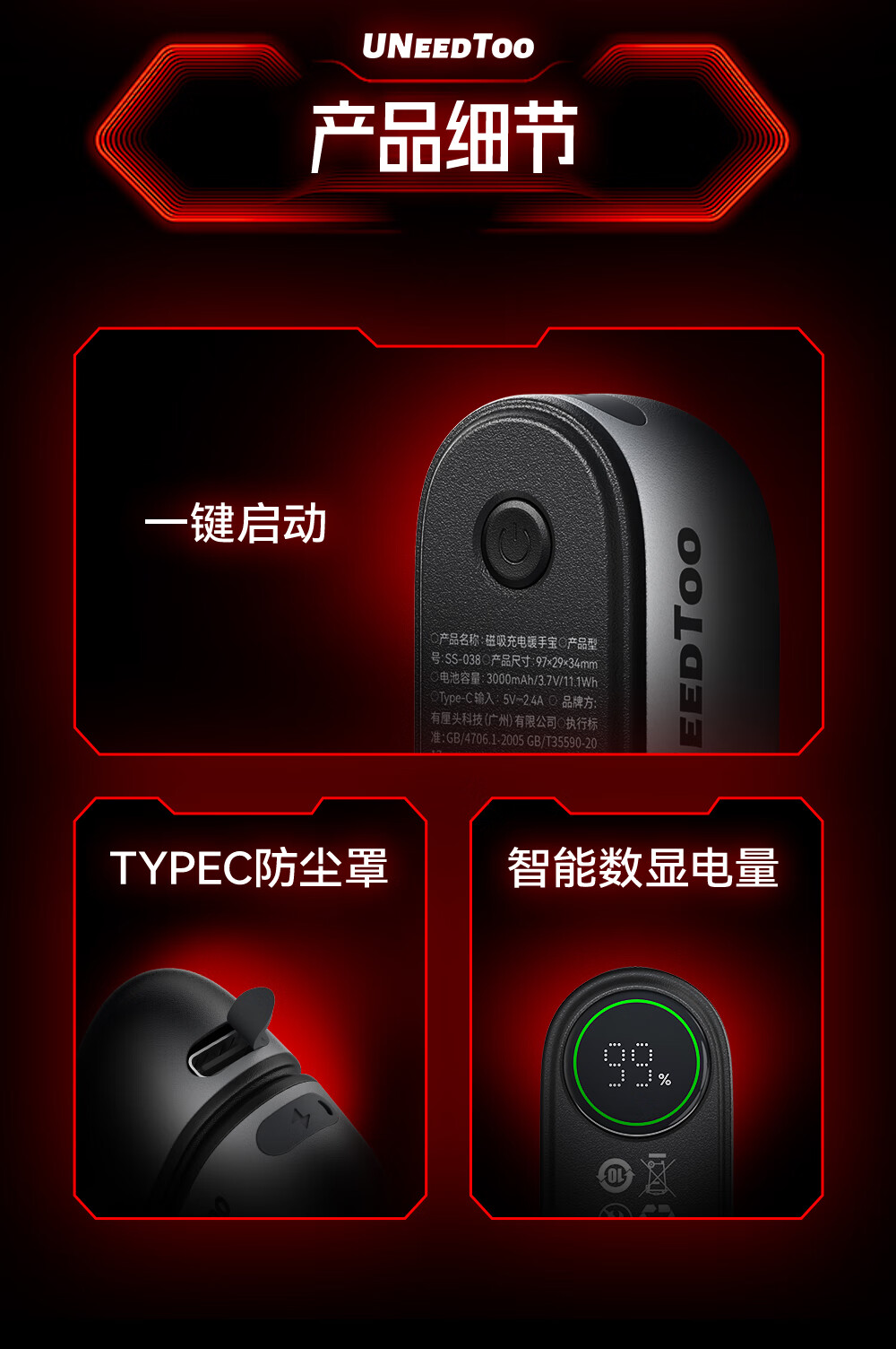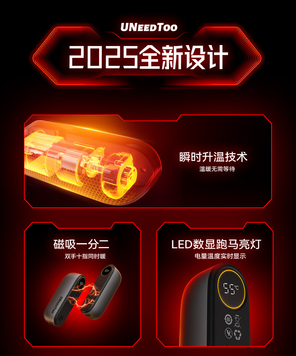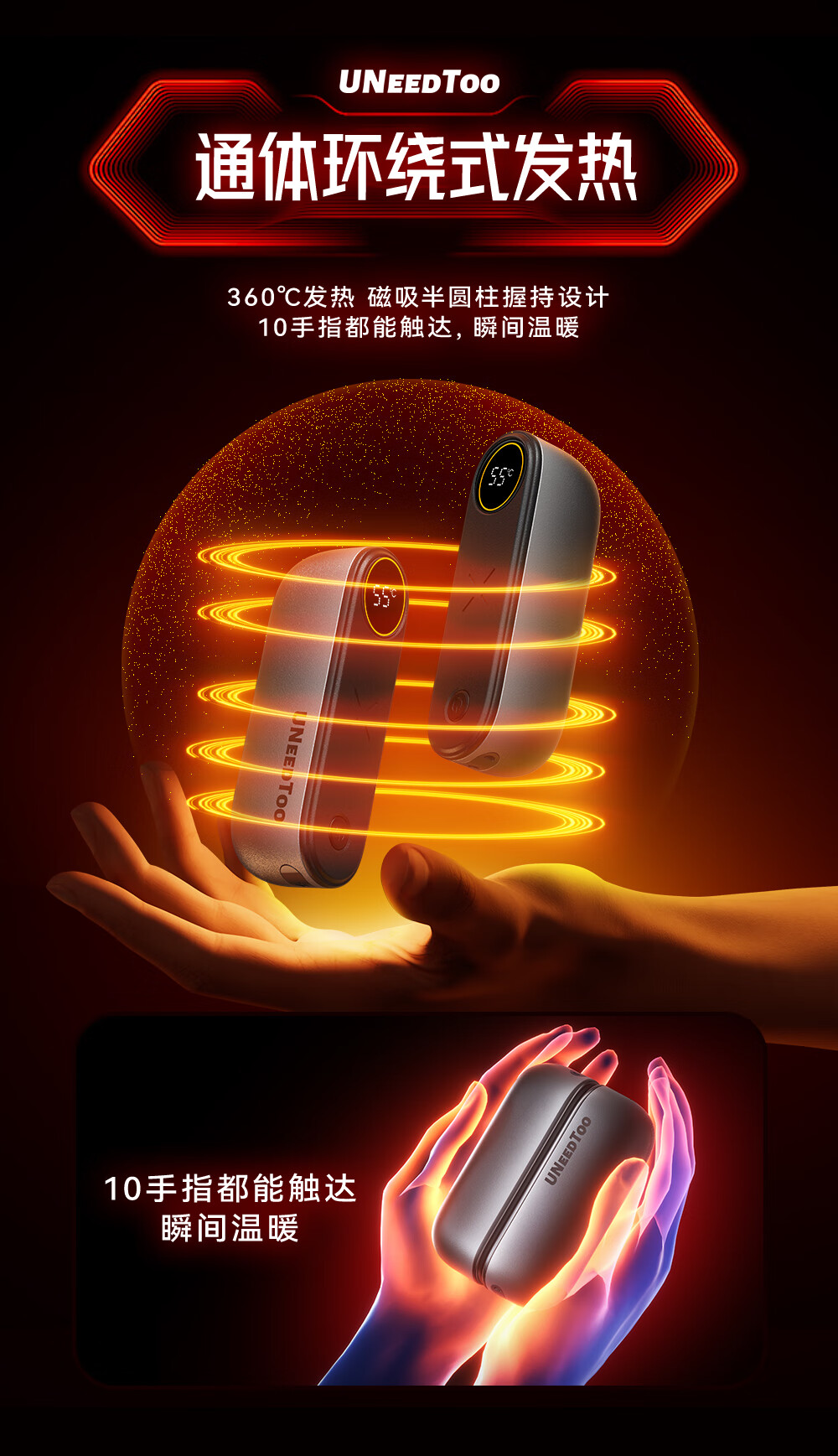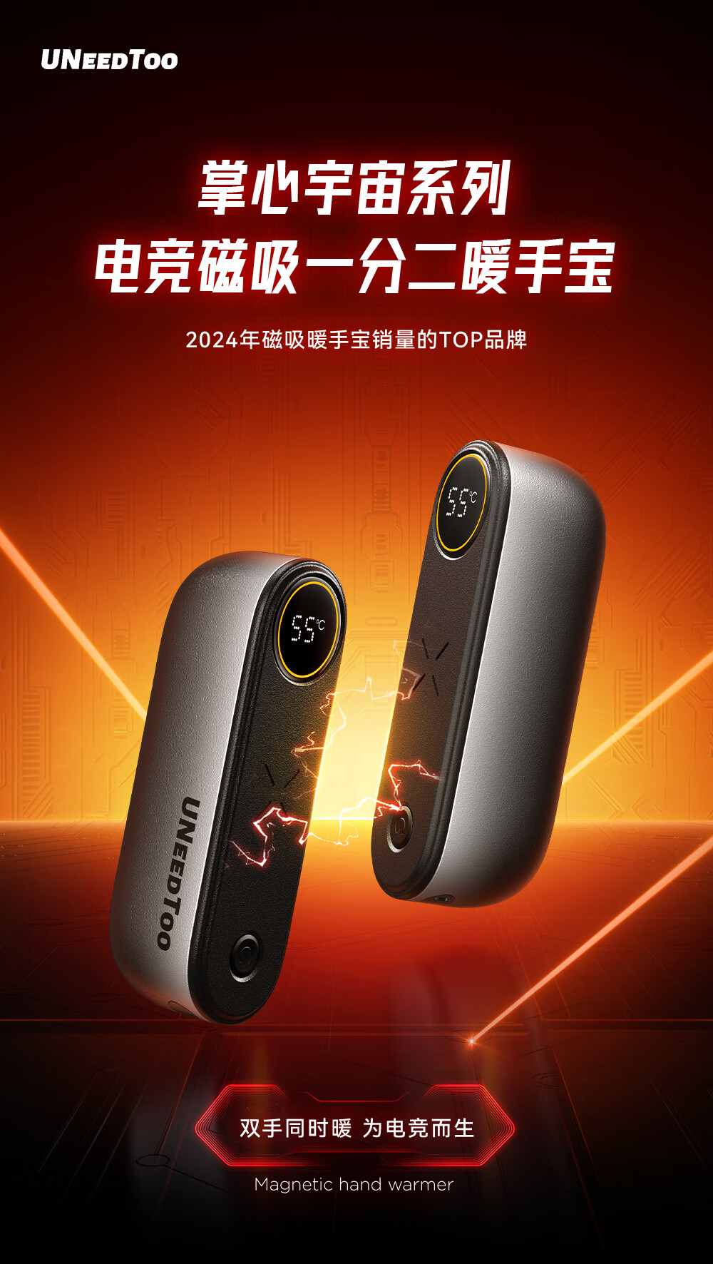 有厘头【职业哥同款】2025电竞磁吸暖手宝二合一双手同时暖手分离式充电暖手宝可上飞机高铁送礼男生礼物 【月岩银黑】智能数显+NTC温控+强续航+三档控温