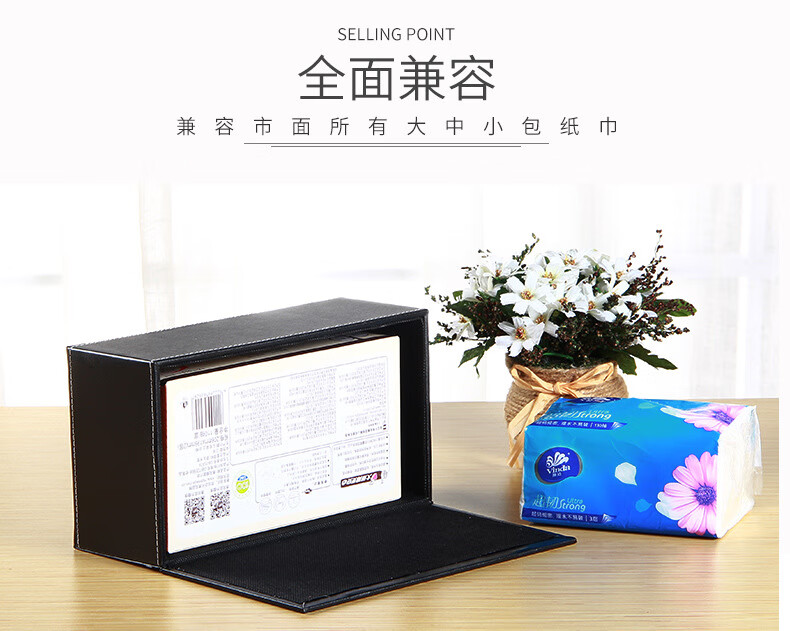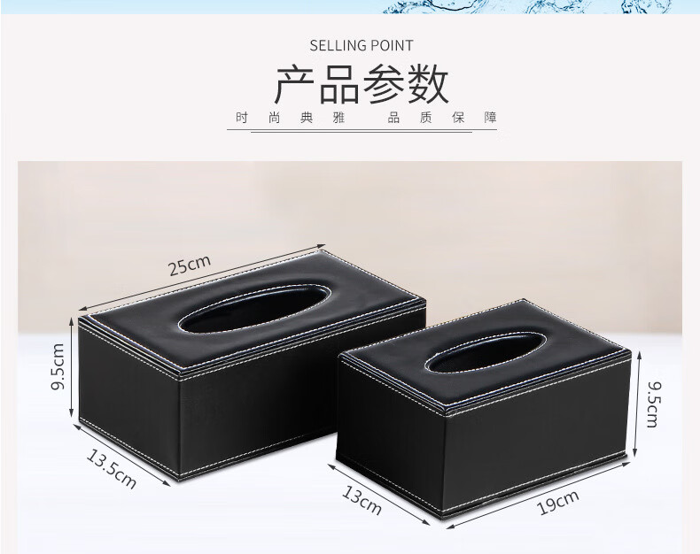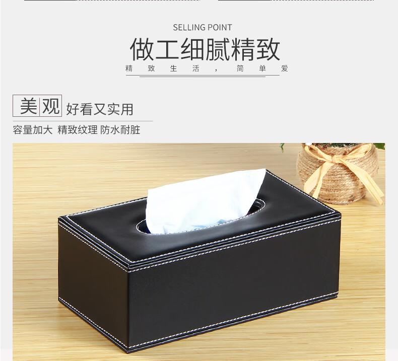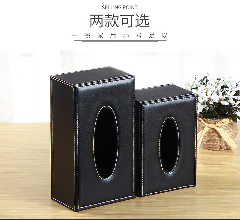 【现货现发】皮革纸巾盒客厅家用抽纸盒欧式创意PU餐巾纸盒车用 黒平纹大号(1个装) 25*13.5*9.5cm