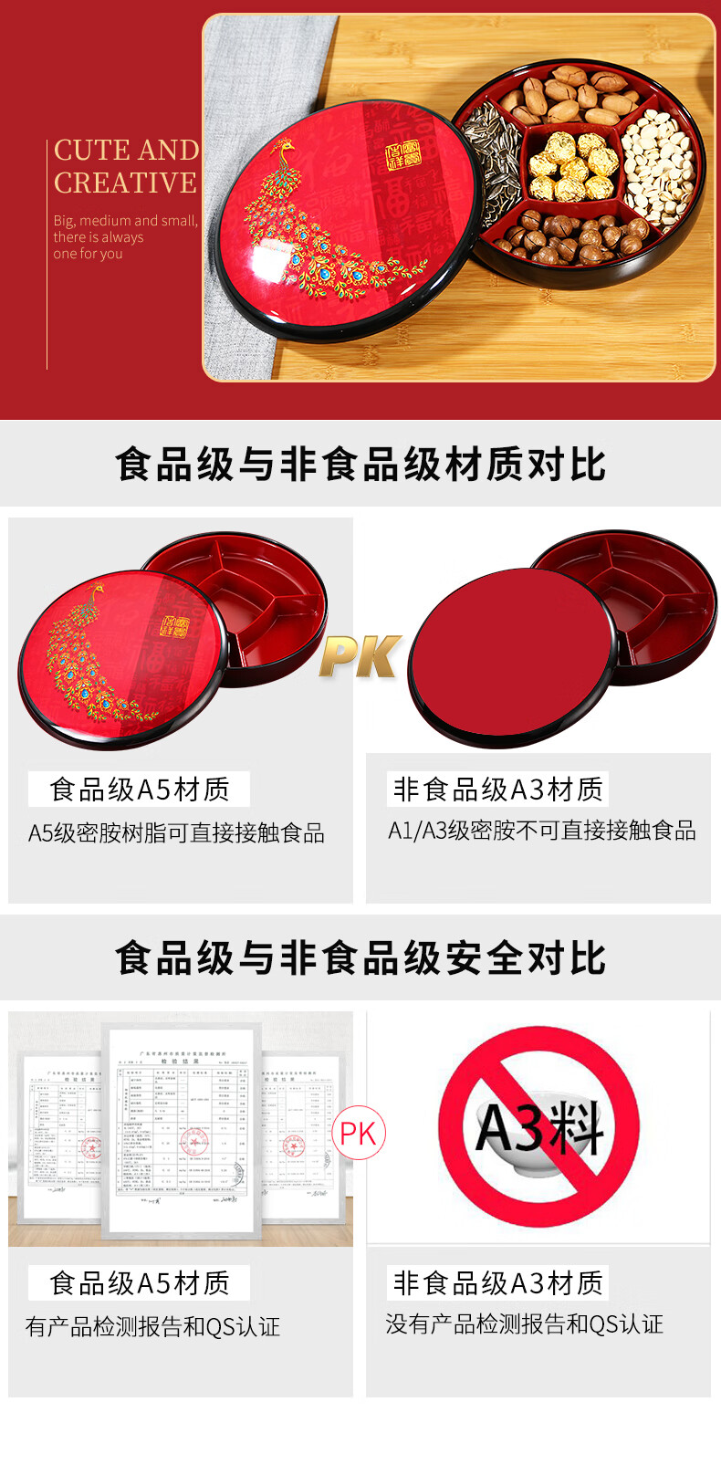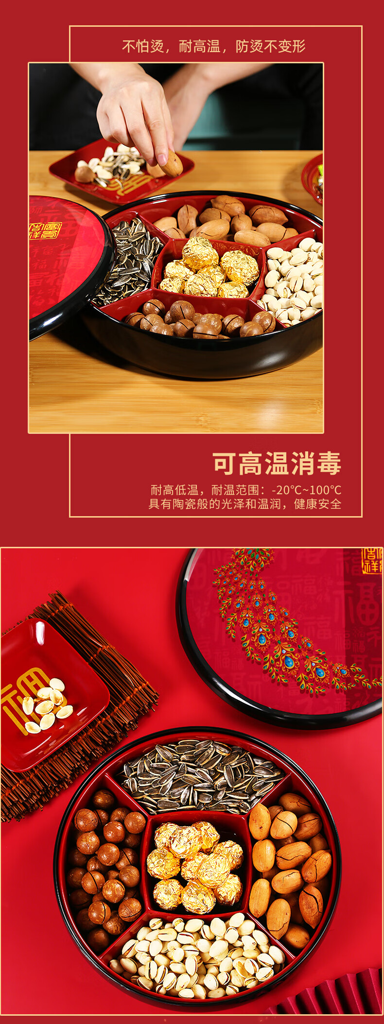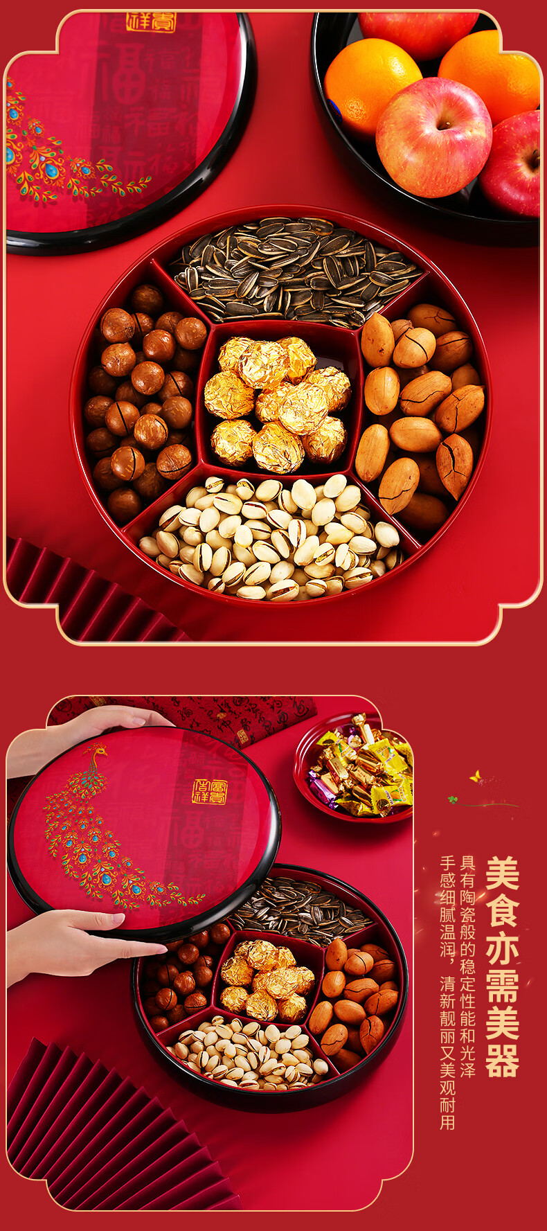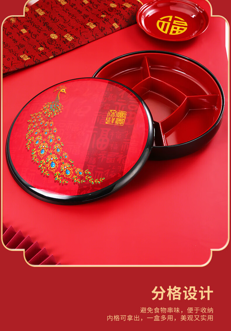 五和(WUHE)孔雀新年干果盒家用客厅茶几乔迁糖果盒坚果零食收纳盒结婚果盘 富贵吉祥-孔雀果盒 1层