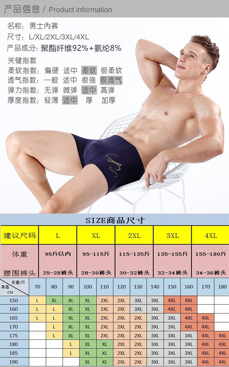 【】男士内裤亲肤本命年内裤有弹性内裤平角青年【已验货】 【 好男人】 4条 4XL 150-170斤