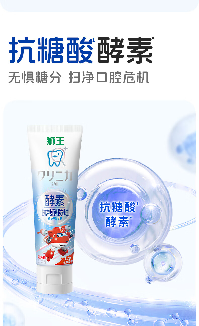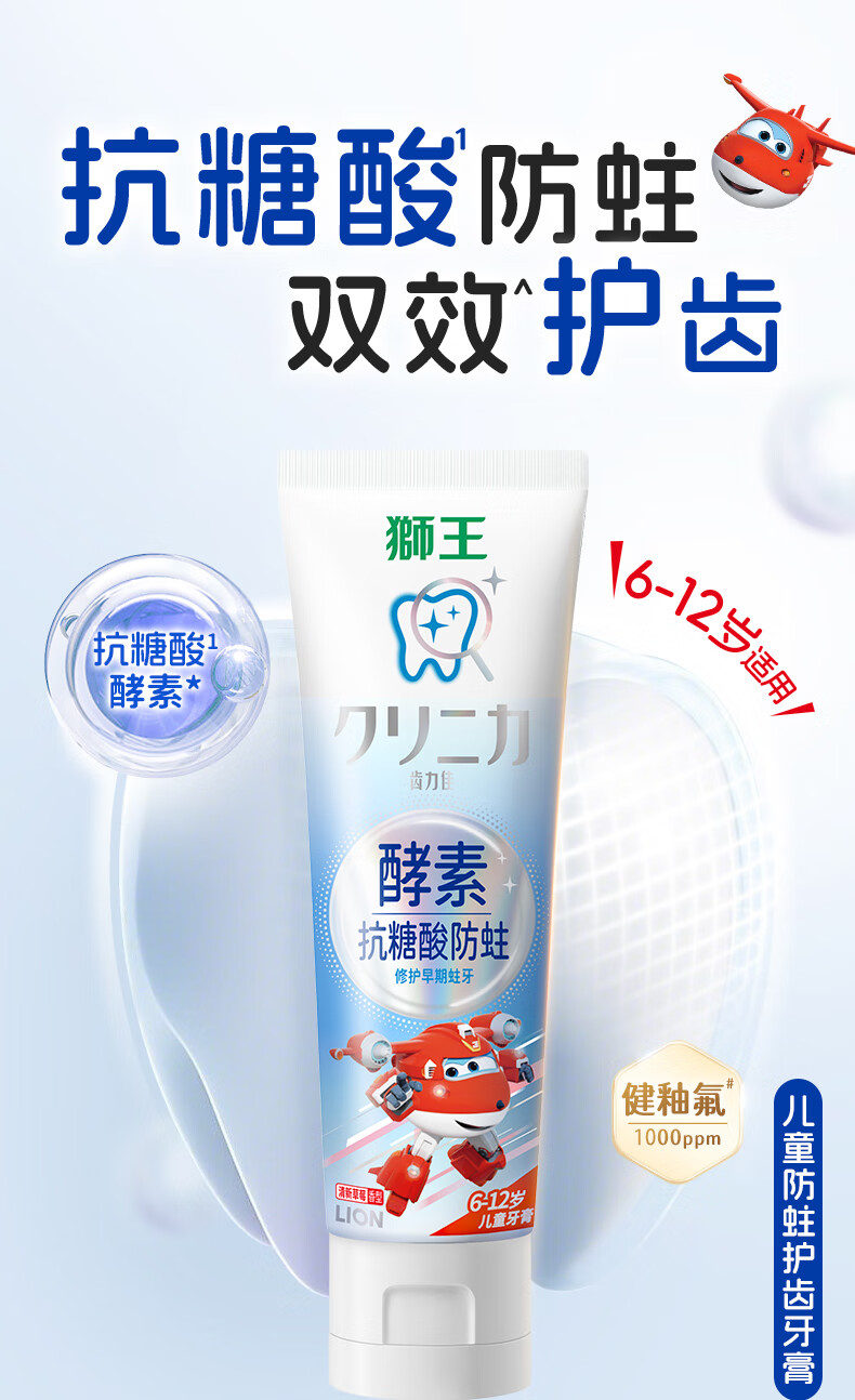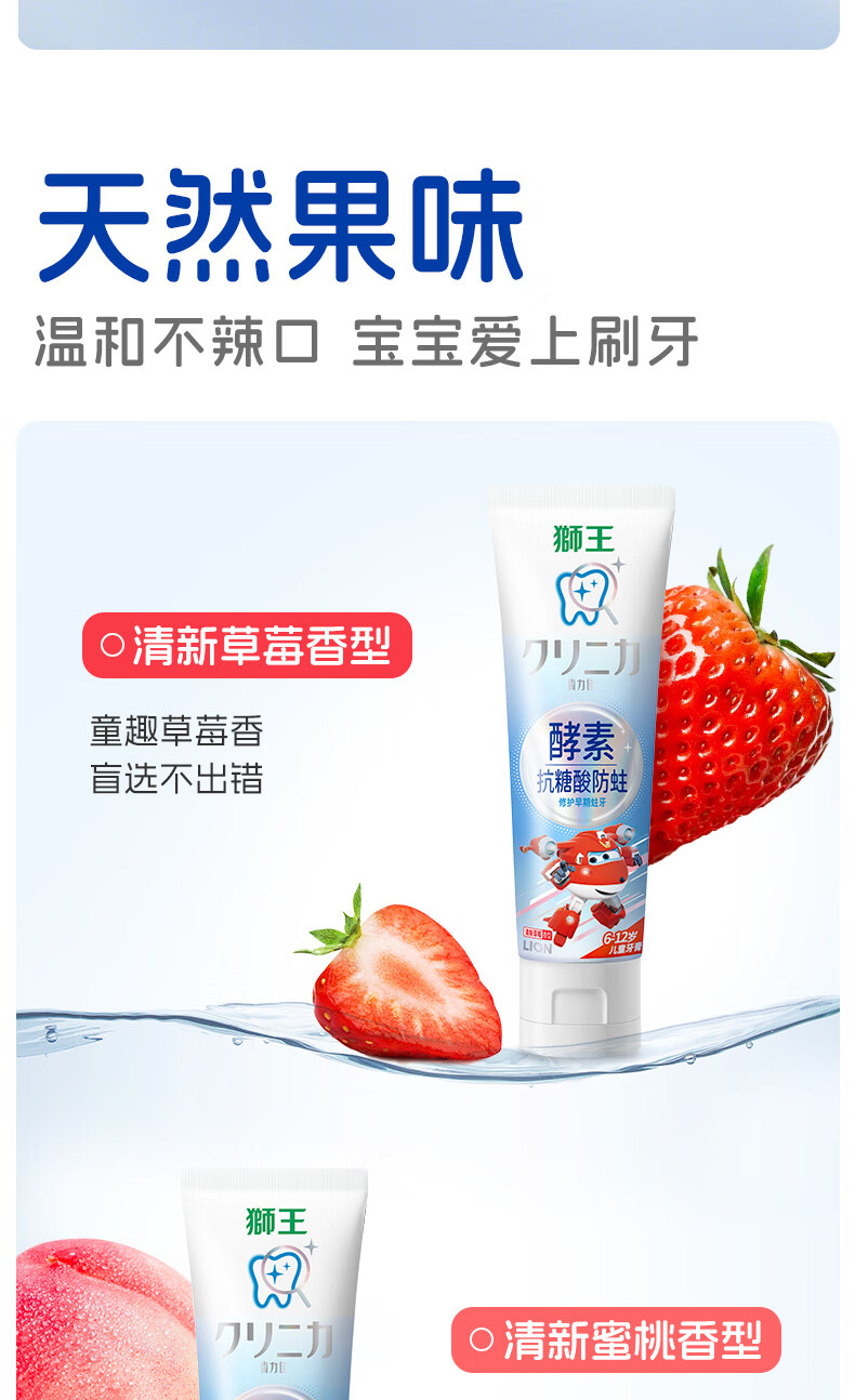 狮王(Lion)齿力佳儿童酵素抗糖防酸蛀牙膏6-12岁草莓味60g