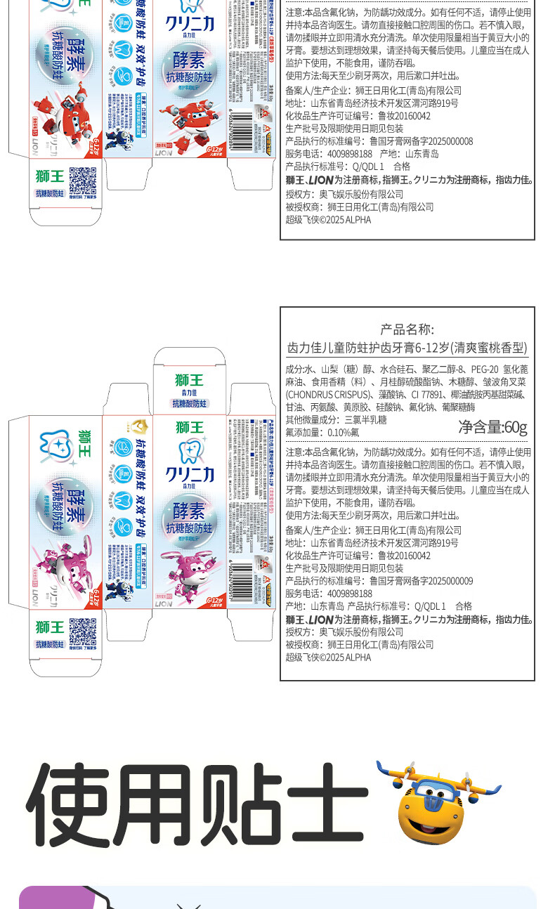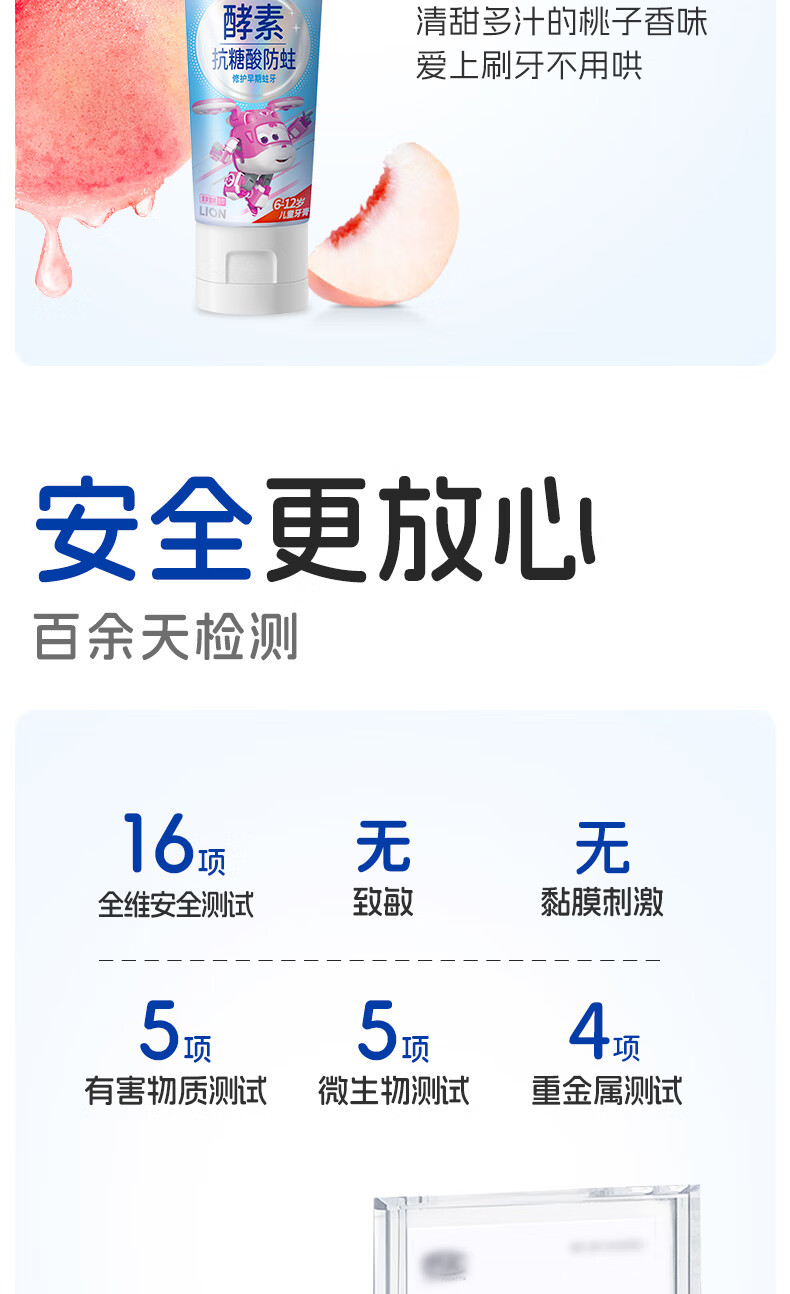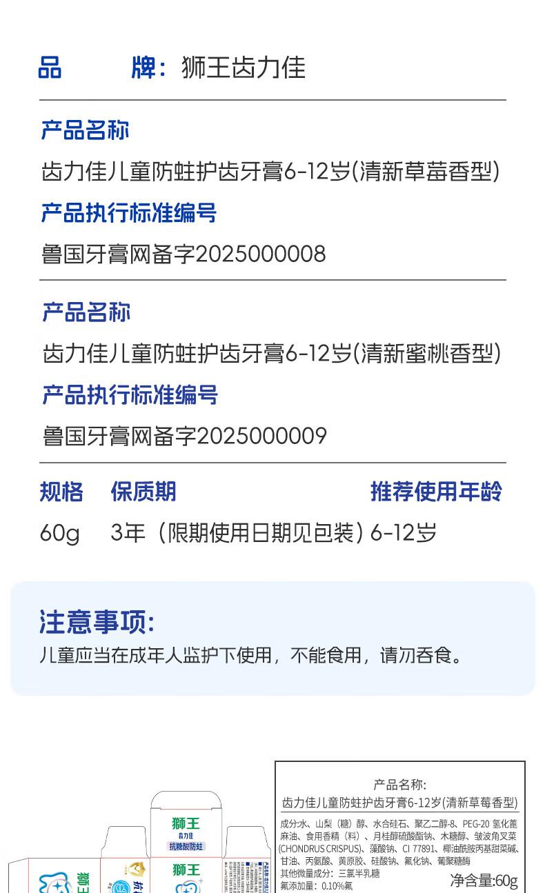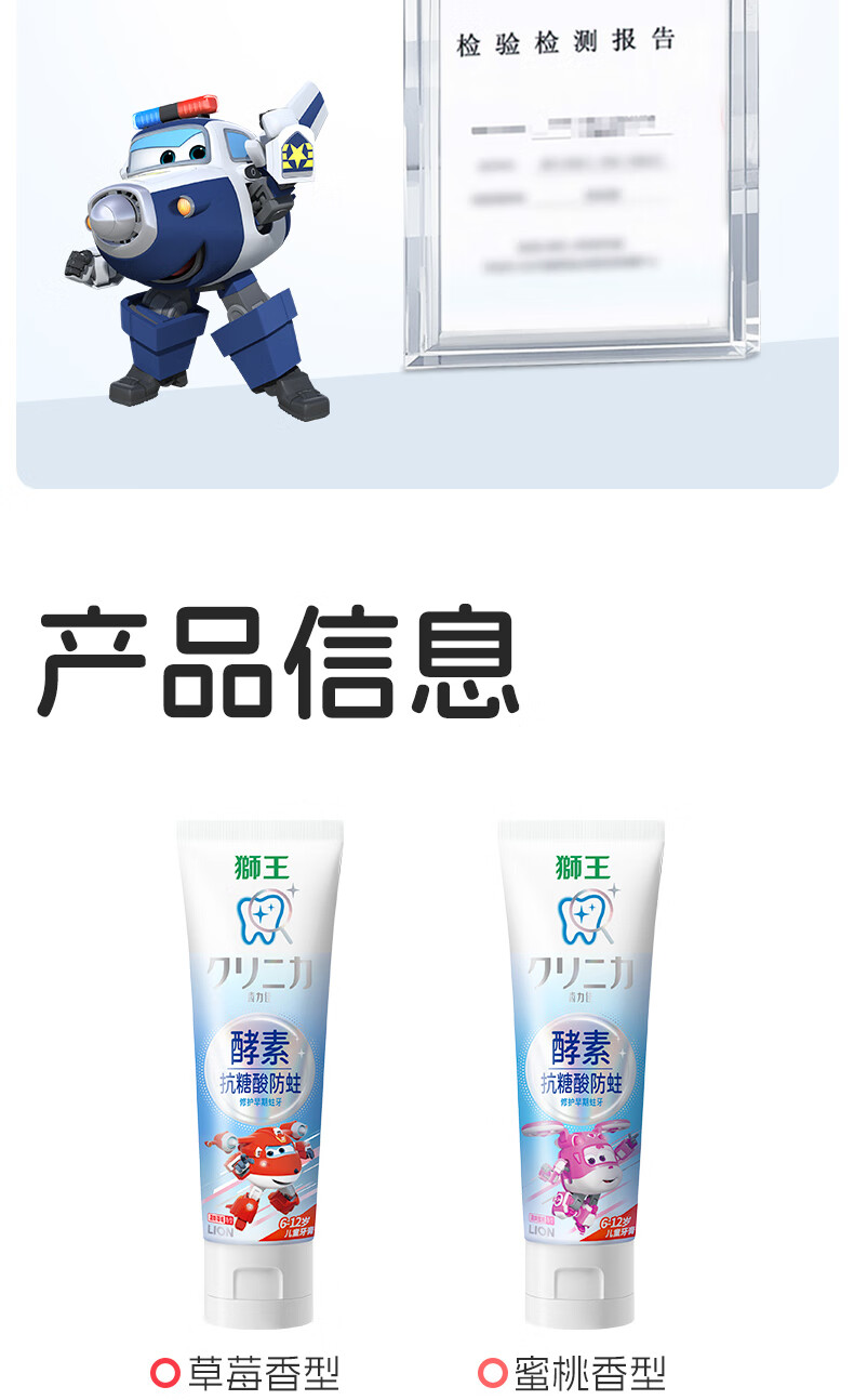 狮王(Lion)齿力佳儿童酵素抗糖防酸蛀牙膏6-12岁草莓味60g
