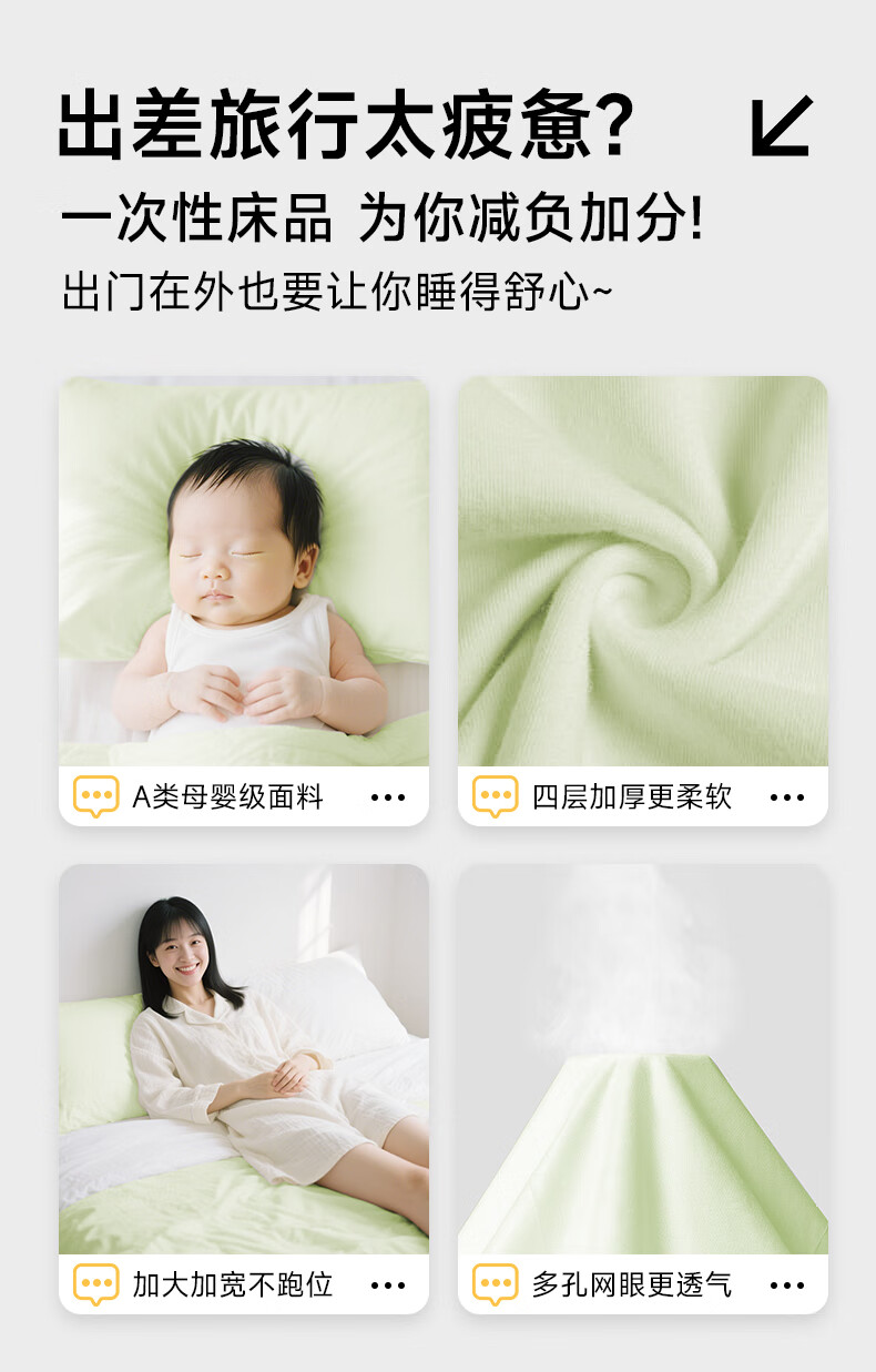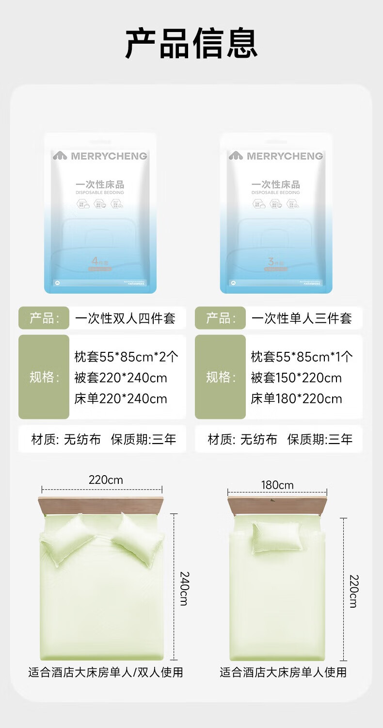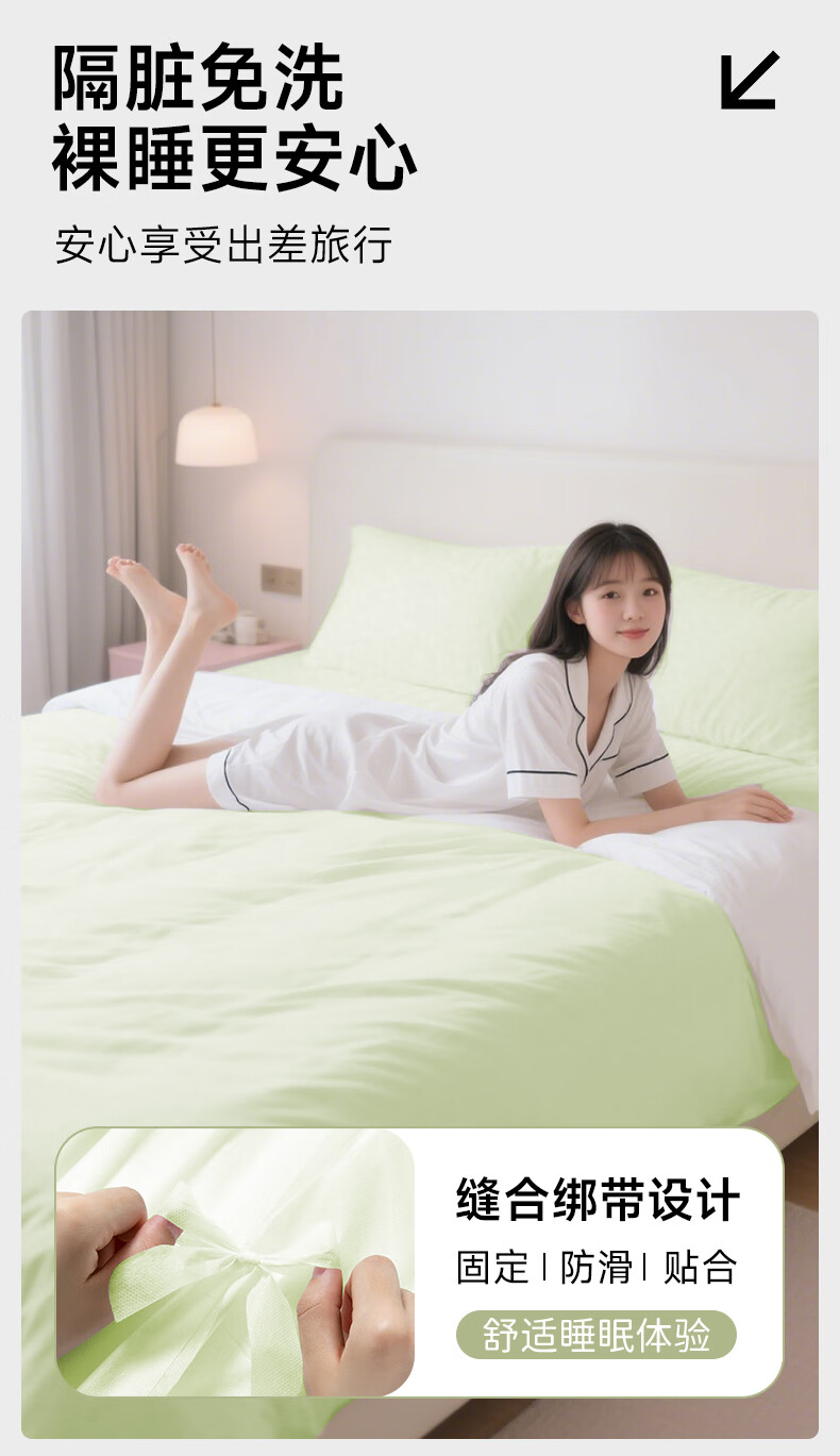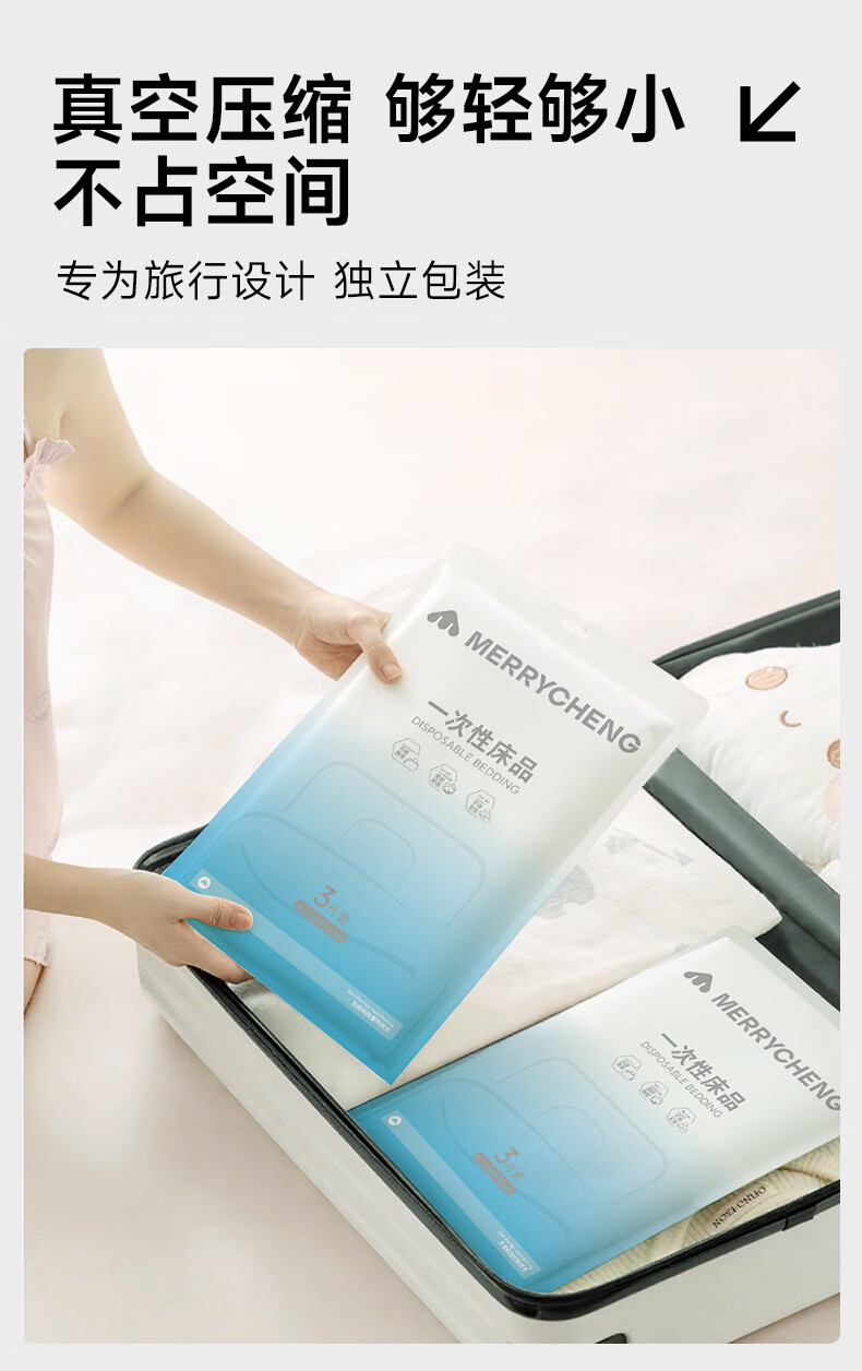 美力城一次性床单四件套被罩床枕套旅行床品旅行用品必备用品双人款