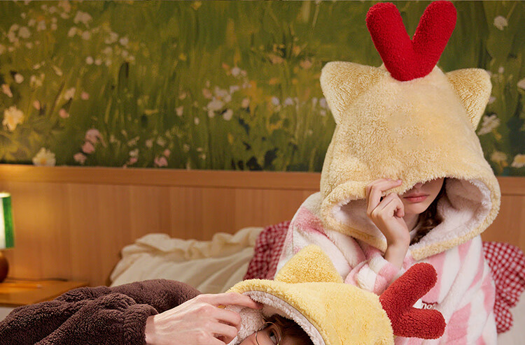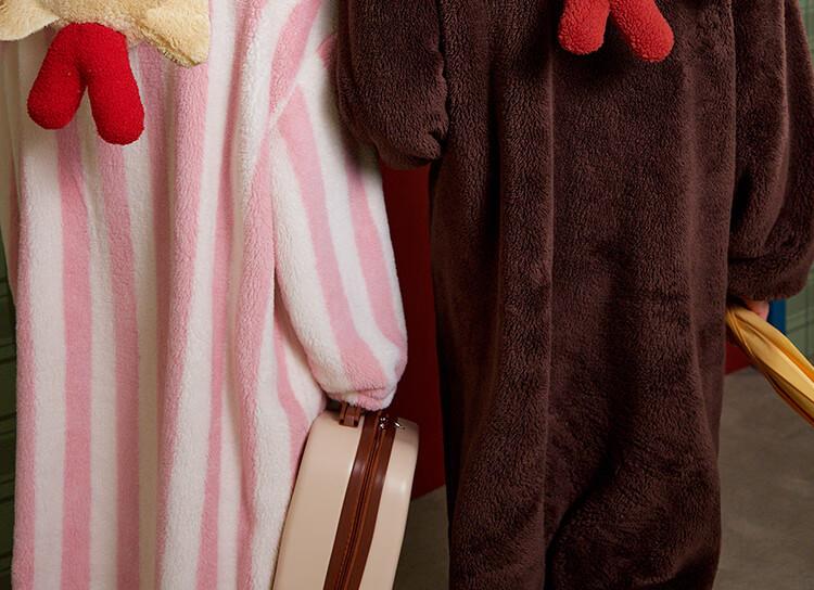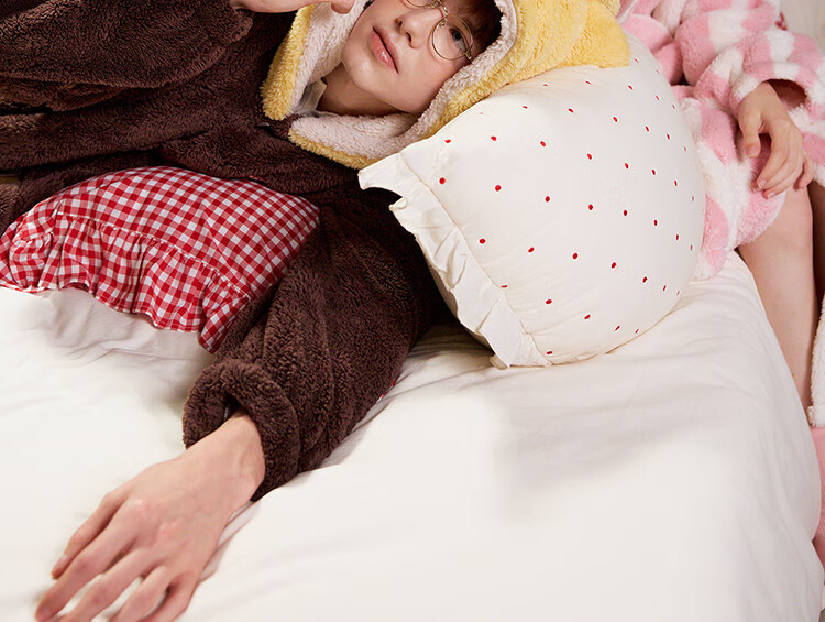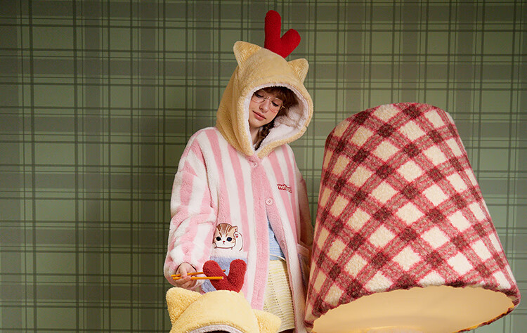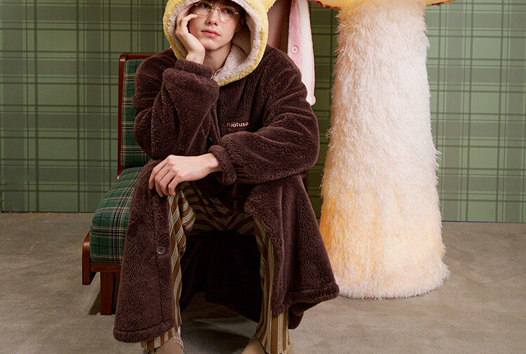 果壳(Gukoo)情侣睡衣冬款毛绒女家居服保暖连帽卡通睡袍男 米妮天堂粉睡袍 S