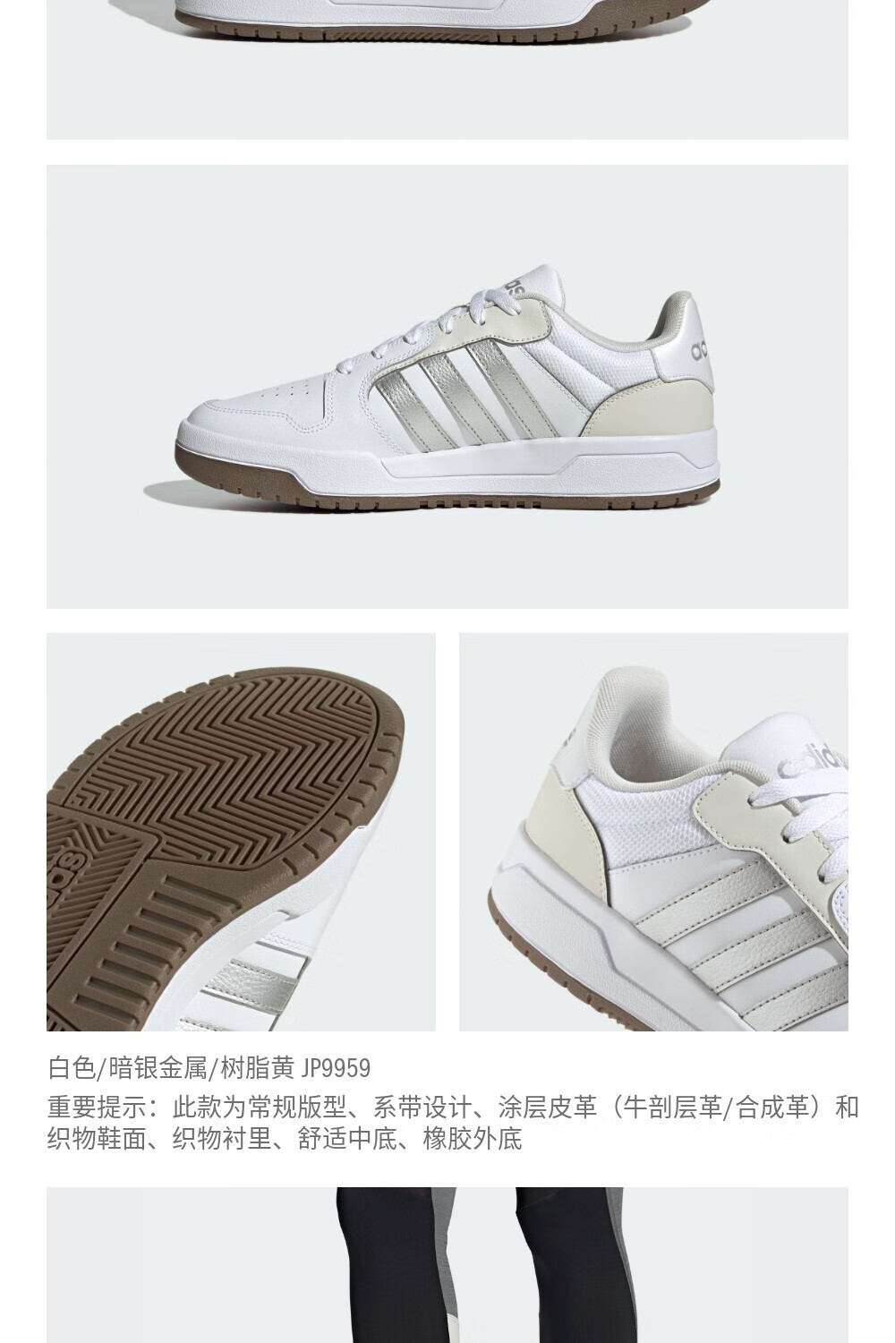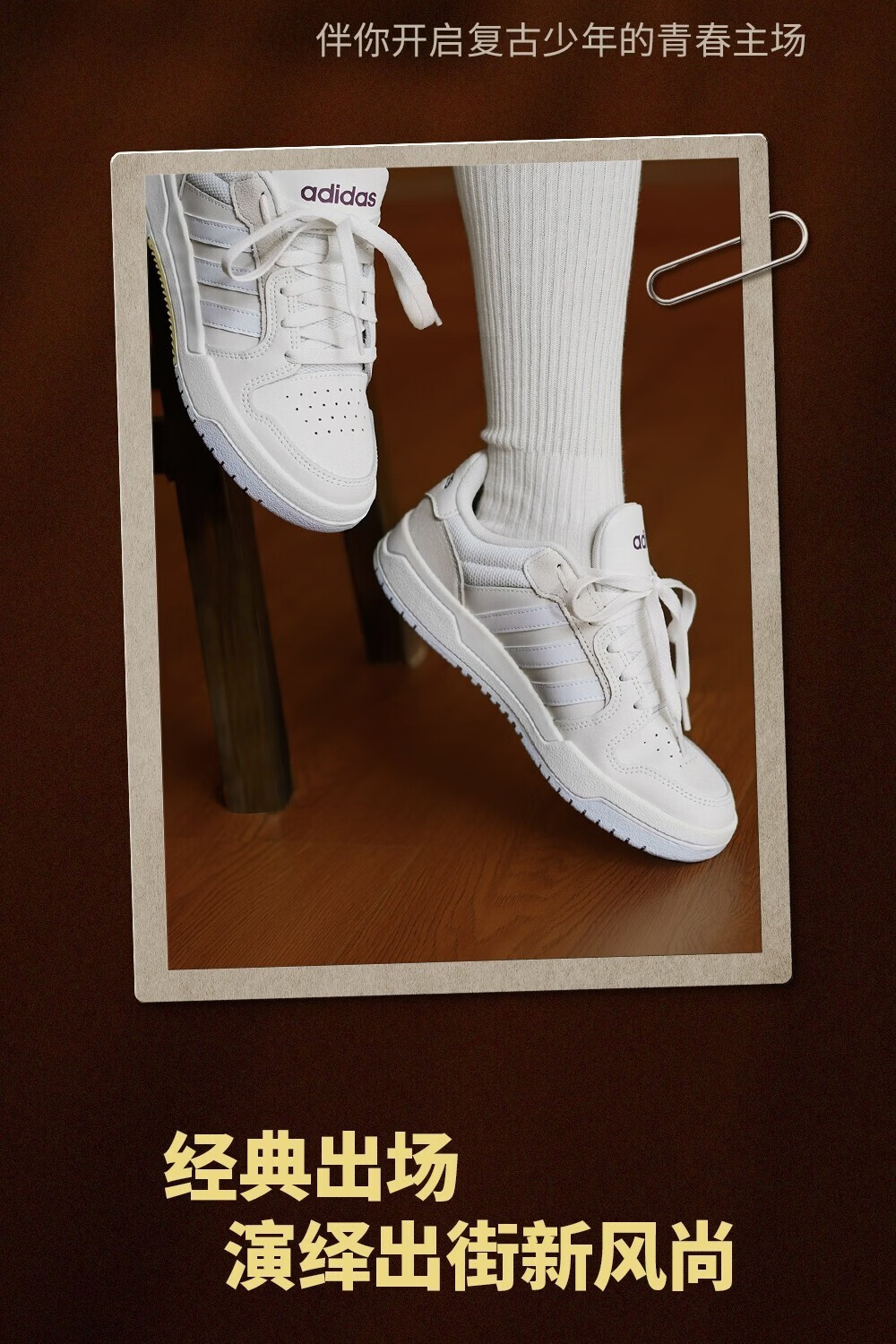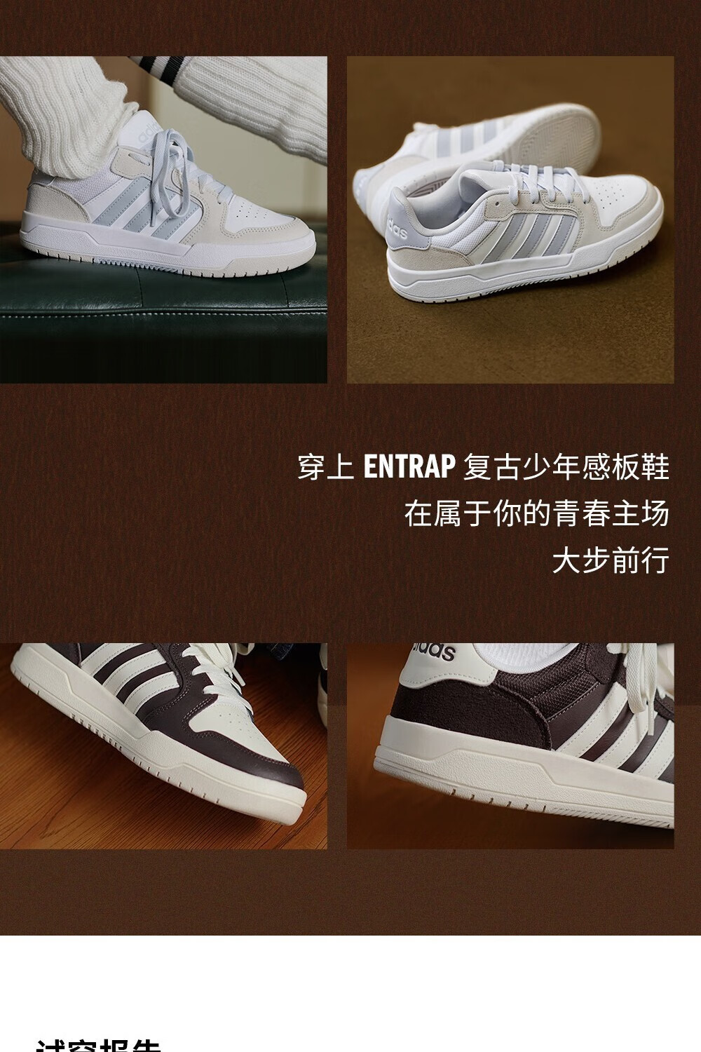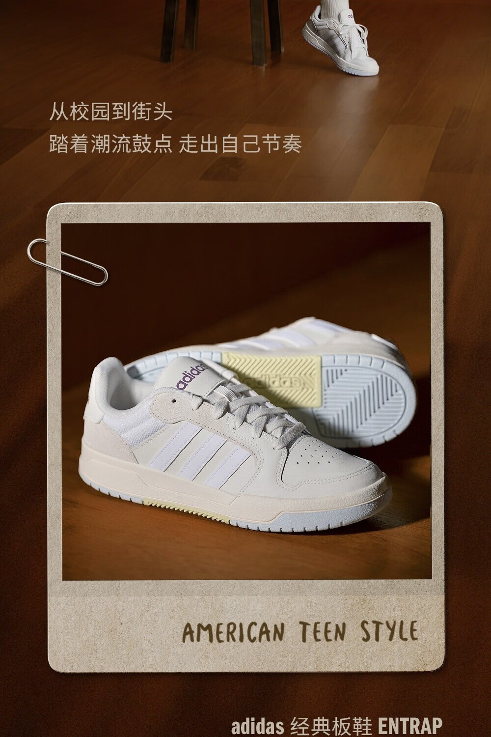 adidas ENTRAP美式校园风运动少年感复古篮球风板鞋男女阿迪达斯 白色/暗银金属/树脂黄 38