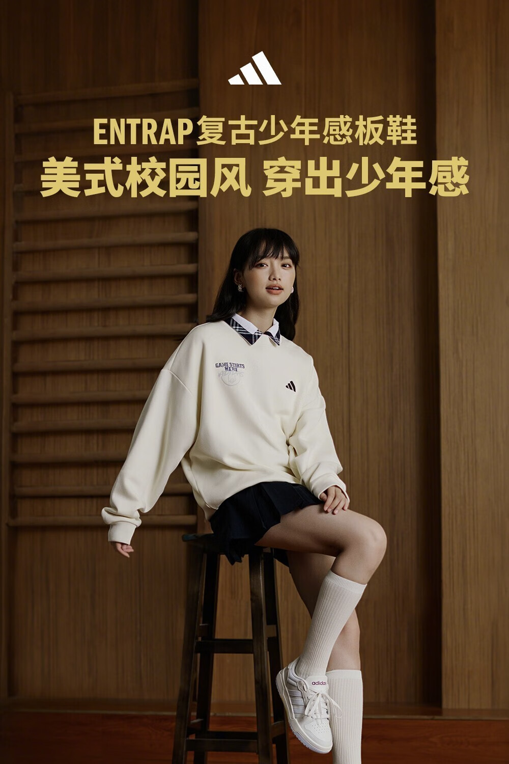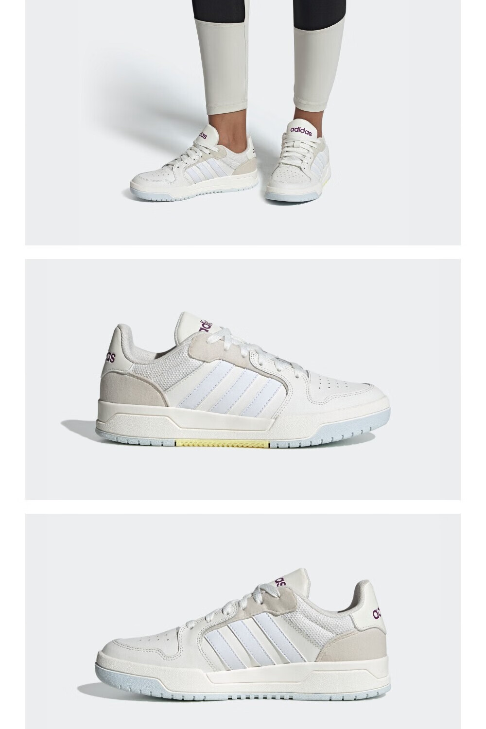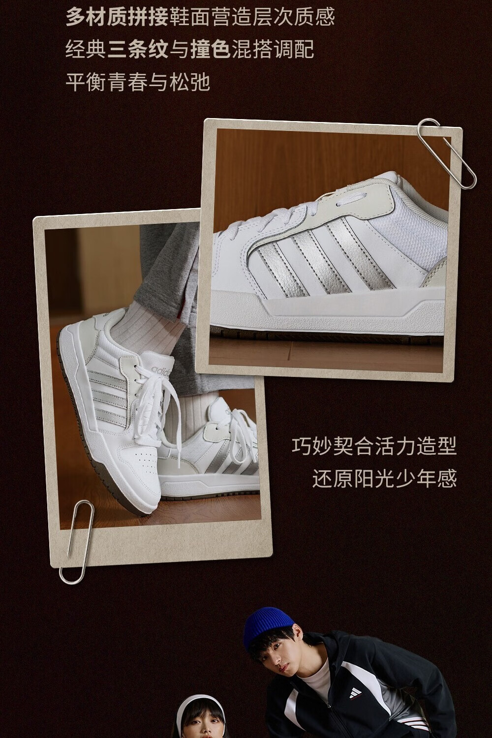 adidas ENTRAP美式校园风运动少年感复古篮球风板鞋男女阿迪达斯 白色/暗银金属/树脂黄 38