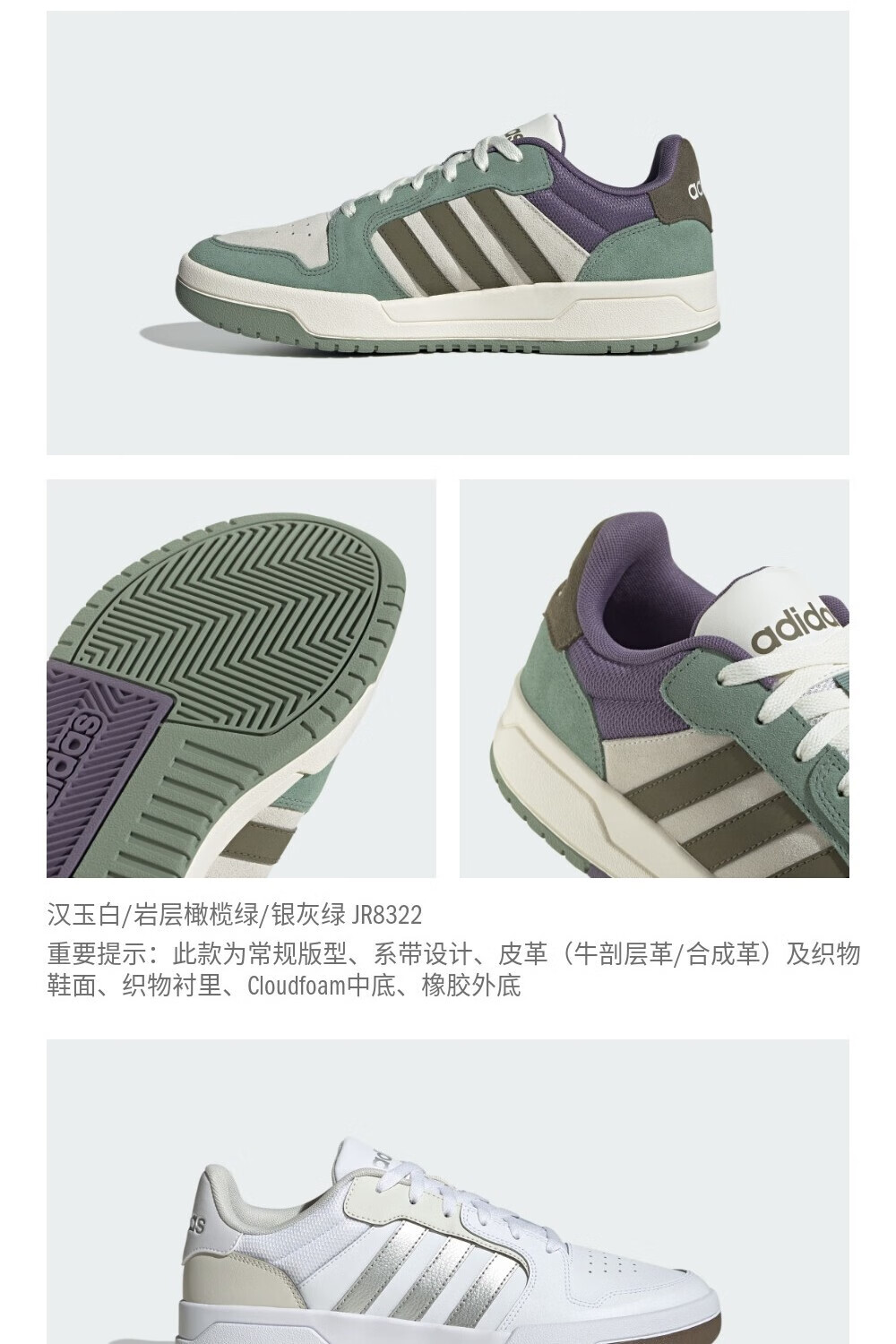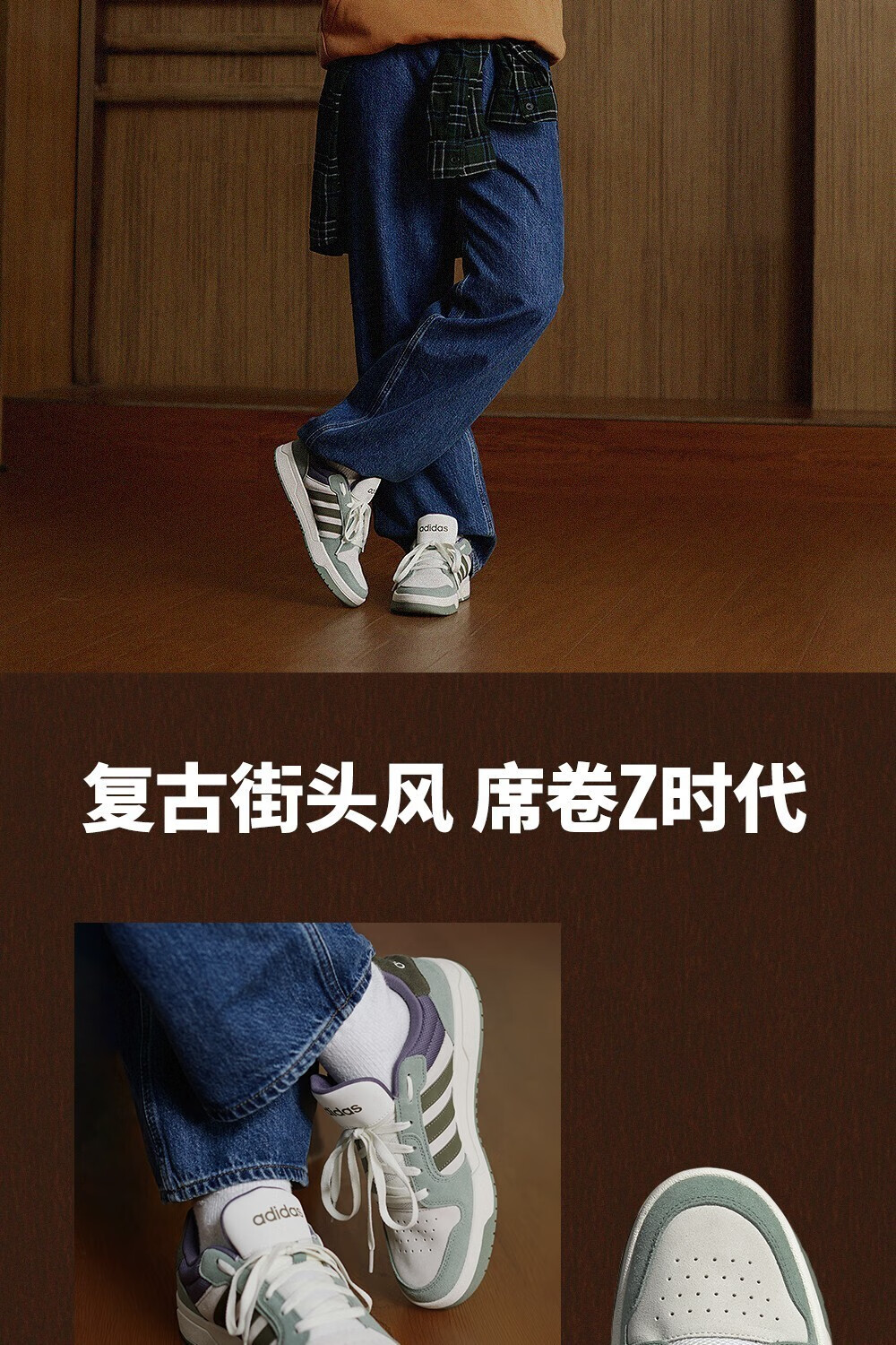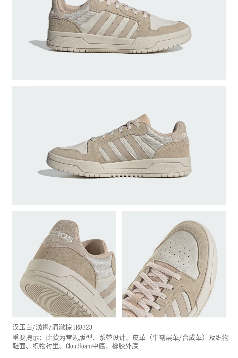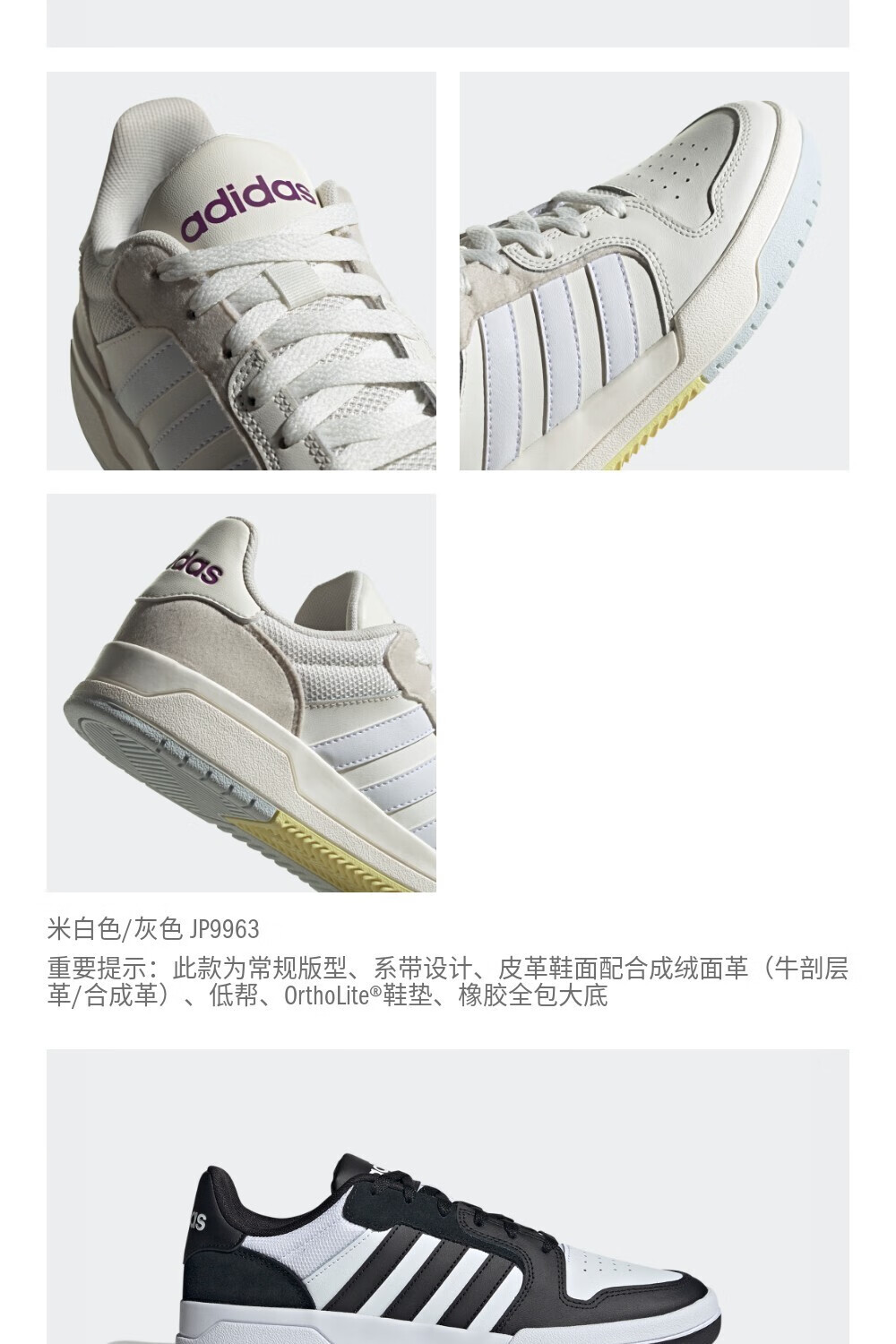 adidas ENTRAP美式校园风运动少年感复古篮球风板鞋男女阿迪达斯 白色/暗银金属/树脂黄 38