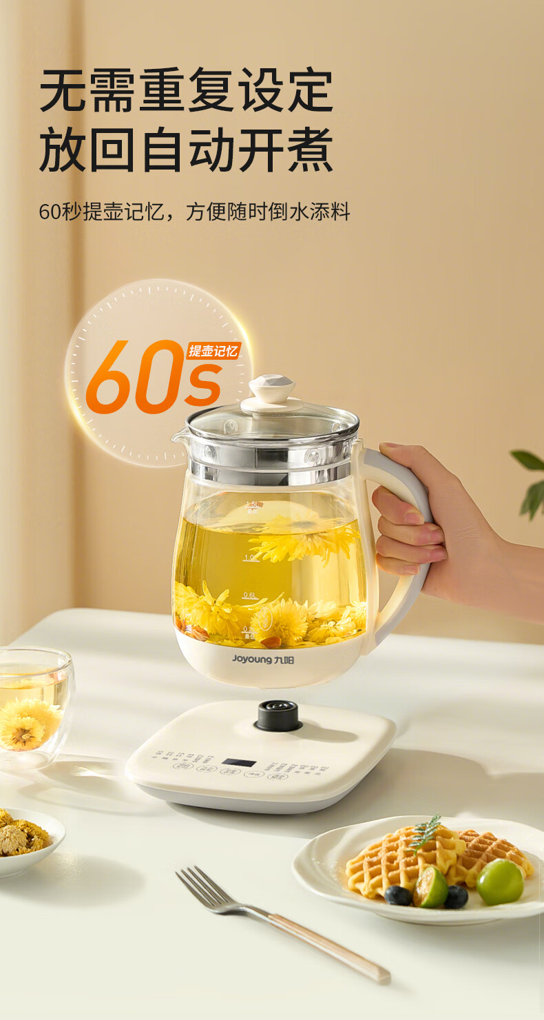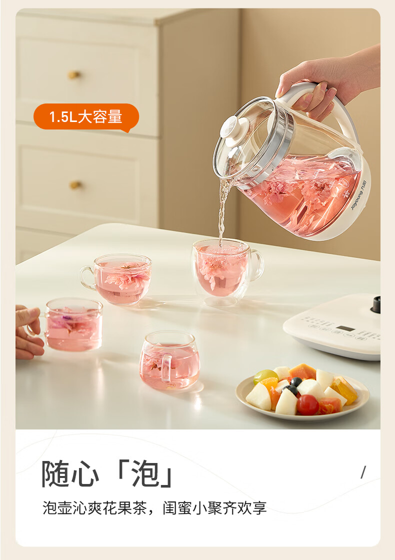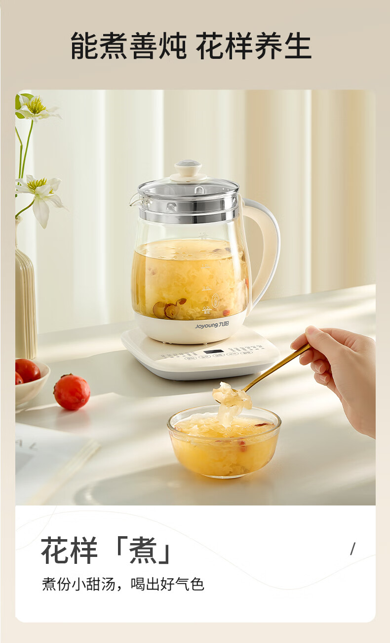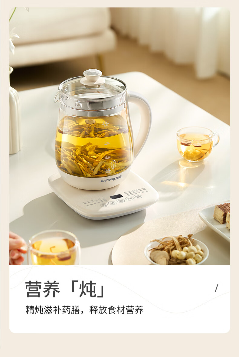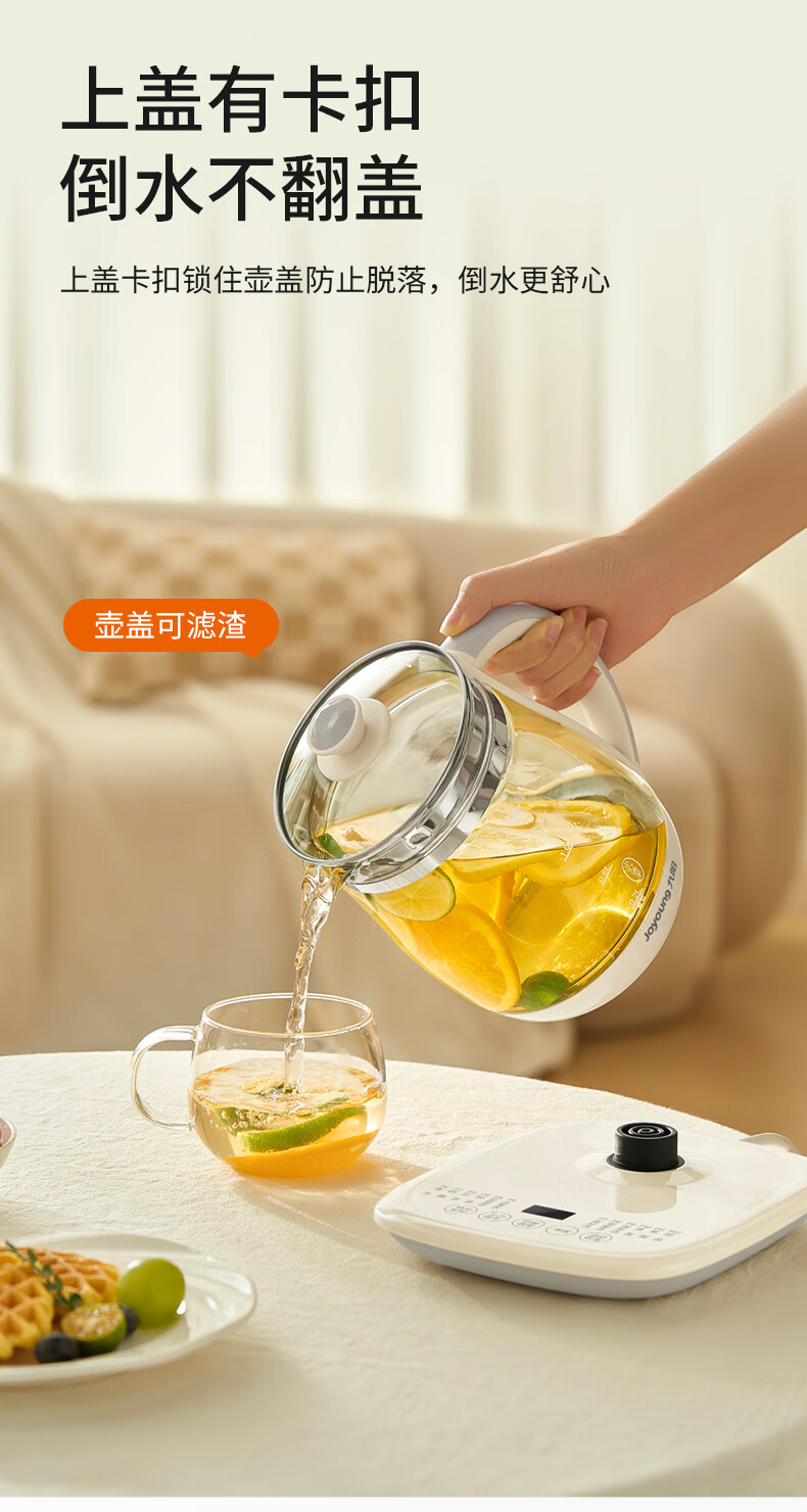 九阳(Joyoung)养生壶迷你玻璃花茶壶煮茶器 12大功能11档温度 0胶水恒温电热烧水壶1.5L 1566BQ