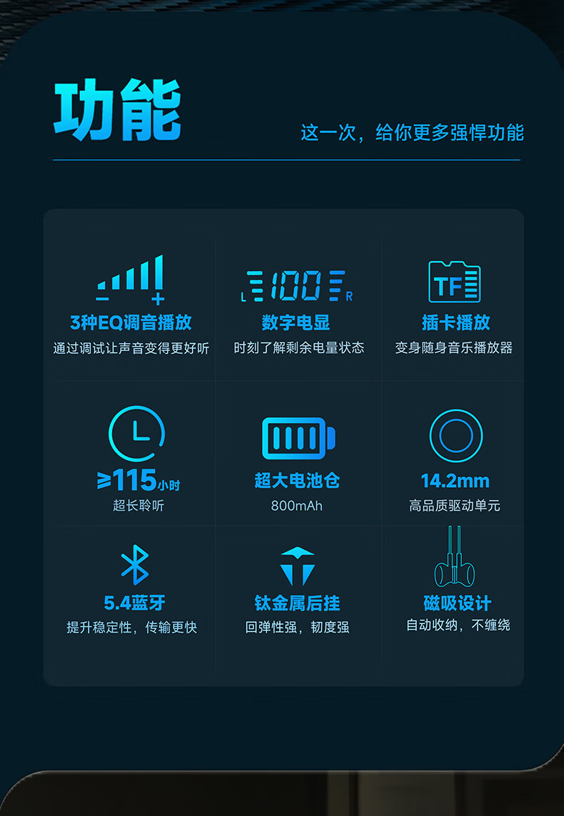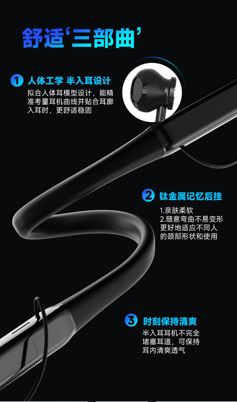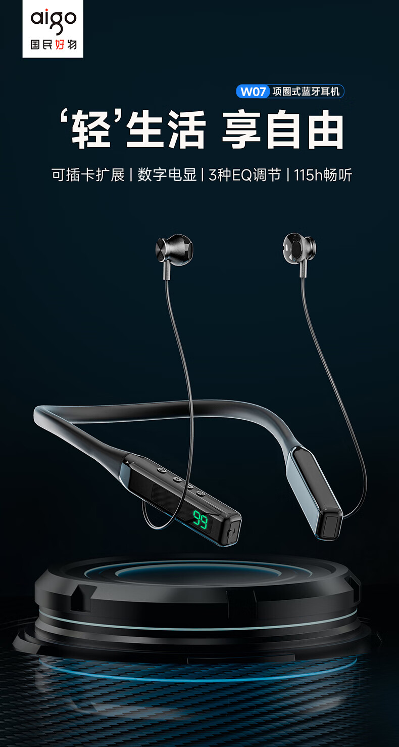 爱国者(aigo)运动蓝牙耳机挂脖式超长续航115小时 可插卡电量数显 项圈颈挂式狂甩不掉 适用苹果小米oppo