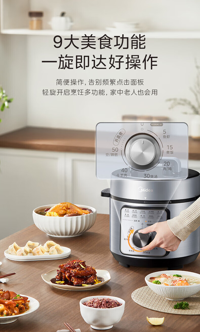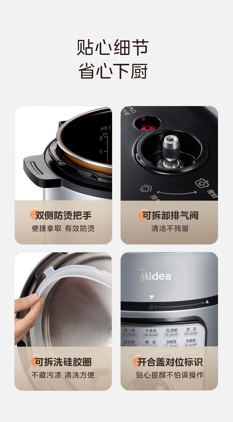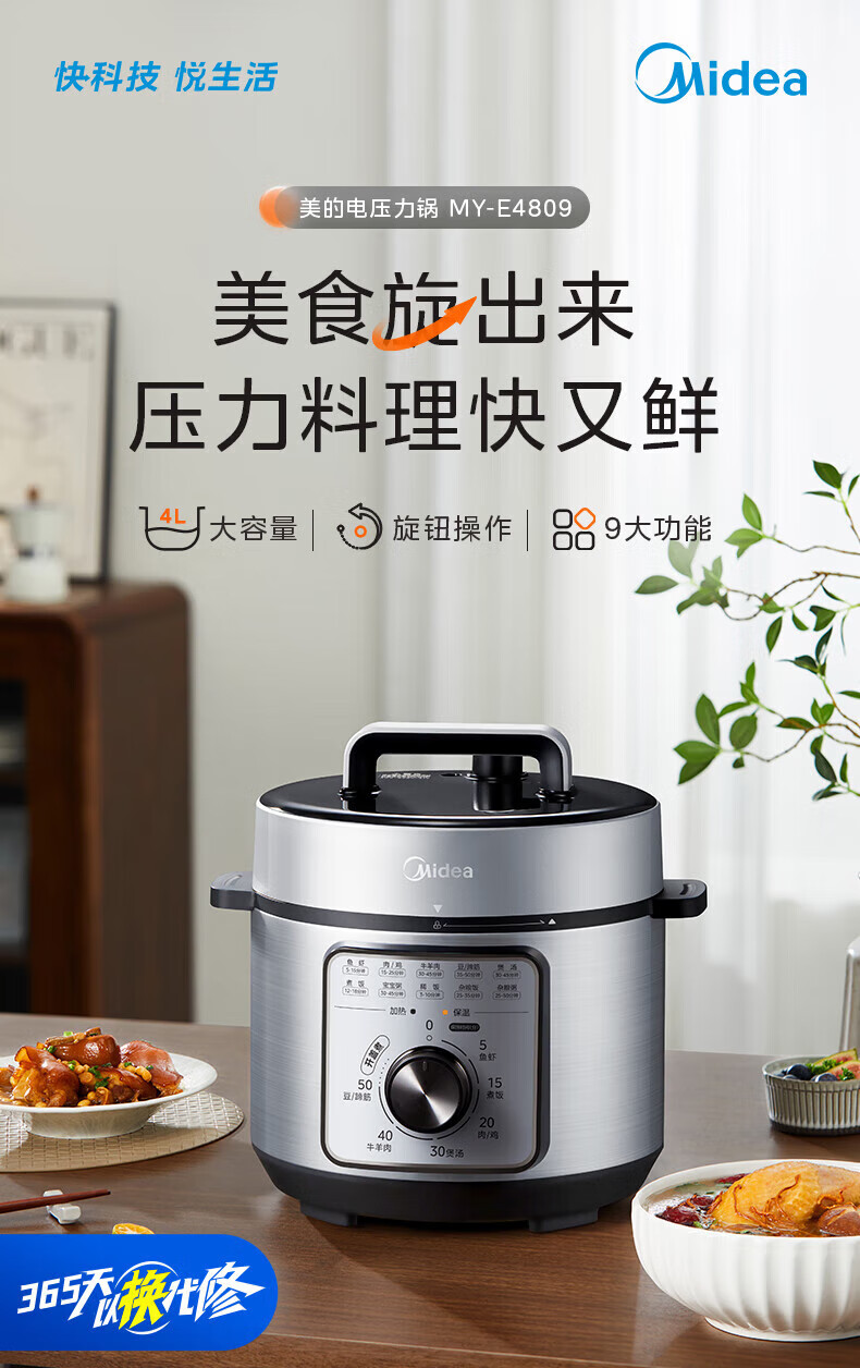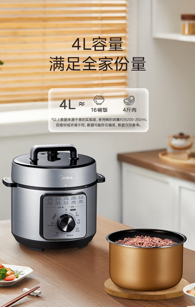 美的 (Midea)电压力锅4L家用多功能 开盖火锅高压锅15分钟软糯饭 70Kpa高压快煮 开盖煮【高压快煮】 4L