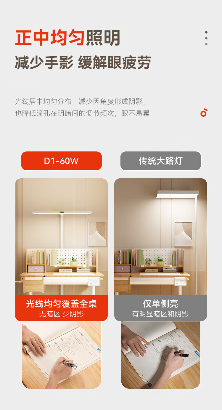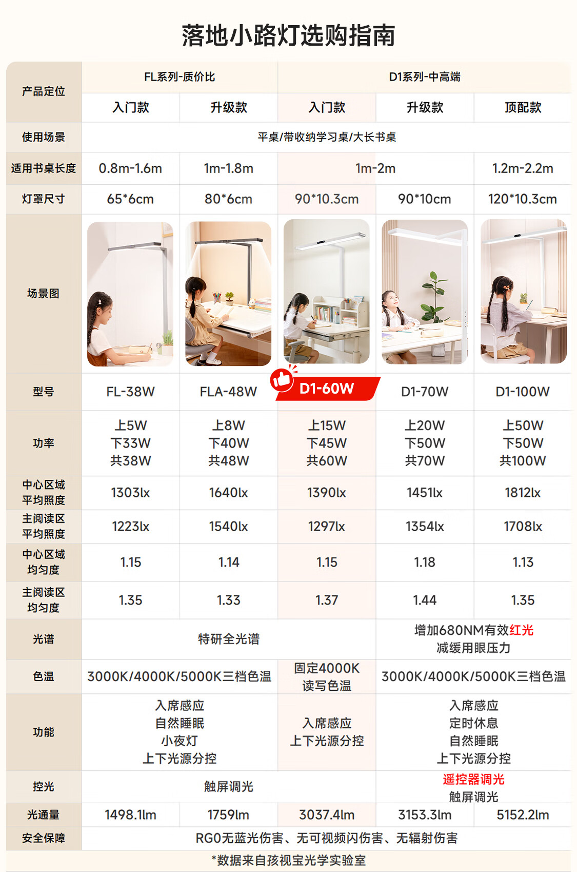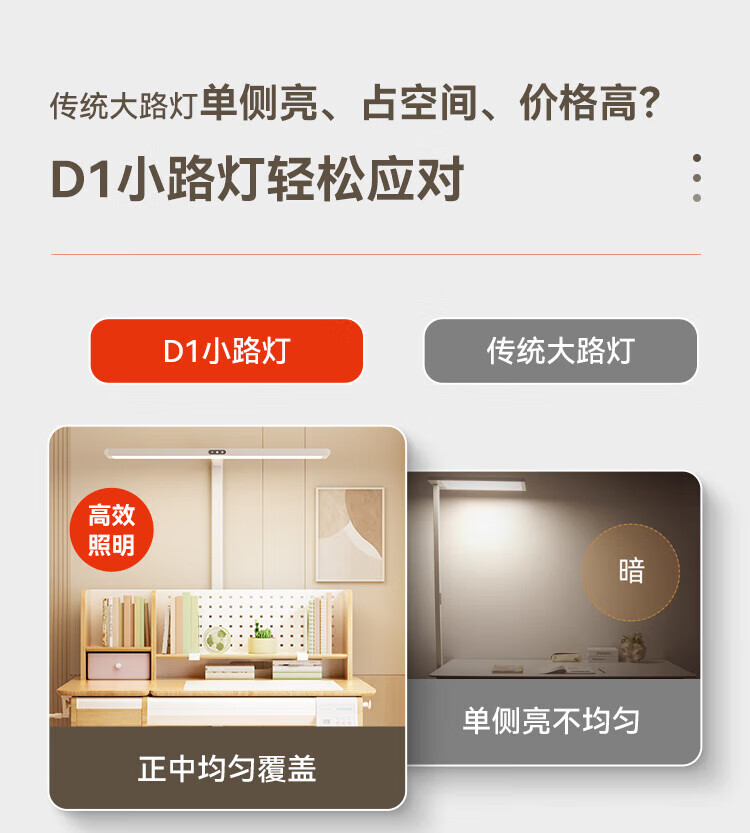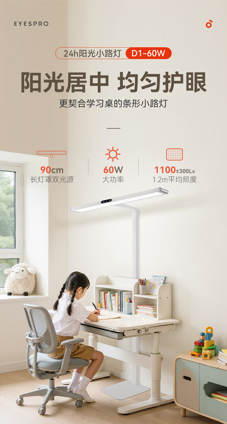 孩视宝立式护眼大路灯全光谱智能落地灯小路灯台灯儿童学生学习阅读灯 【D1入门款】90cm灯头 | 入席感应自动开关灯 60W 高亮高均匀 | 媲美大路灯