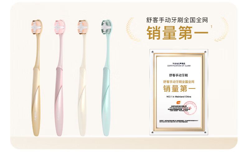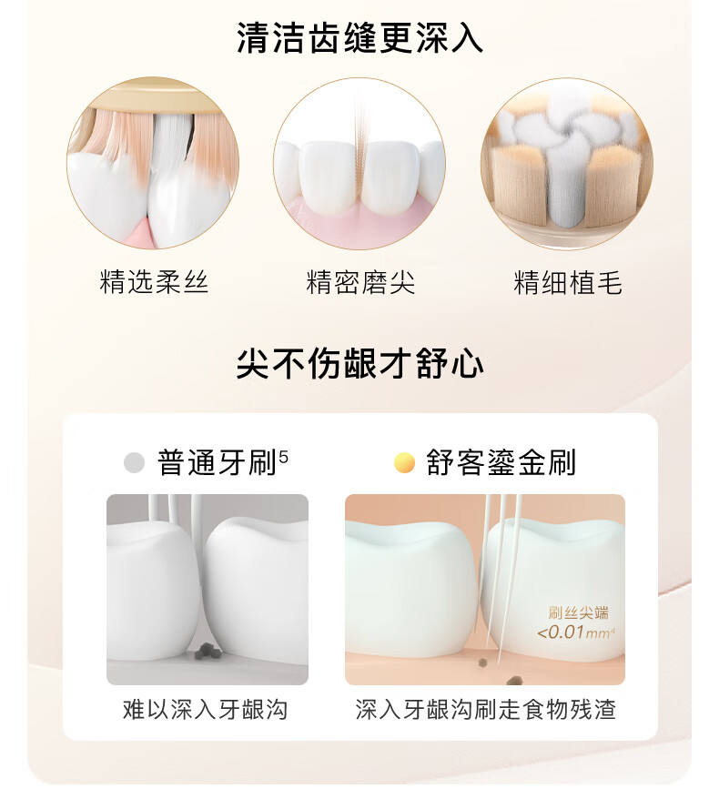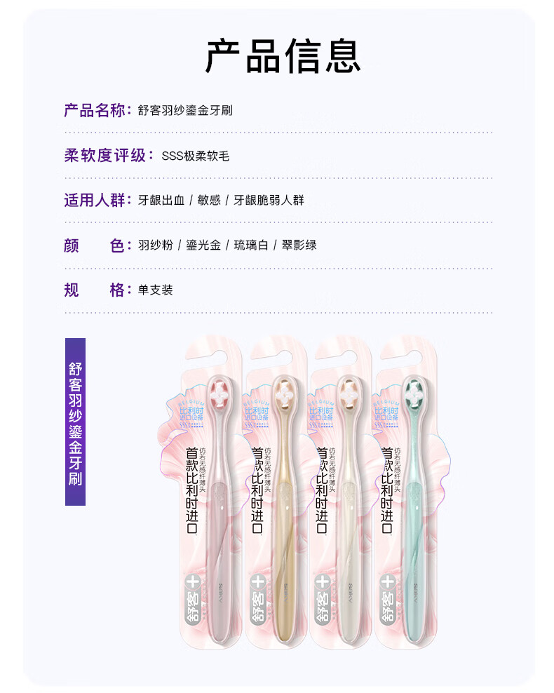 舒客净透刷无铜植毛牙缝刷得净专抗敏感SSS超细软毛4支颜色随机