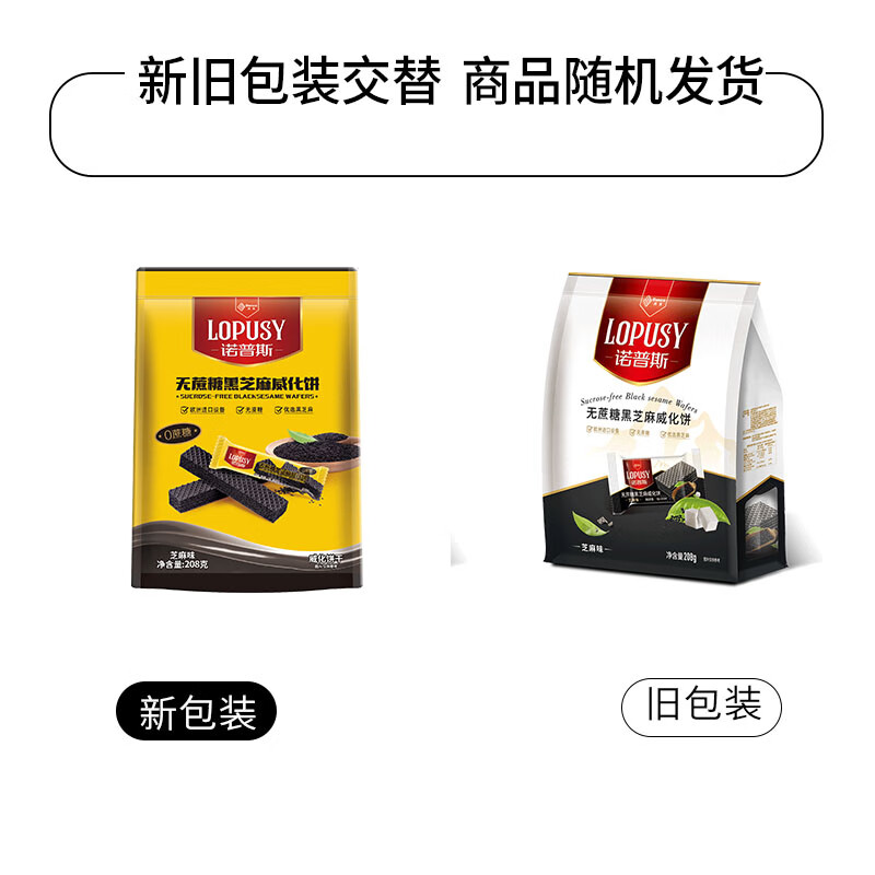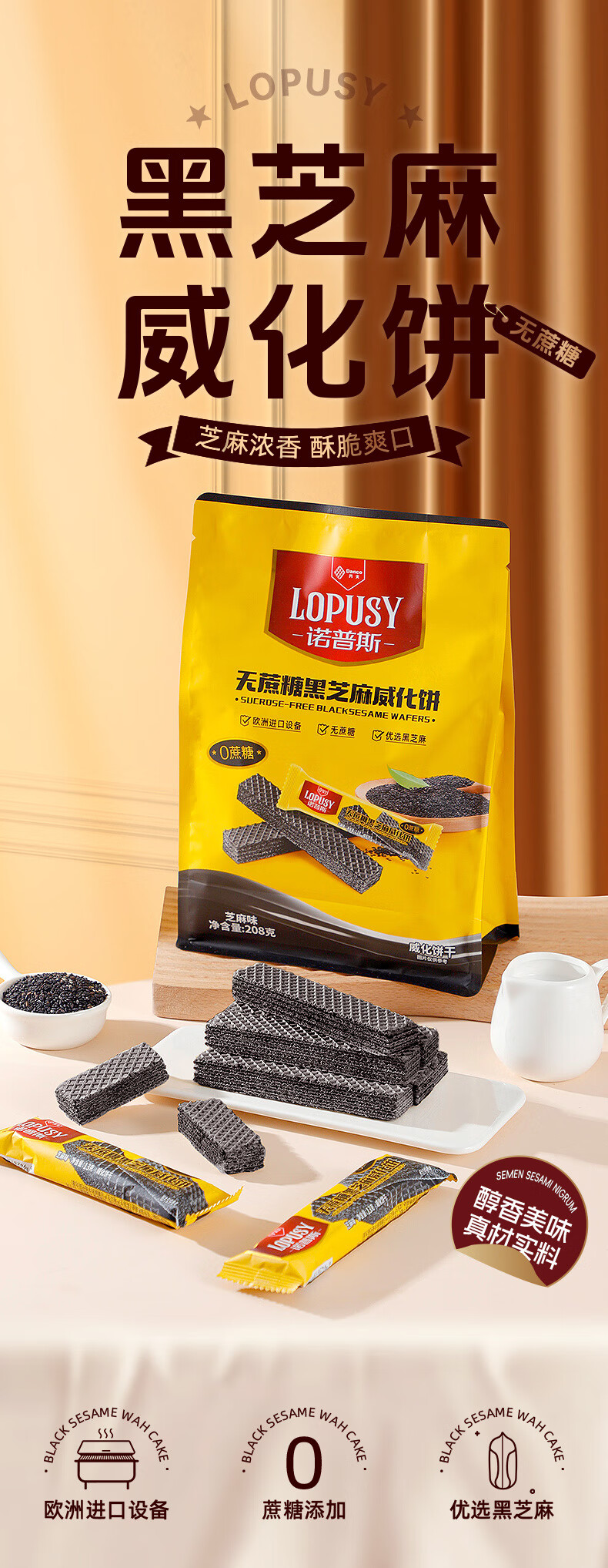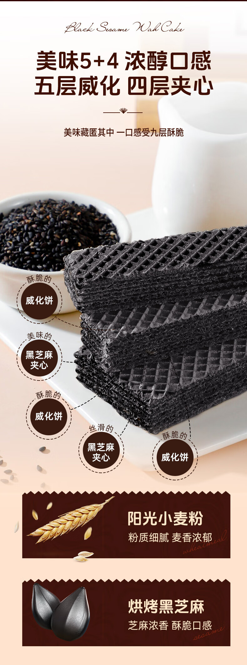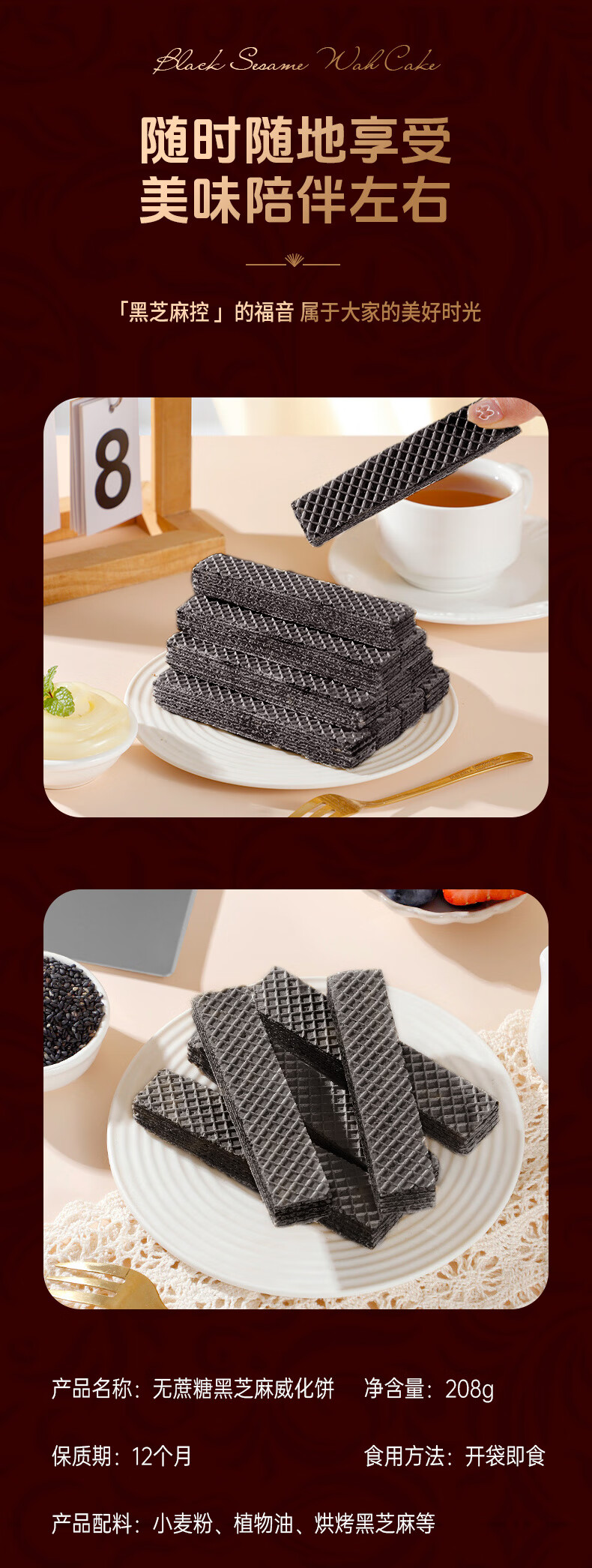 丹夫无蔗糖黑芝麻夹心威化208g下午茶健康零食品饼干休闲糕点独立装