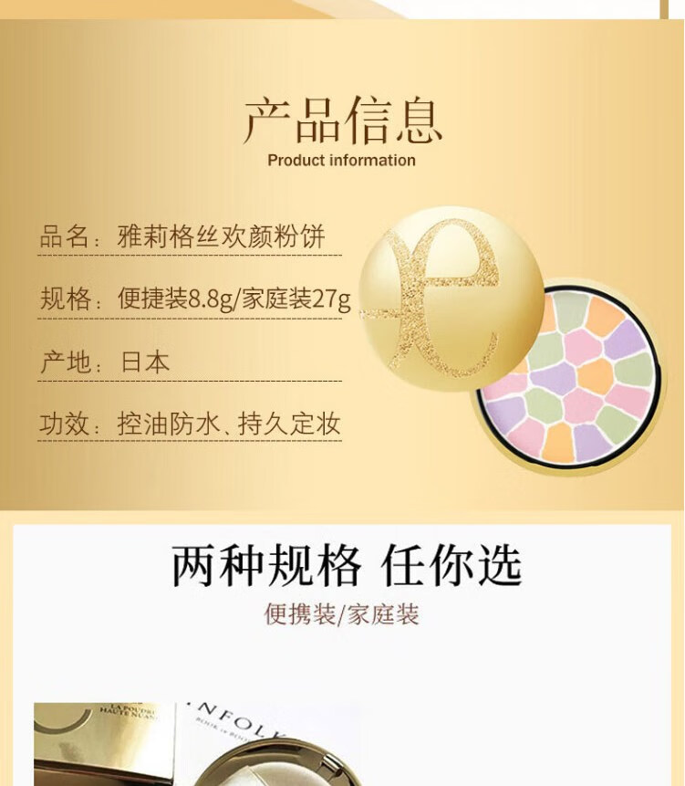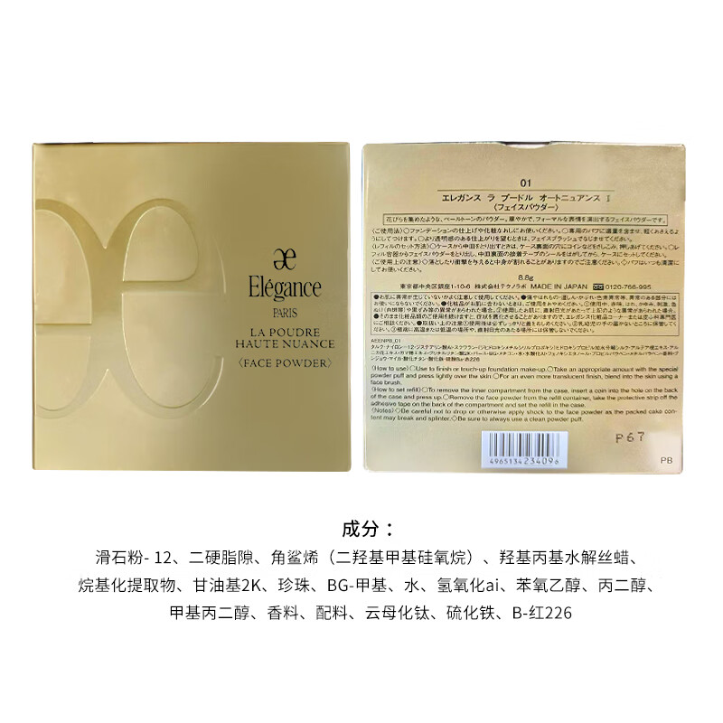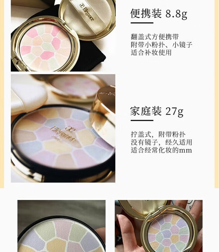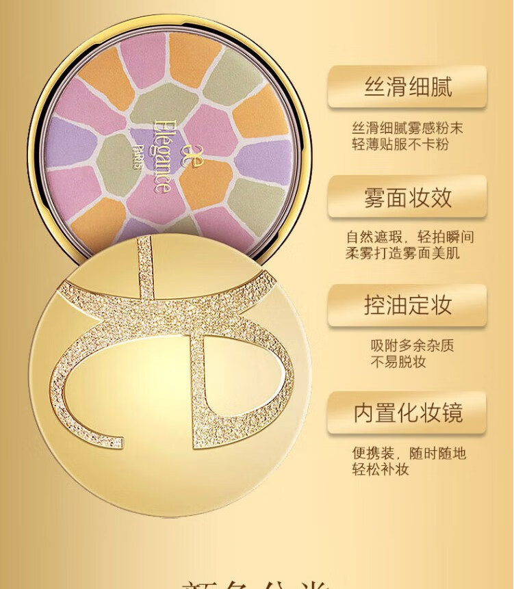 雅莉格丝(Elegance)欢颜蜜粉饼e大饼#01 8.8克粉质细腻长久持妆生日圣诞礼物女