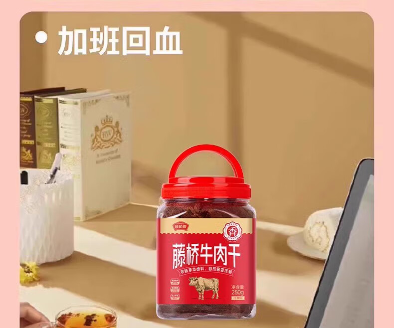 藤桥牛肉干温州湖岭特产手撕牛肉大片原切湿牛肉大桶装 五香味2桶共500g