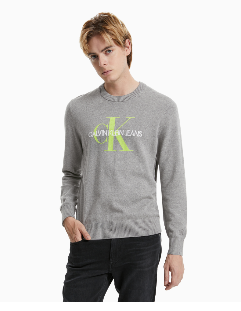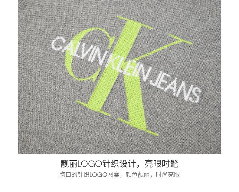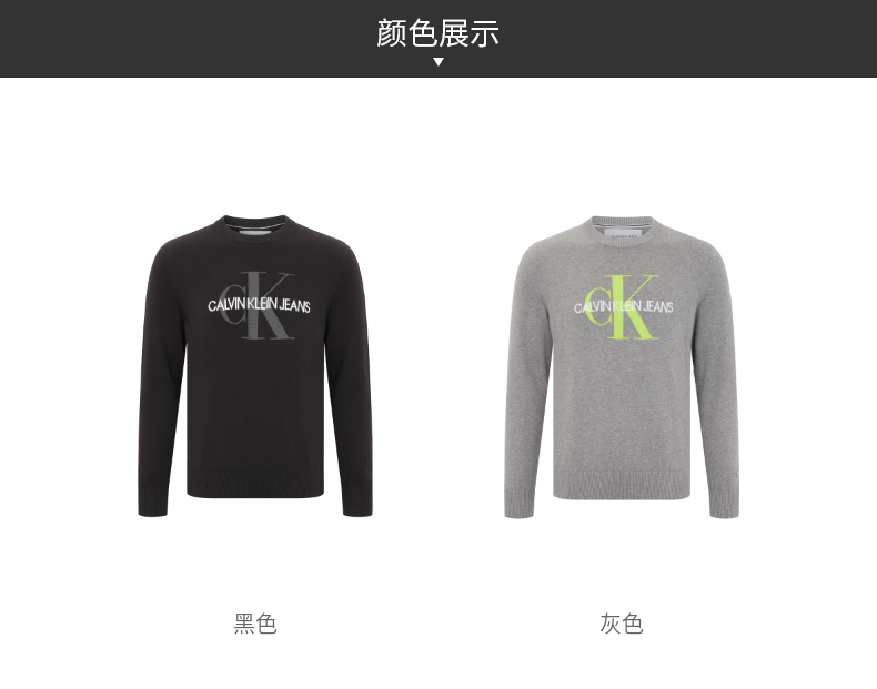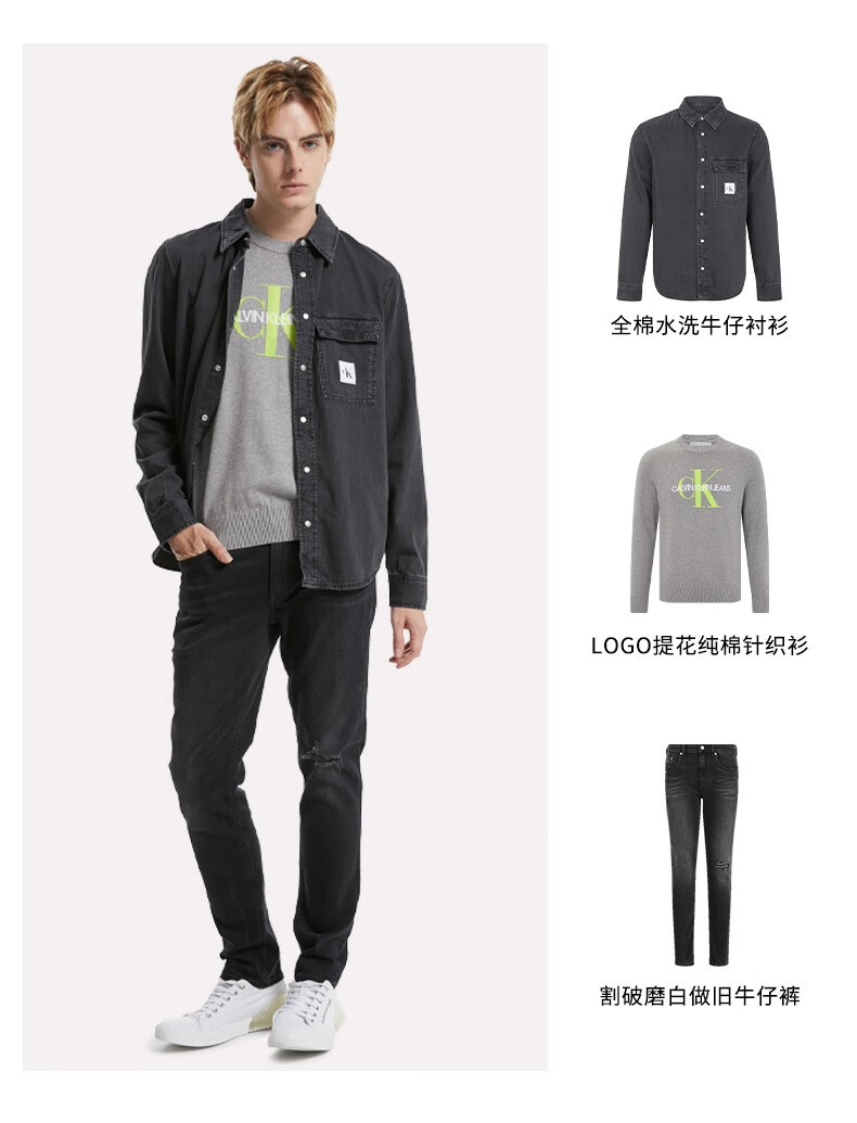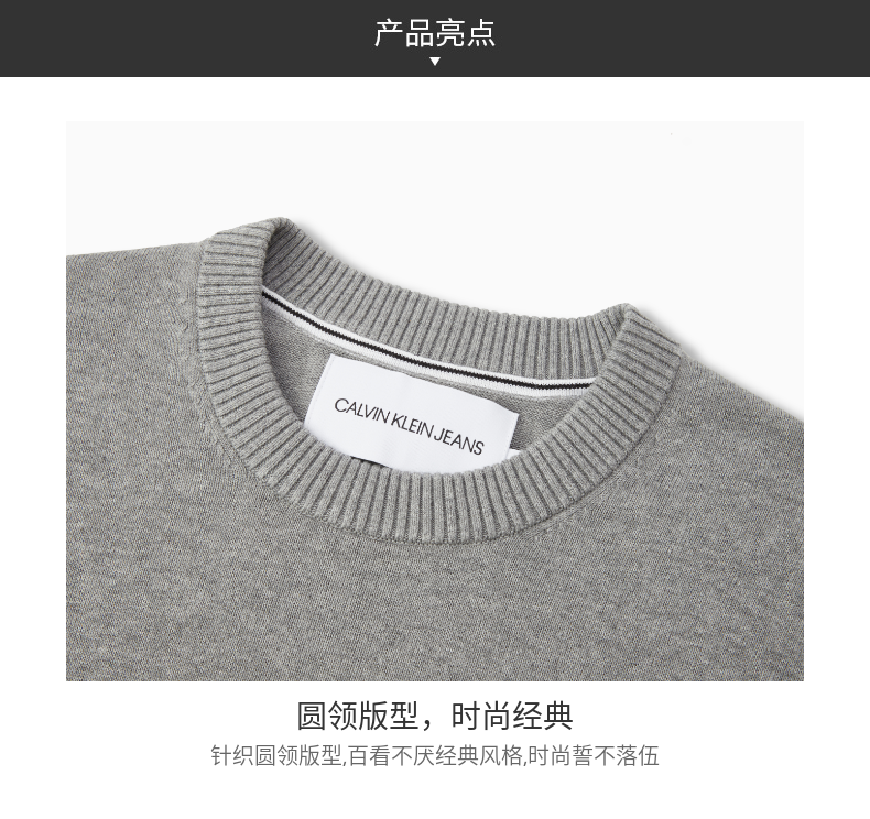 Calvin KleinJeans秋冬男装时尚休闲通勤ck纯棉舒适圆领字母提花打底衫针织衫 BEH-黑色 S (建议110-130斤)