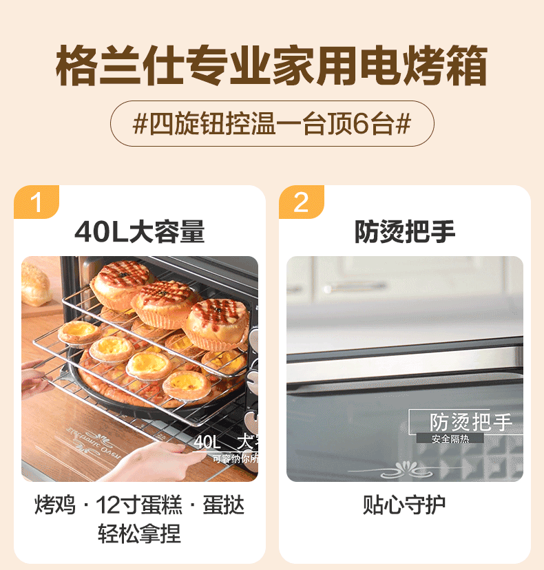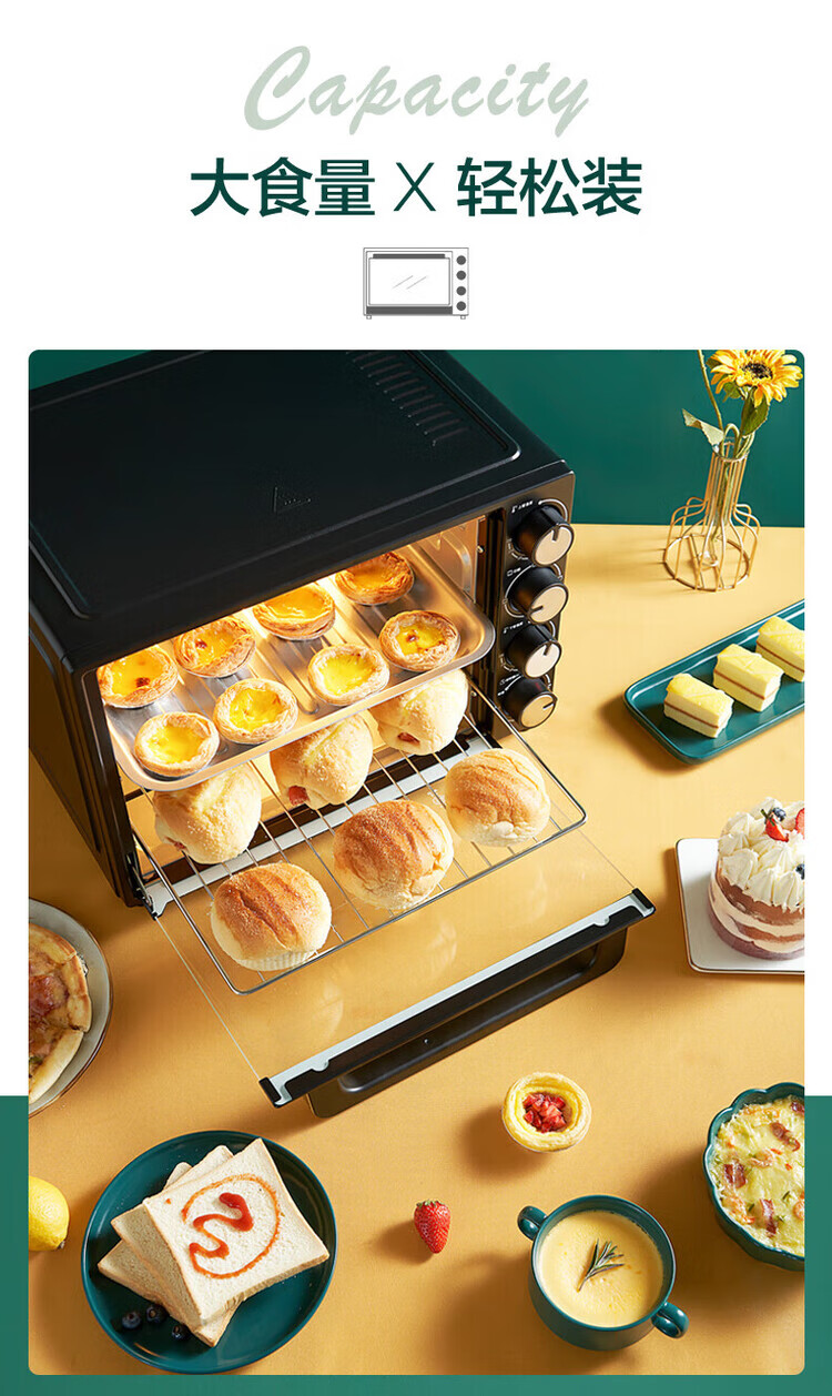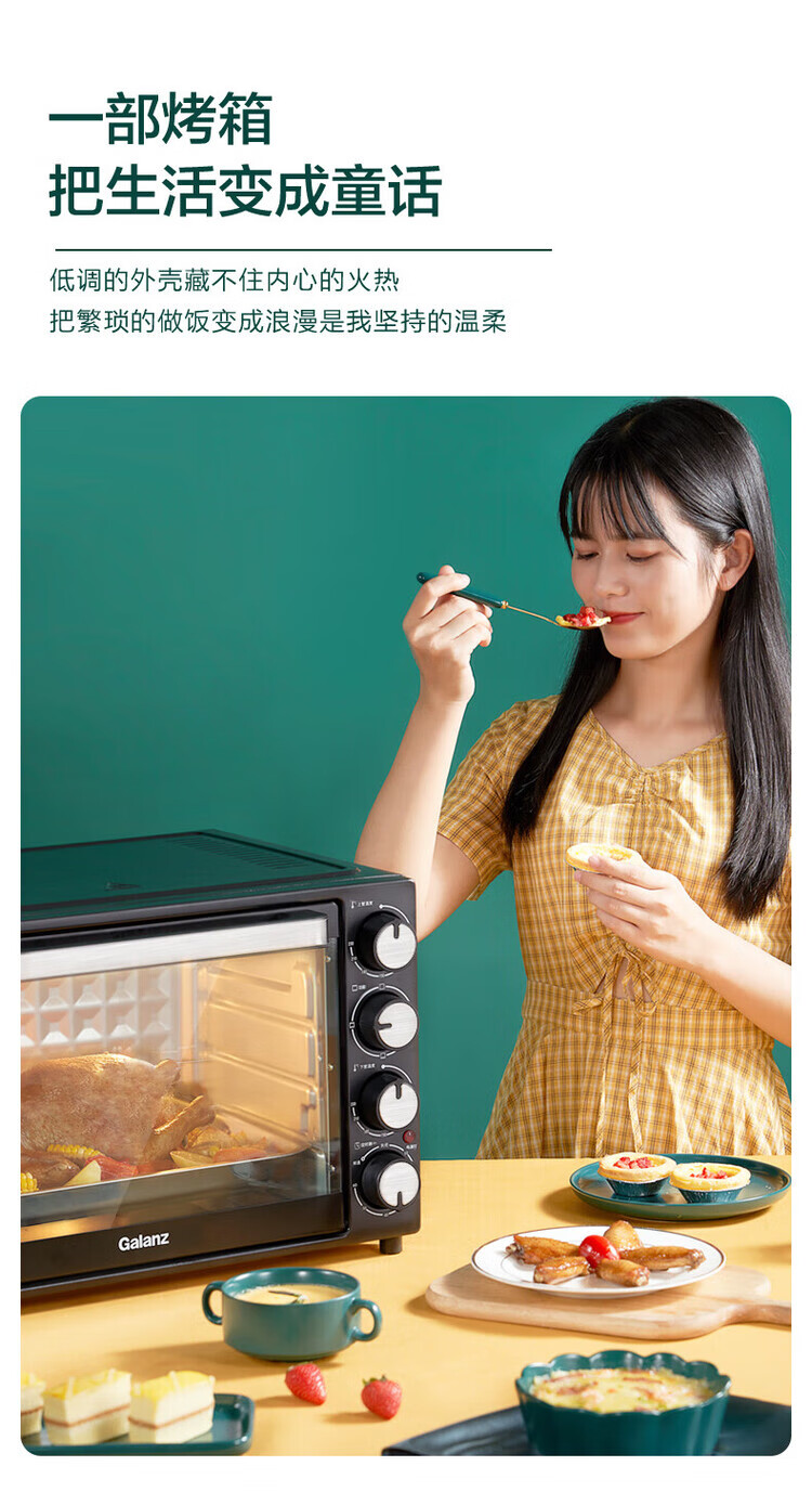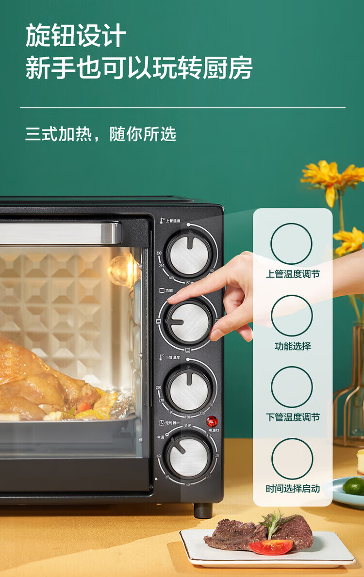 格兰仕电烤箱 烤箱家用 烘焙烤箱40L超大容量内置可视炉灯上下独立控温多层多功能 黑色 40L