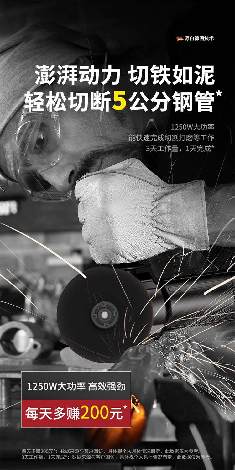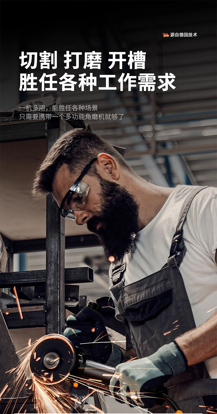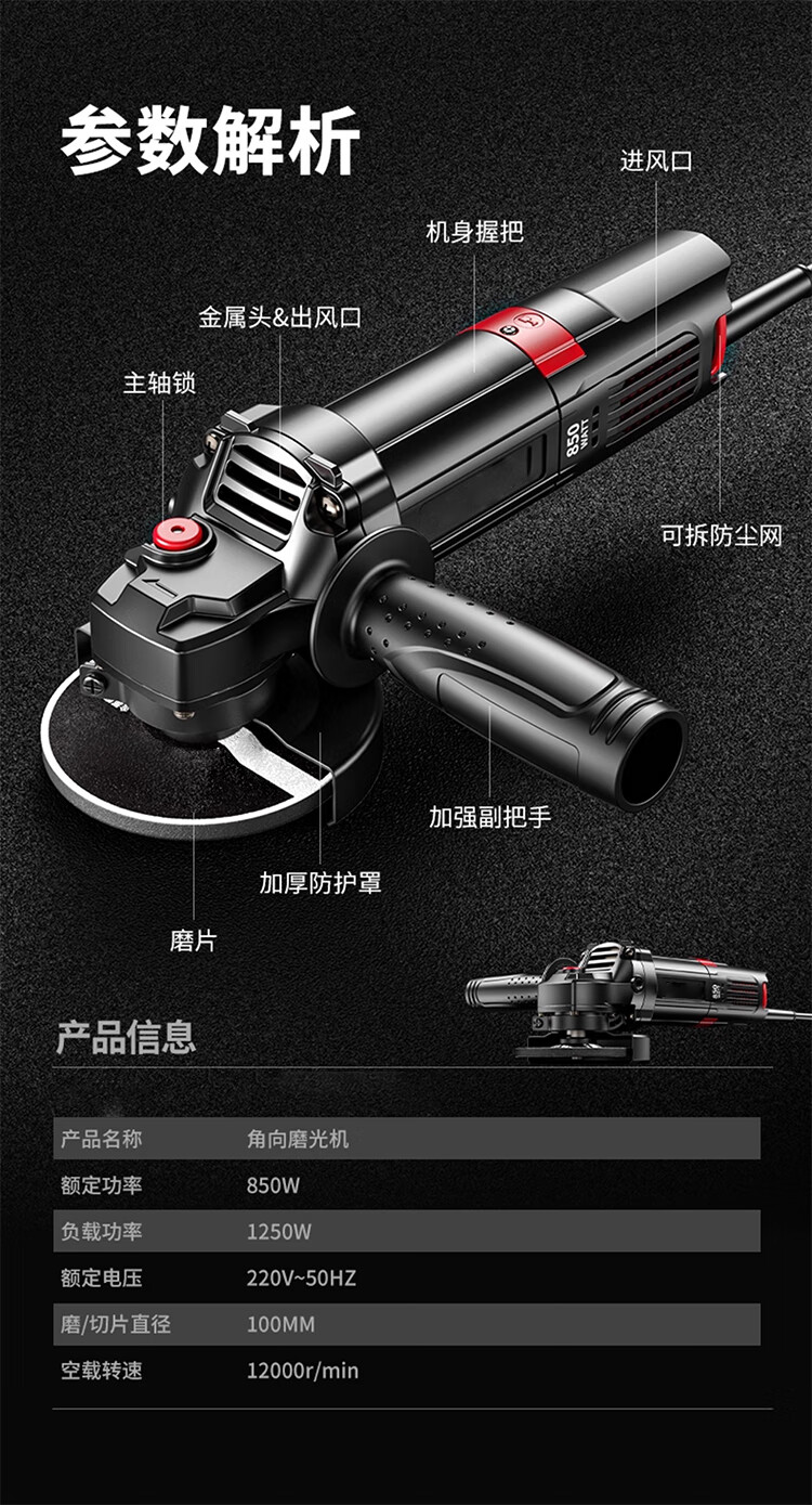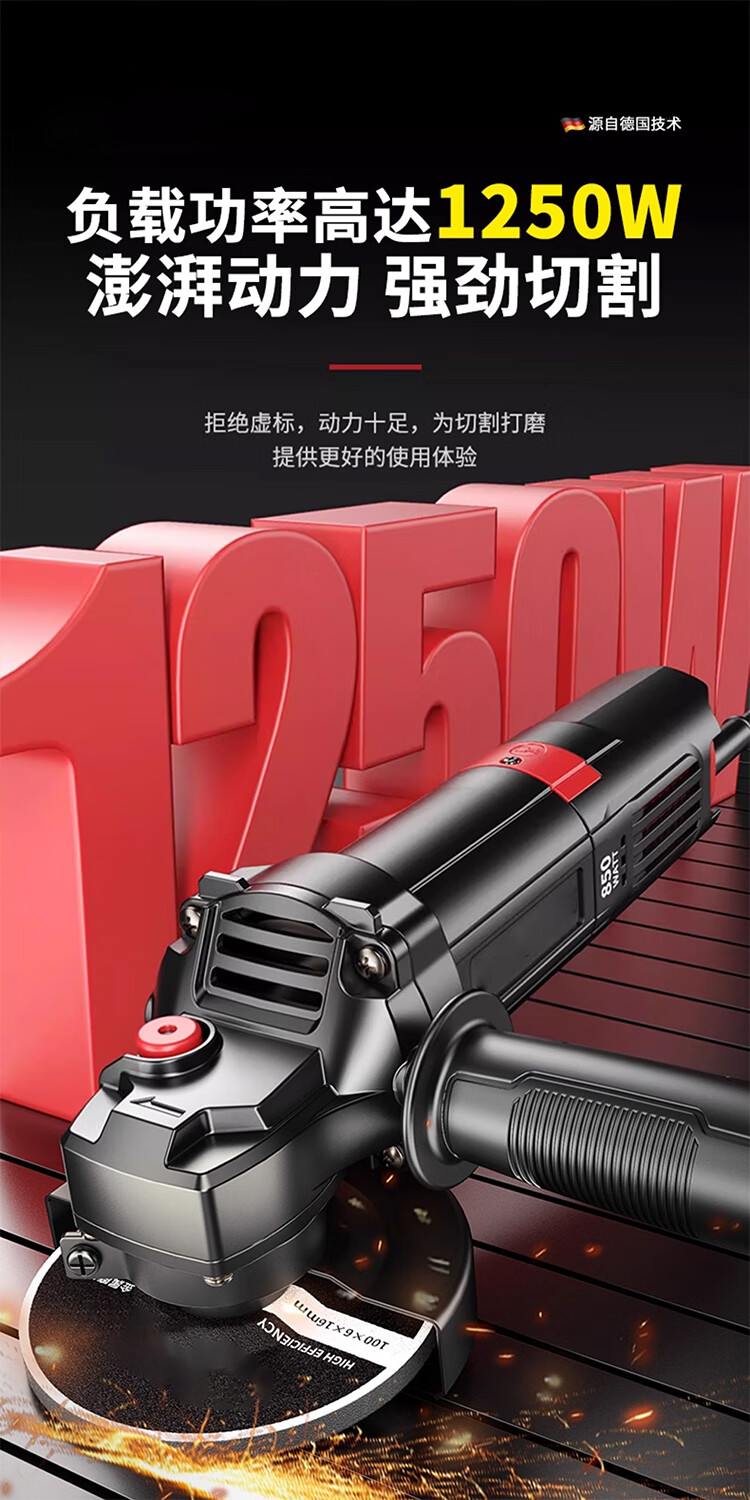 馍彭德国角磨机打磨机抛光机小型磨光机多功能切割机家用手磨机手砂轮 【纯铜电机】家装款标配