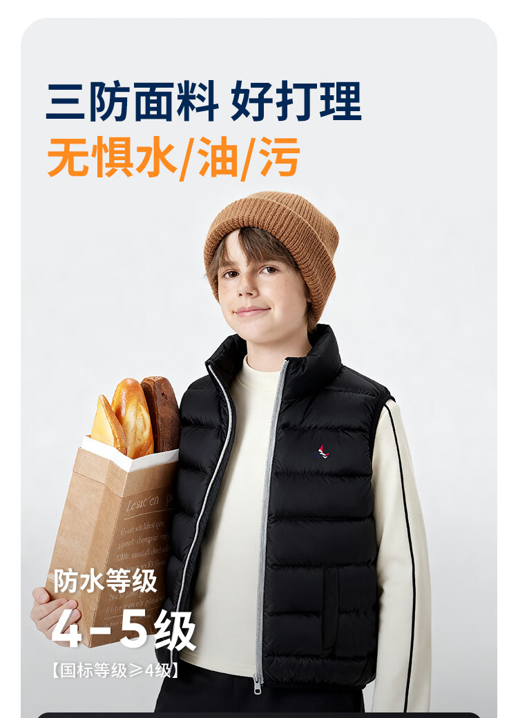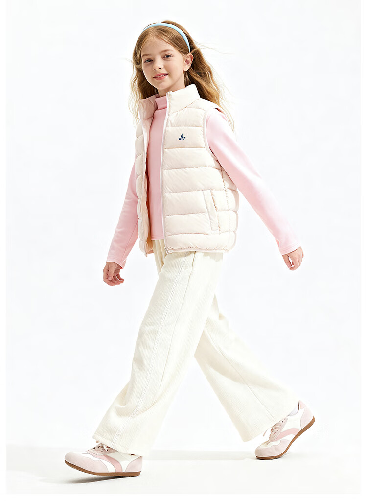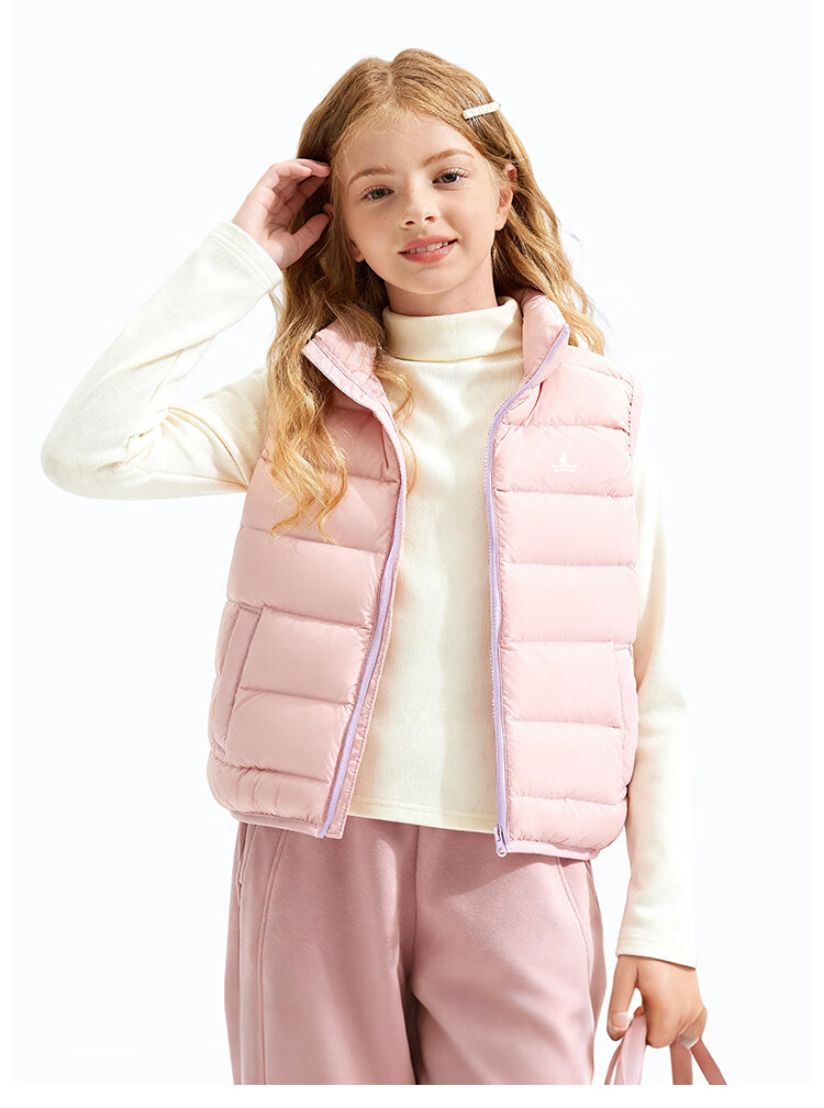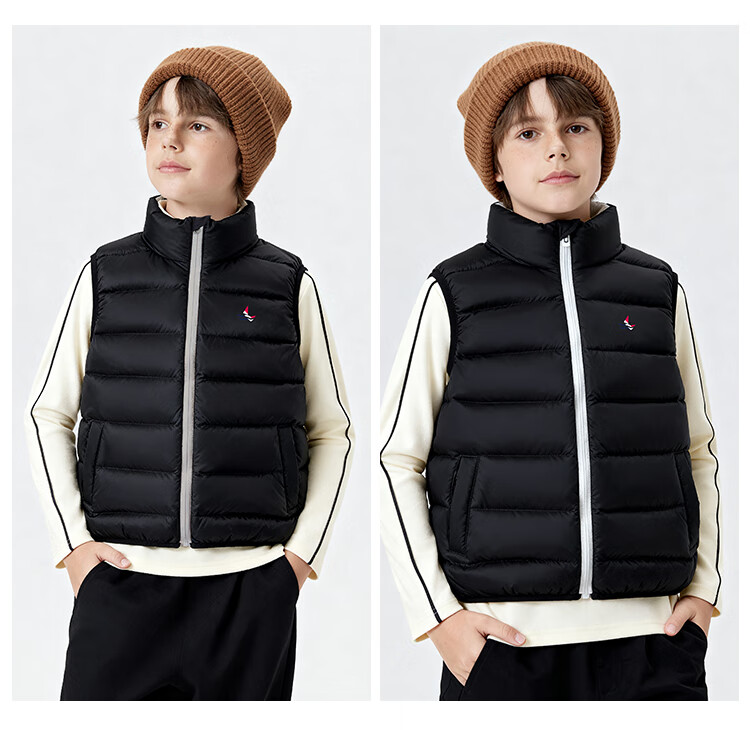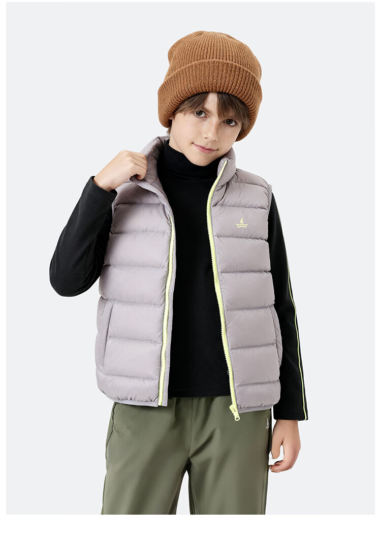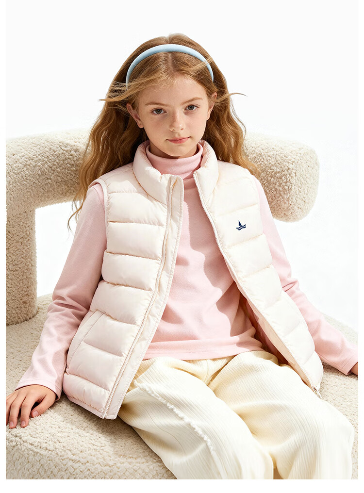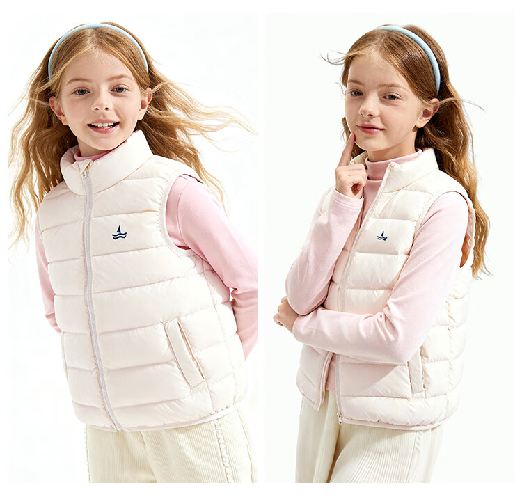 纳维凯尔儿童羽绒马甲冬季新款男童羽绒马甲女童外套学生上衣防寒保暖舒适 插袋马甲米白 150