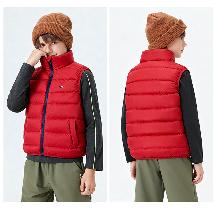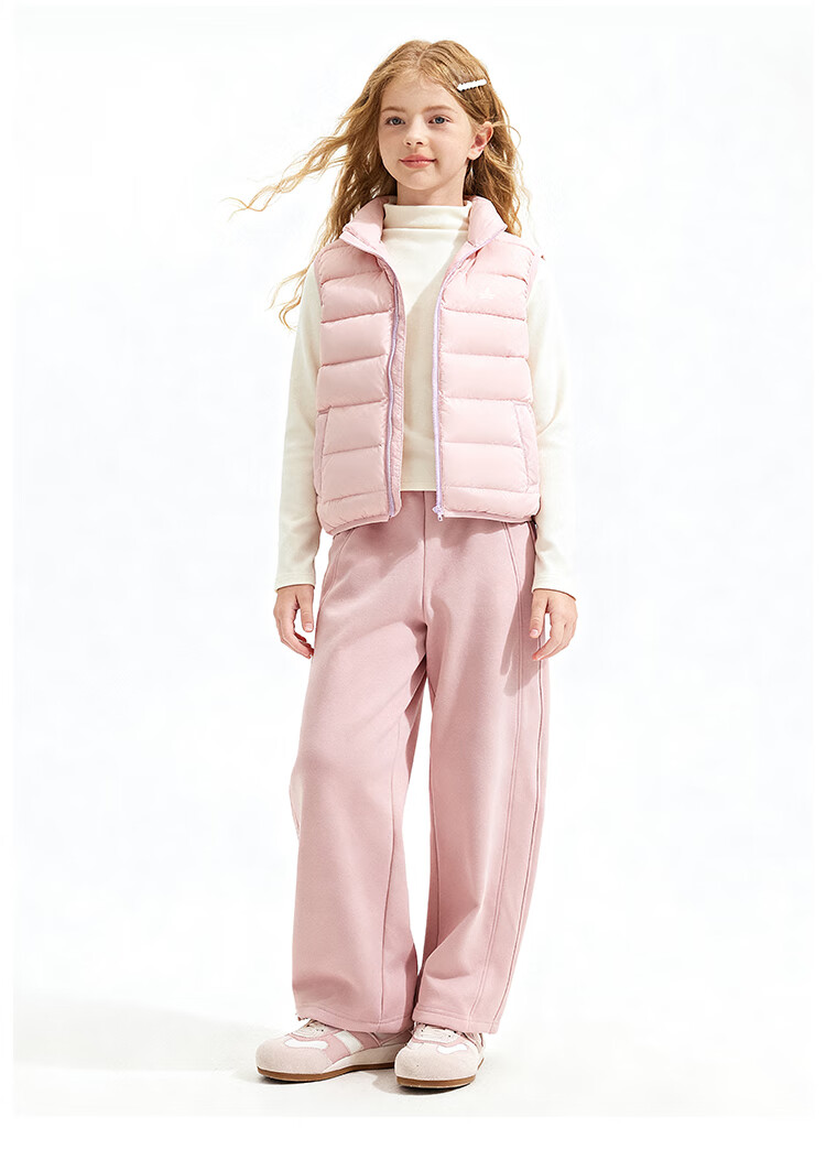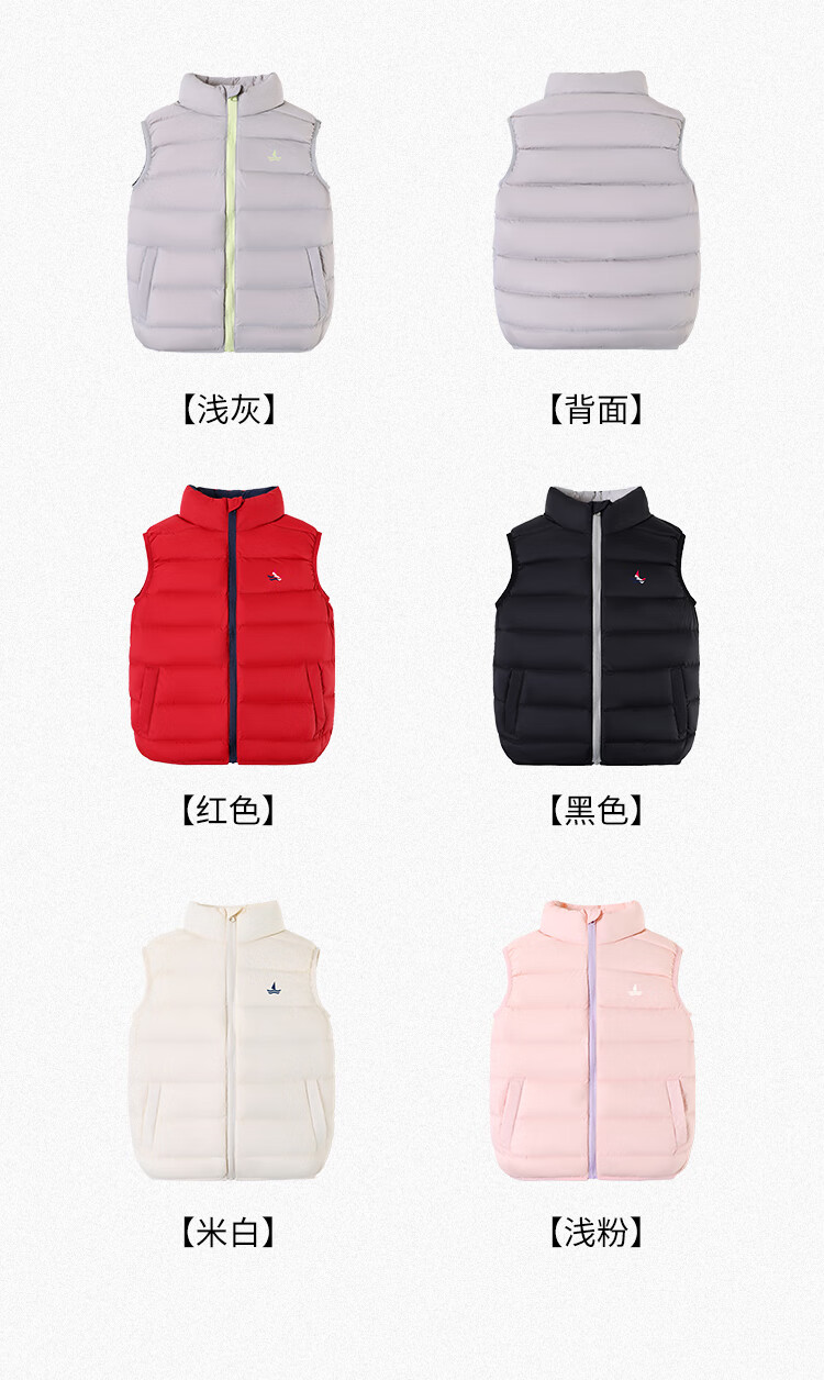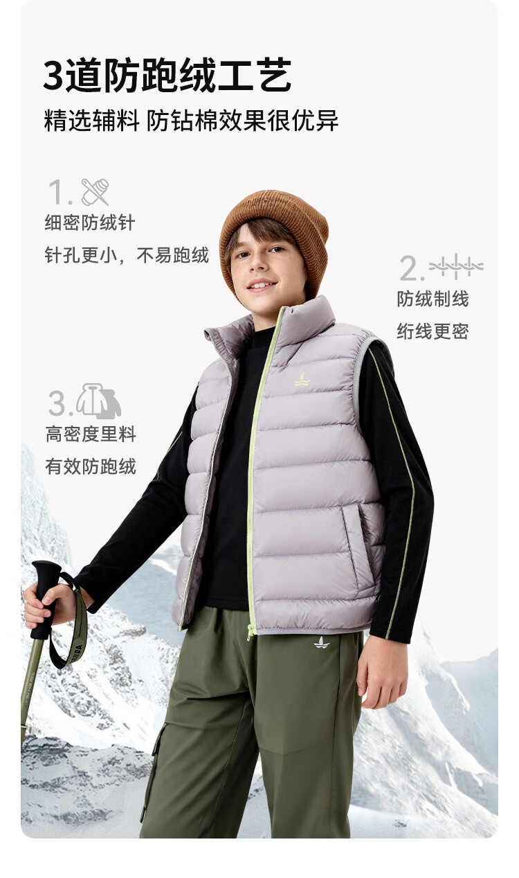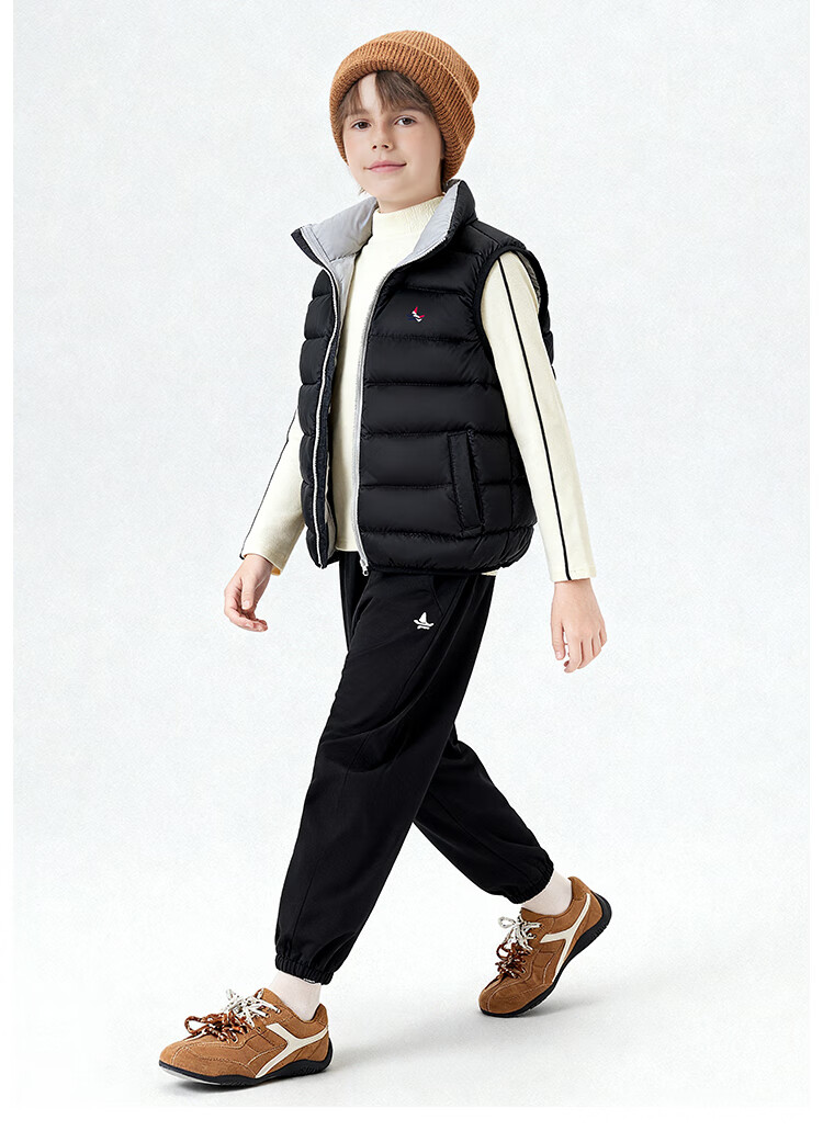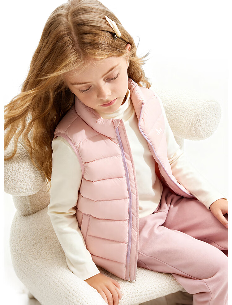 纳维凯尔儿童羽绒马甲冬季新款男童羽绒马甲女童外套学生上衣防寒保暖舒适 插袋马甲米白 150