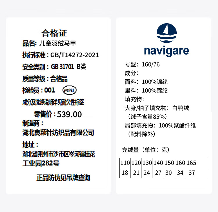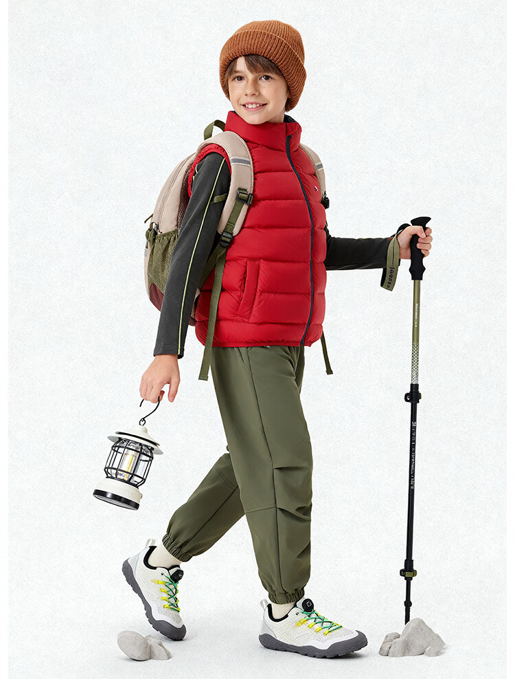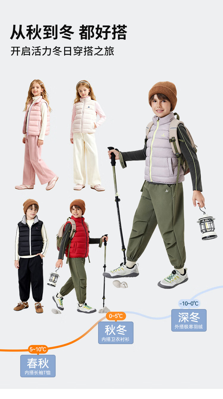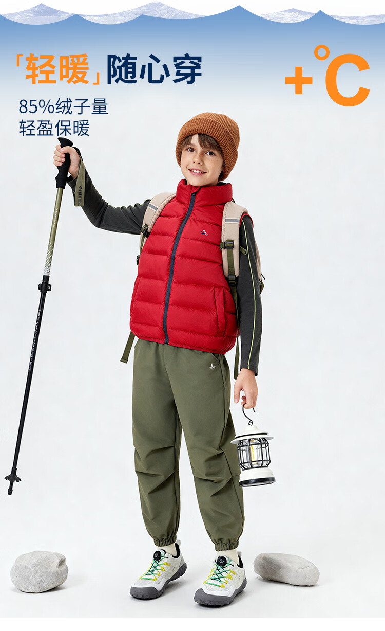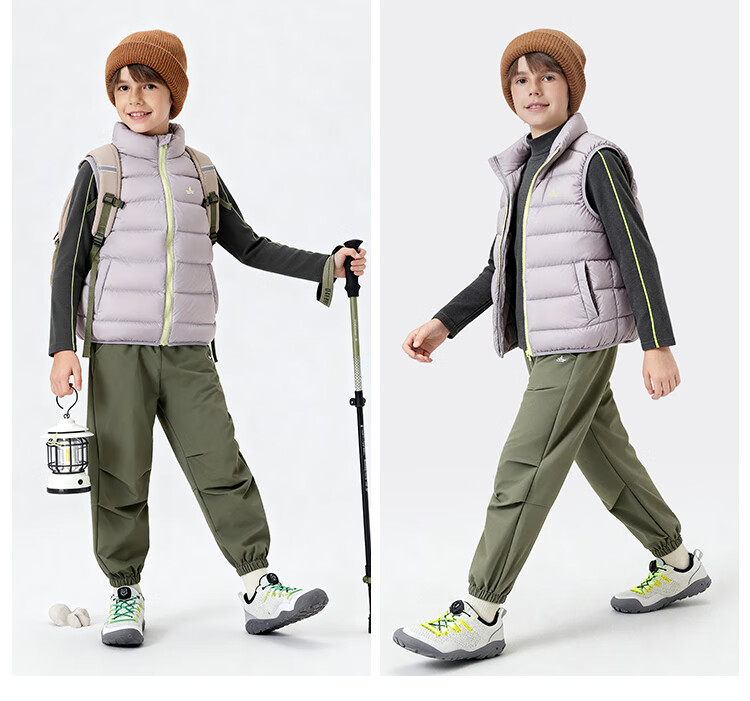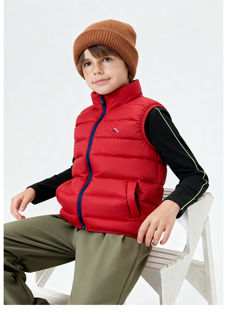 纳维凯尔儿童羽绒马甲冬季新款男童羽绒马甲女童外套学生上衣防寒保暖舒适 插袋马甲米白 150
