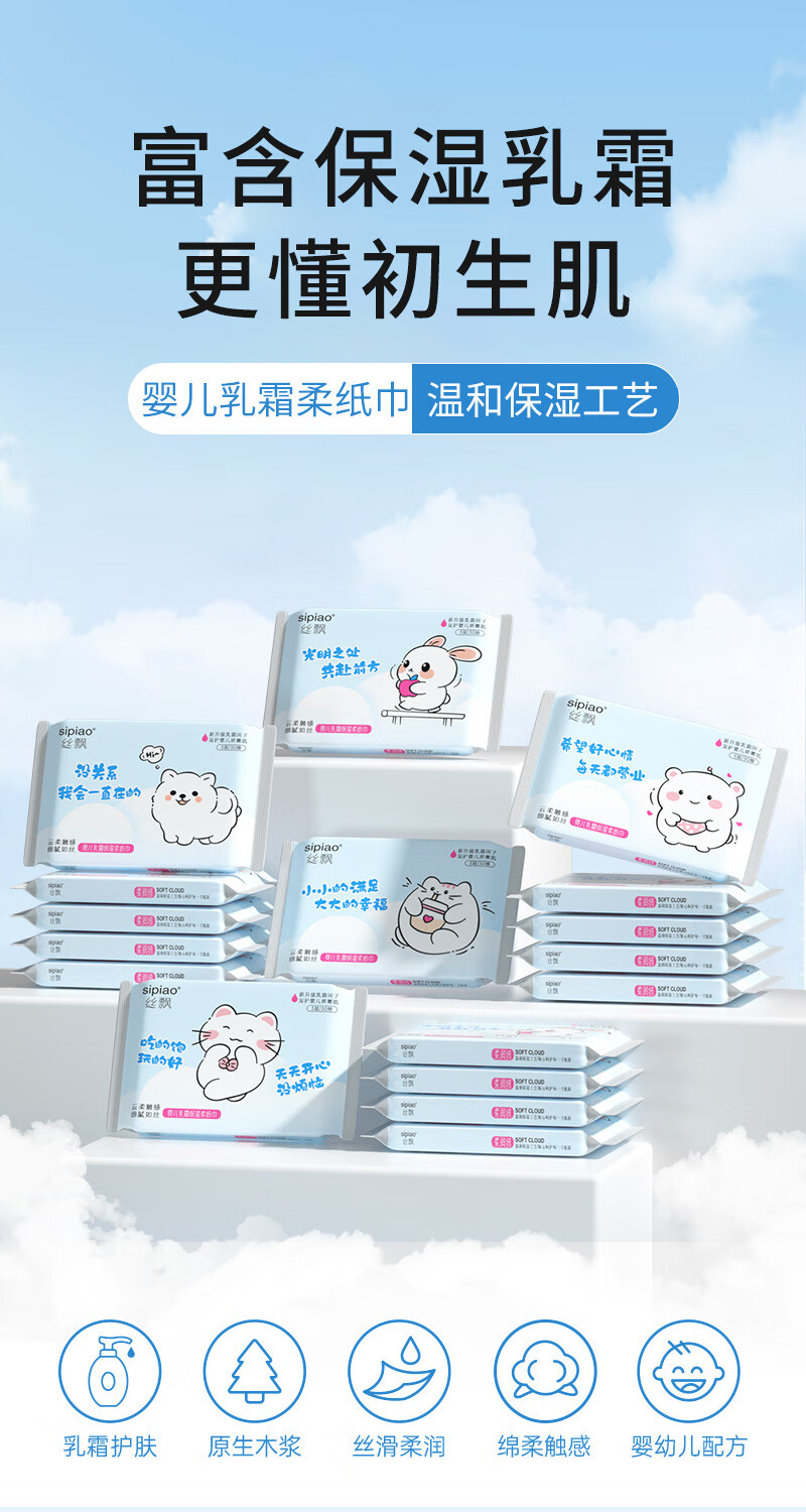 丝飘小包便携3层90张2包云柔婴儿可用新生保湿乳霜纸巾抽纸可湿水