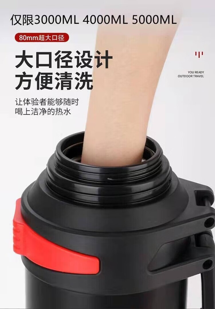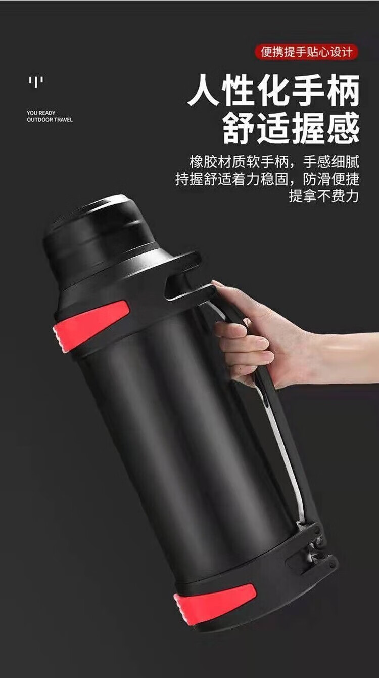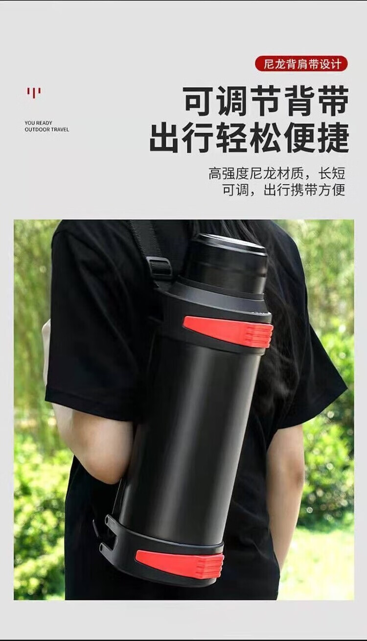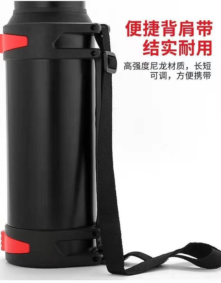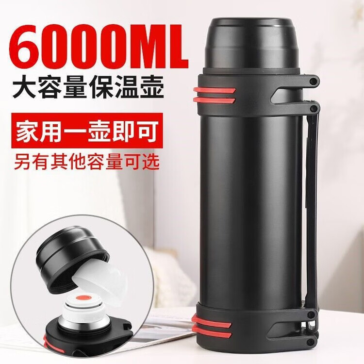 喆系户外大容量保温壶工地304不锈钢男女便携车载旅行水壶家用暖瓶 黑色1000ML保温3-6小时 304不锈钢加厚款【背带+杯刷】