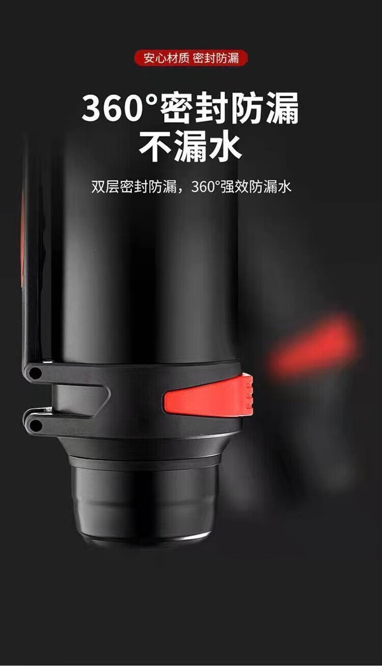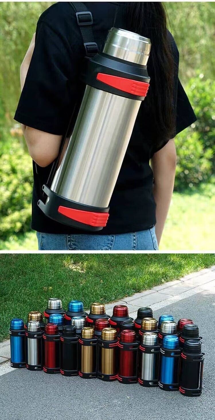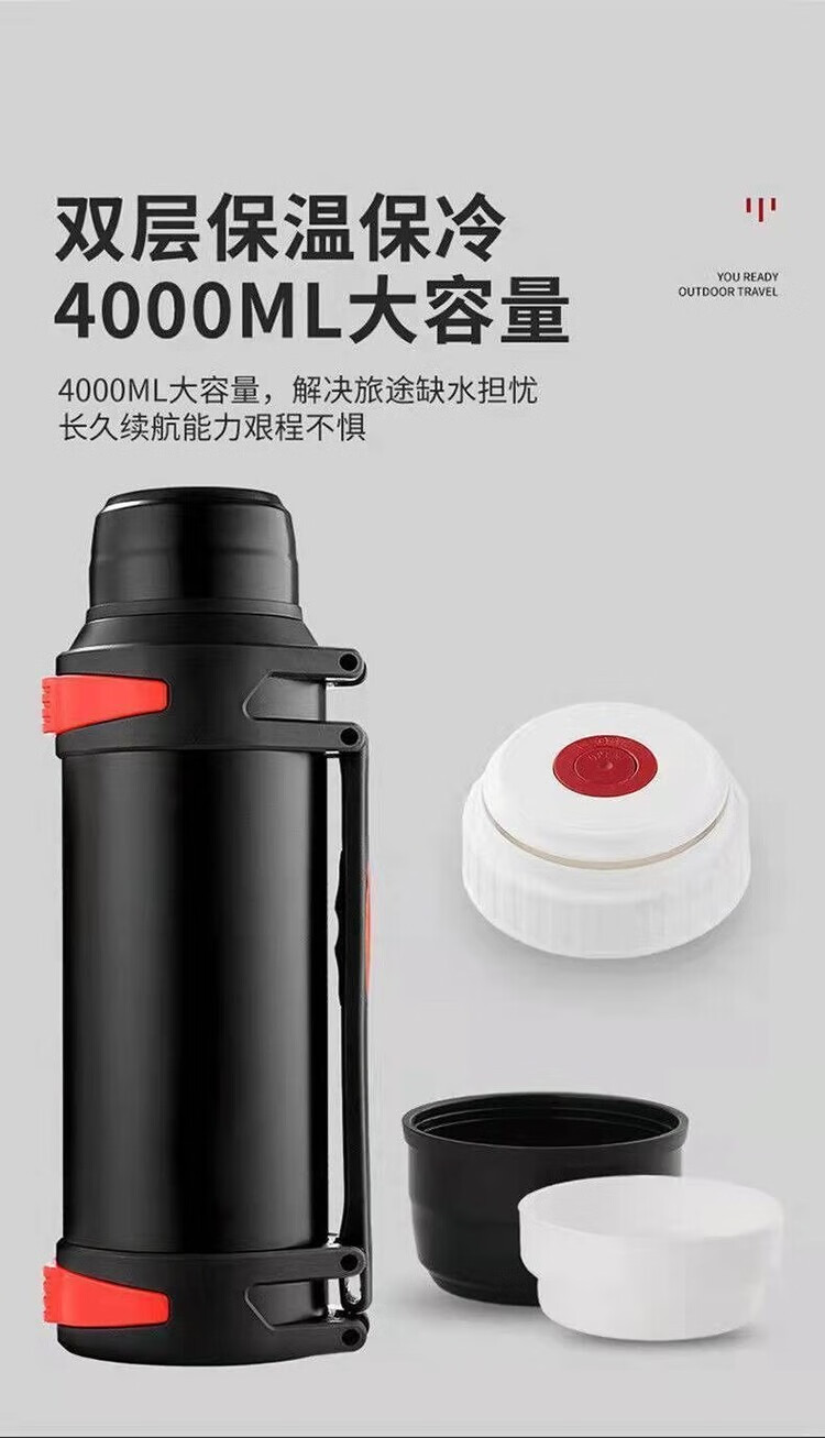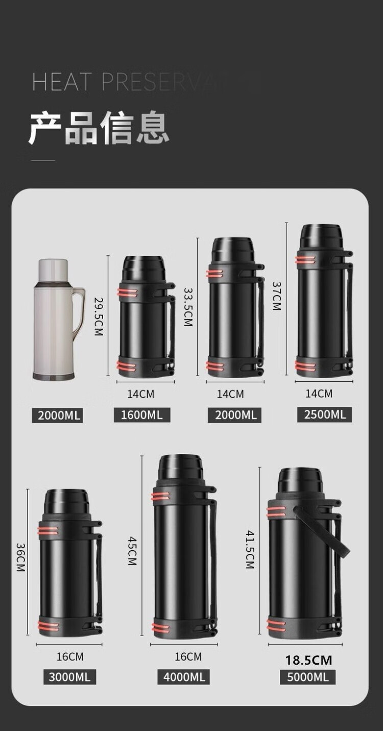 喆系户外大容量保温壶工地304不锈钢男女便携车载旅行水壶家用暖瓶 黑色1000ML保温3-6小时 304不锈钢加厚款【背带+杯刷】