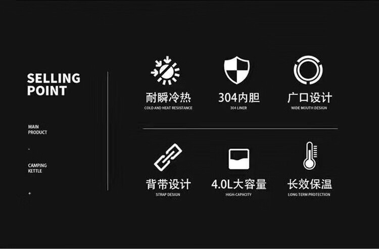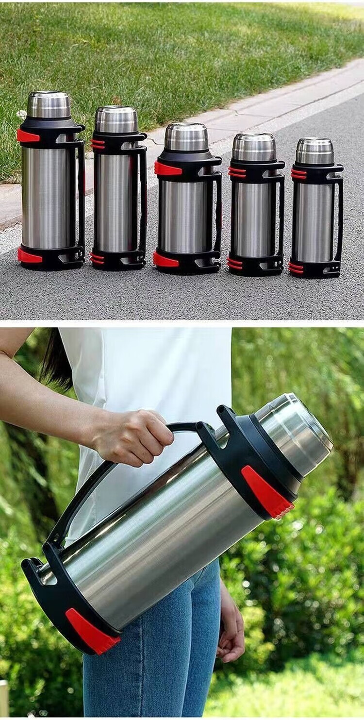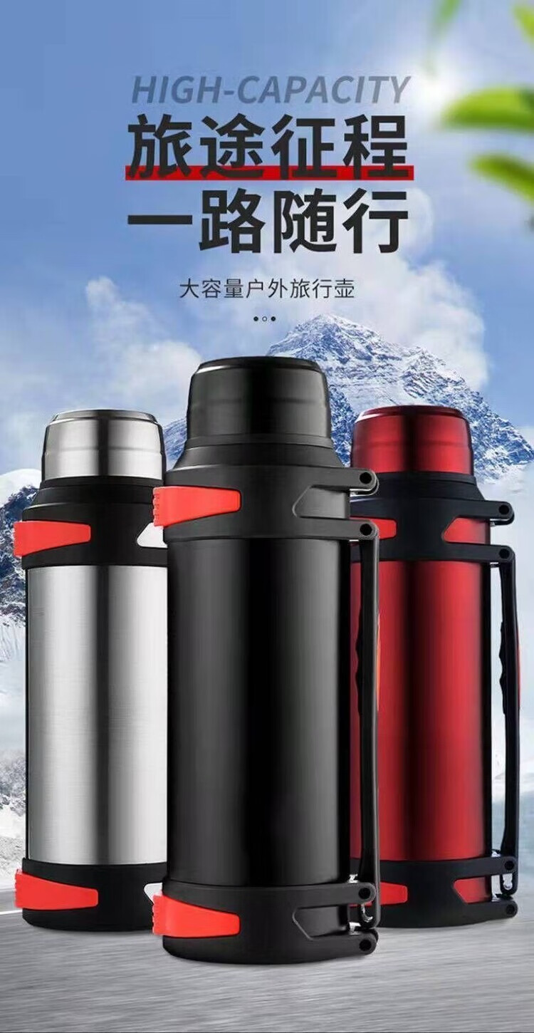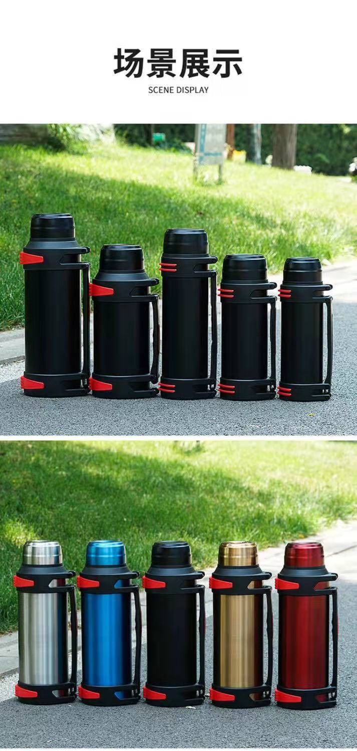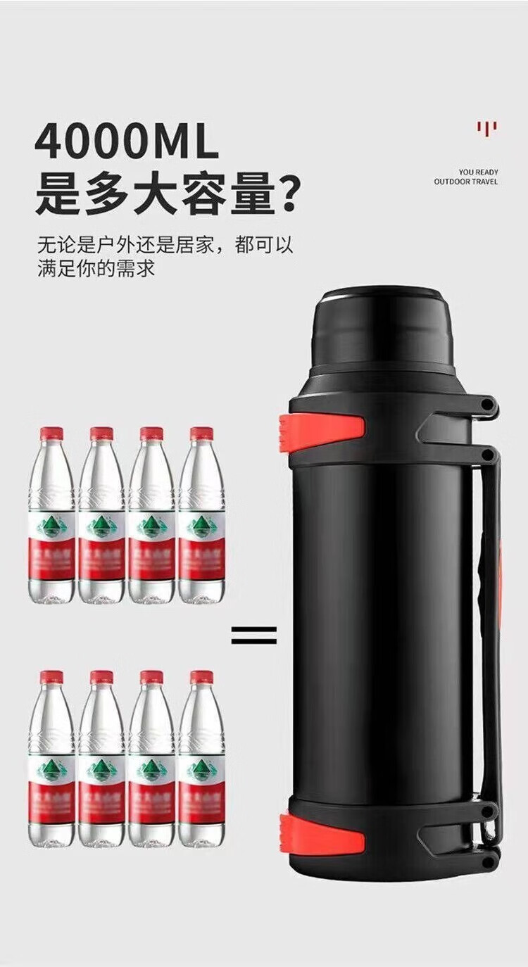 喆系户外大容量保温壶工地304不锈钢男女便携车载旅行水壶家用暖瓶 黑色1000ML保温3-6小时 304不锈钢加厚款【背带+杯刷】