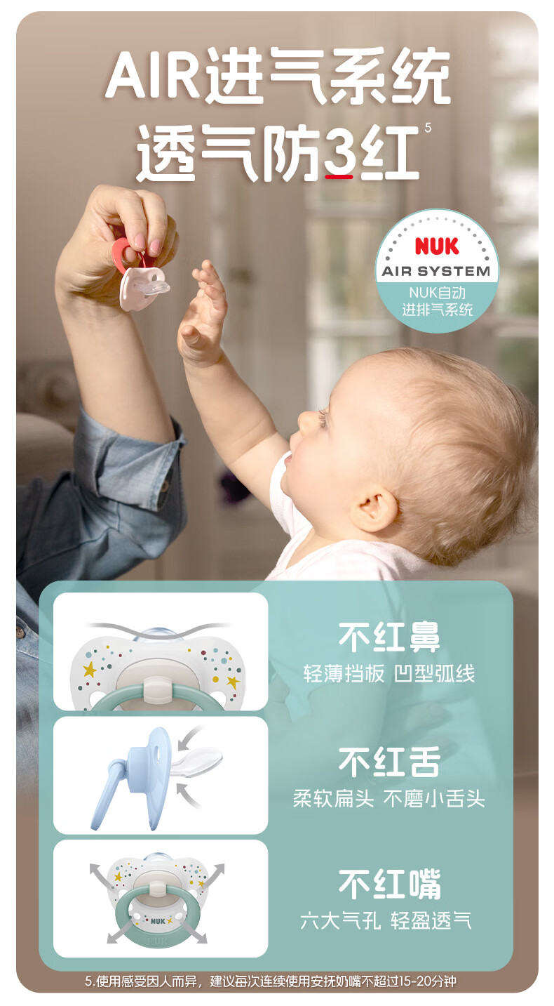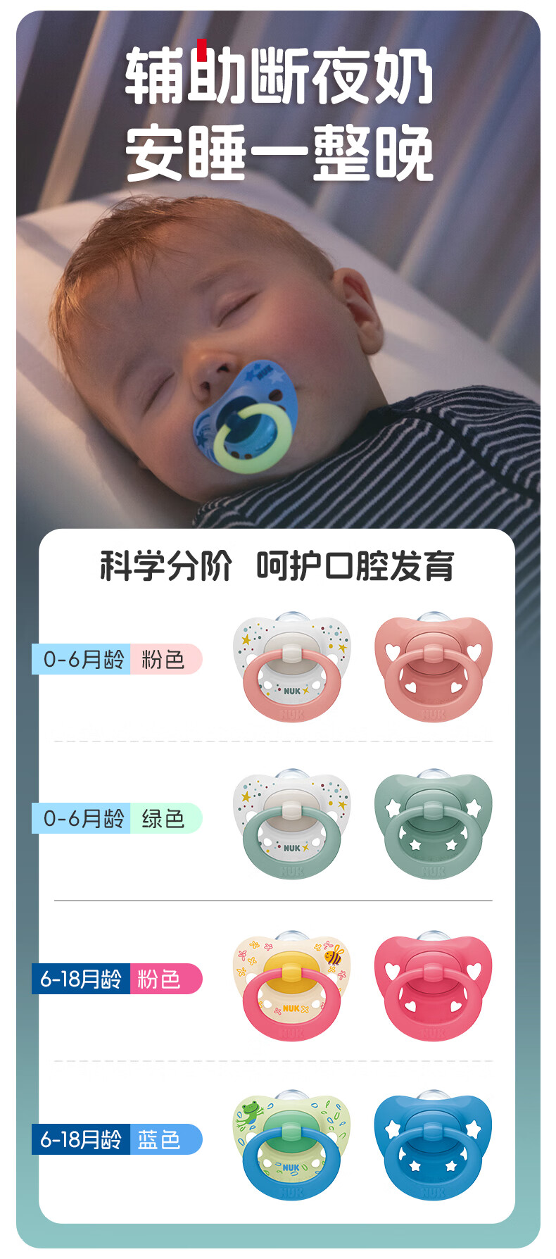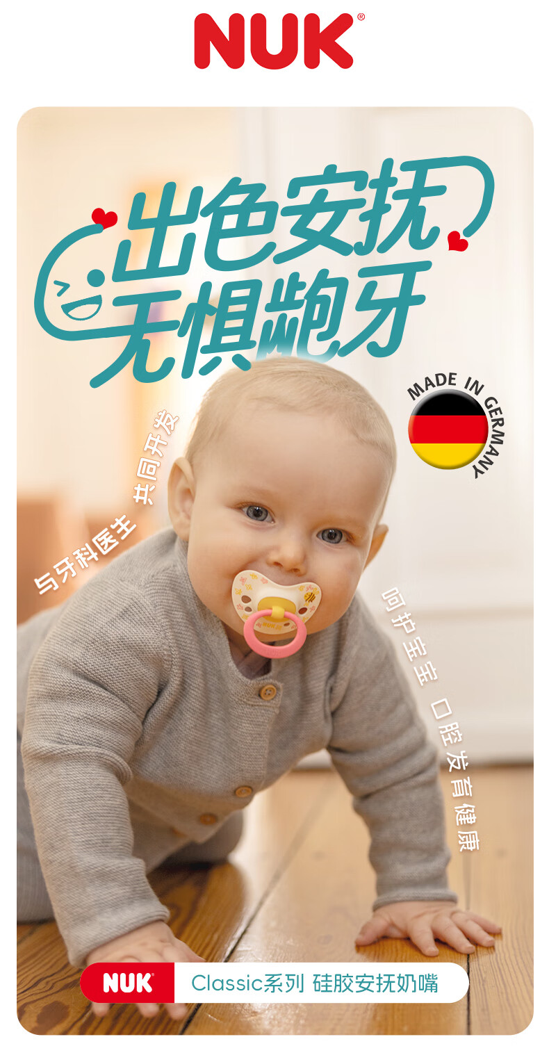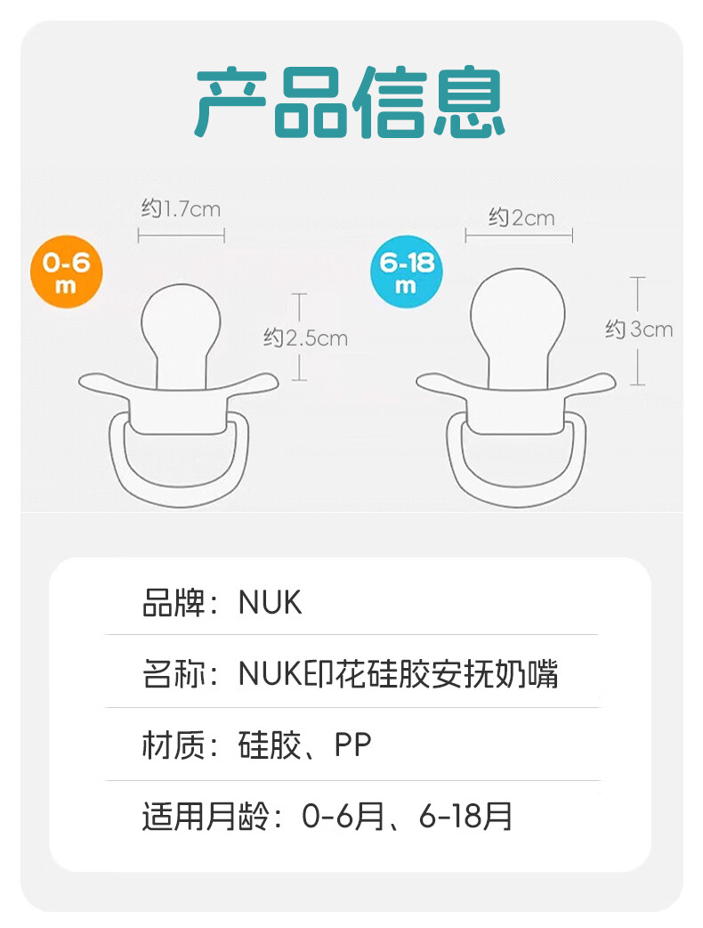 NUK德国海外婴儿硅胶印花安抚奶嘴 粉色款6-18月2个装防胀气防龅牙