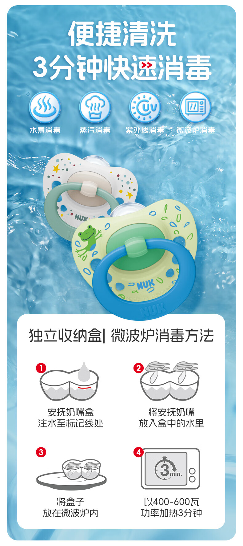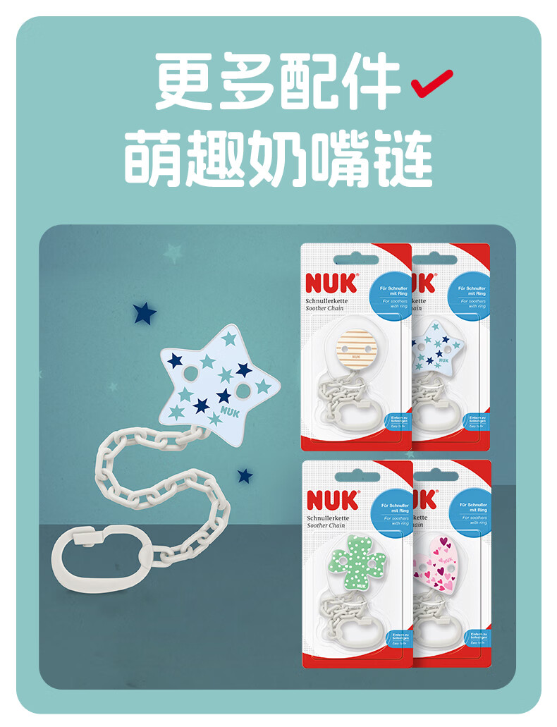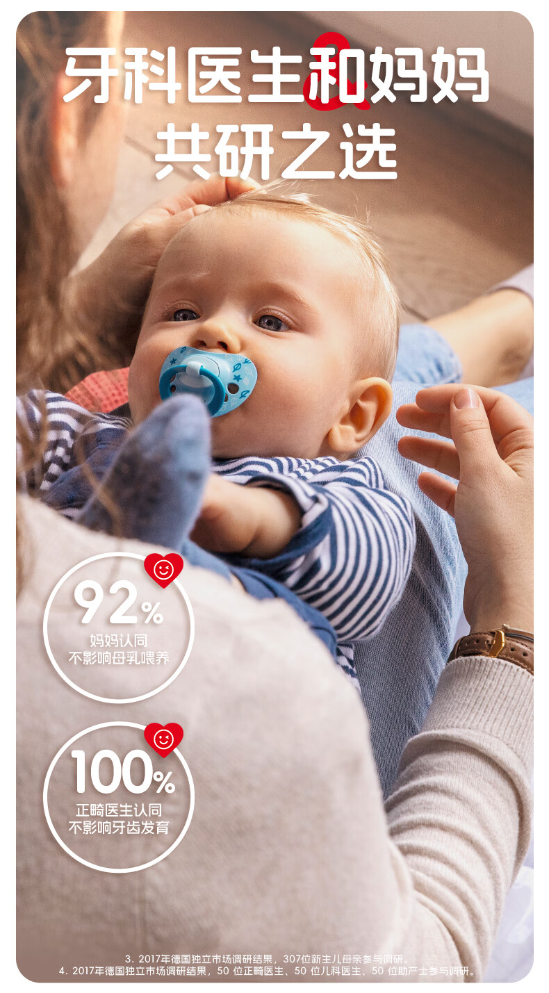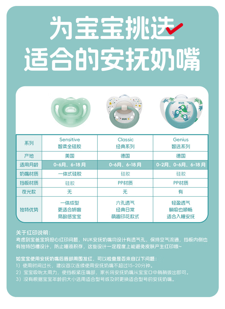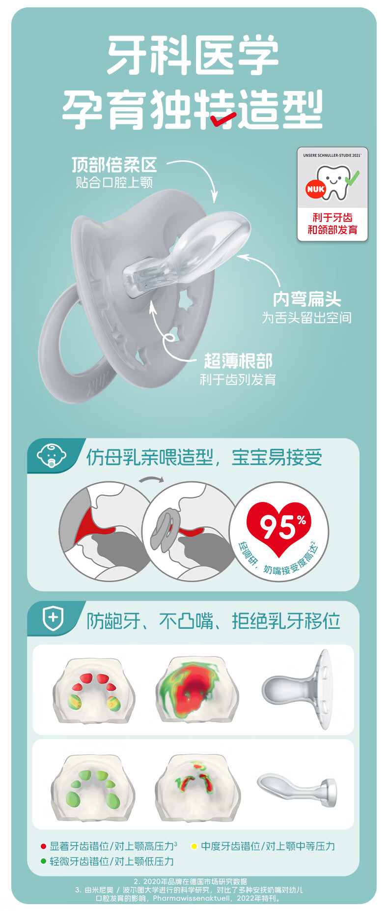 NUK德国海外婴儿硅胶印花安抚奶嘴 粉色款6-18月2个装防胀气防龅牙