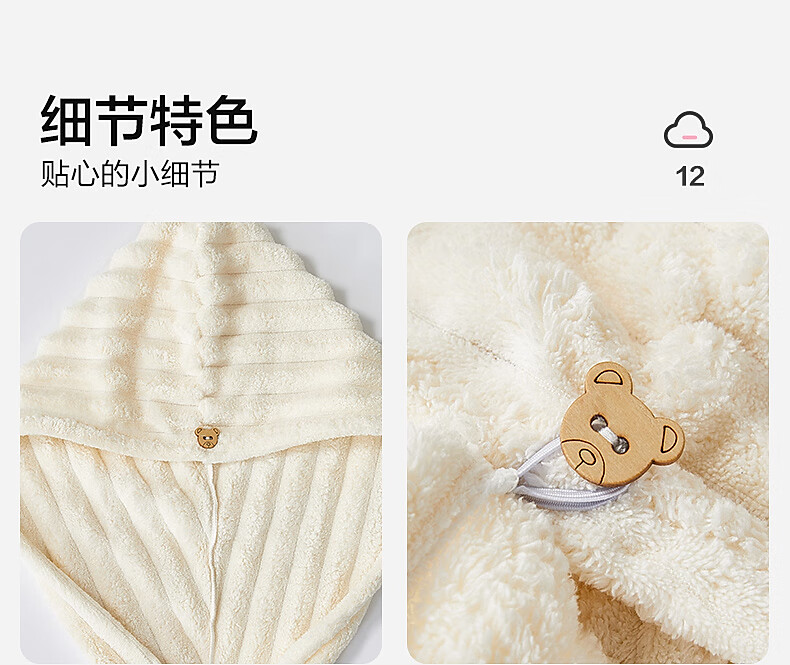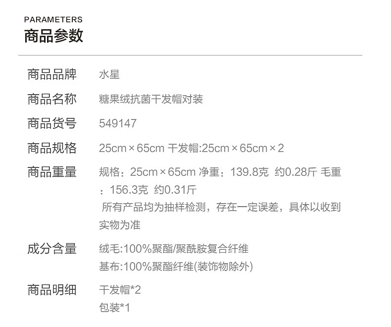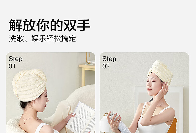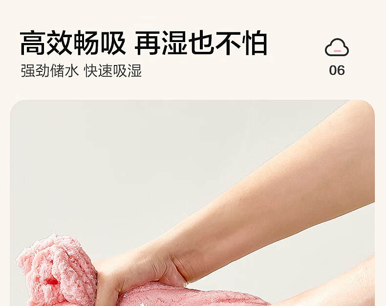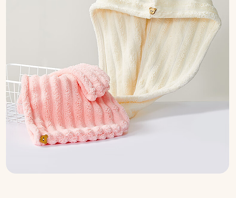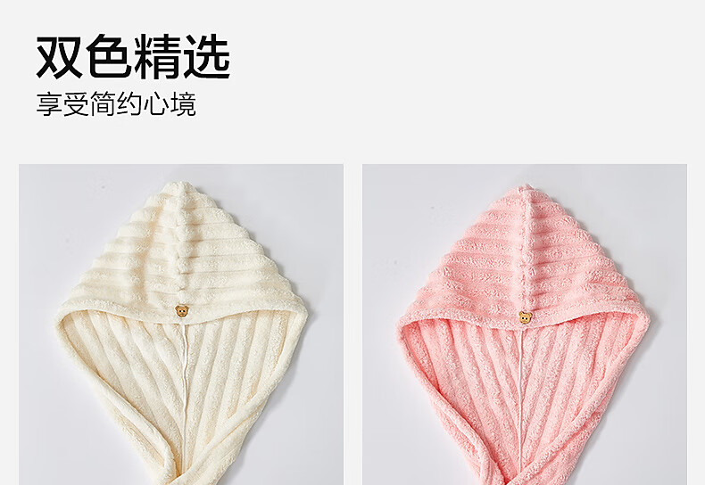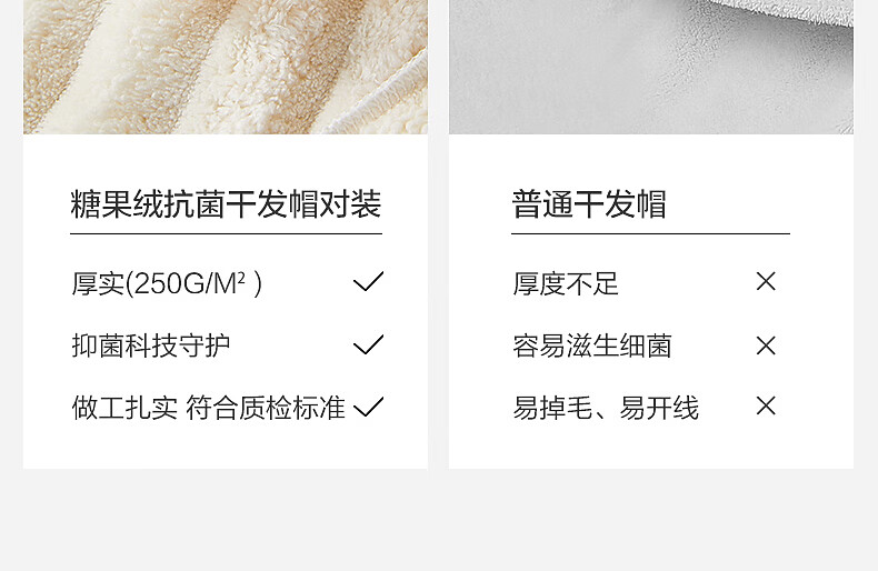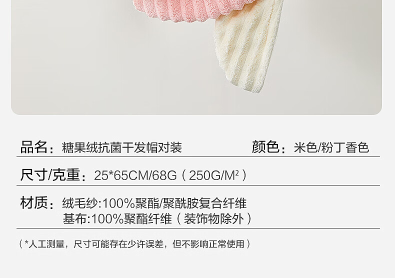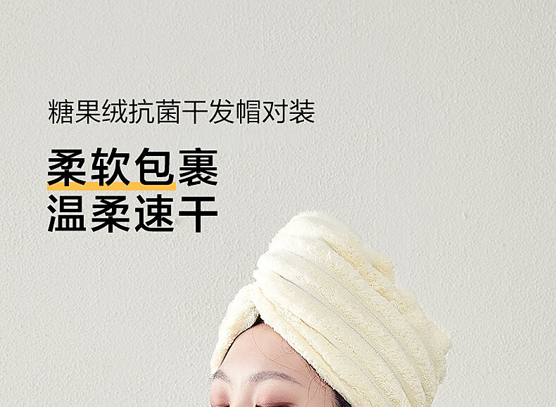 水星家纺【秒杀】干发帽一对装 超柔强吸水抗菌包头巾擦头发浴帽速干毛巾 糖果绒抗菌干发帽 2条 68g