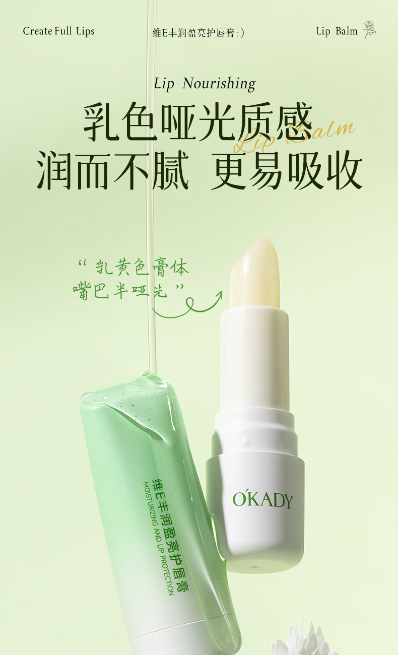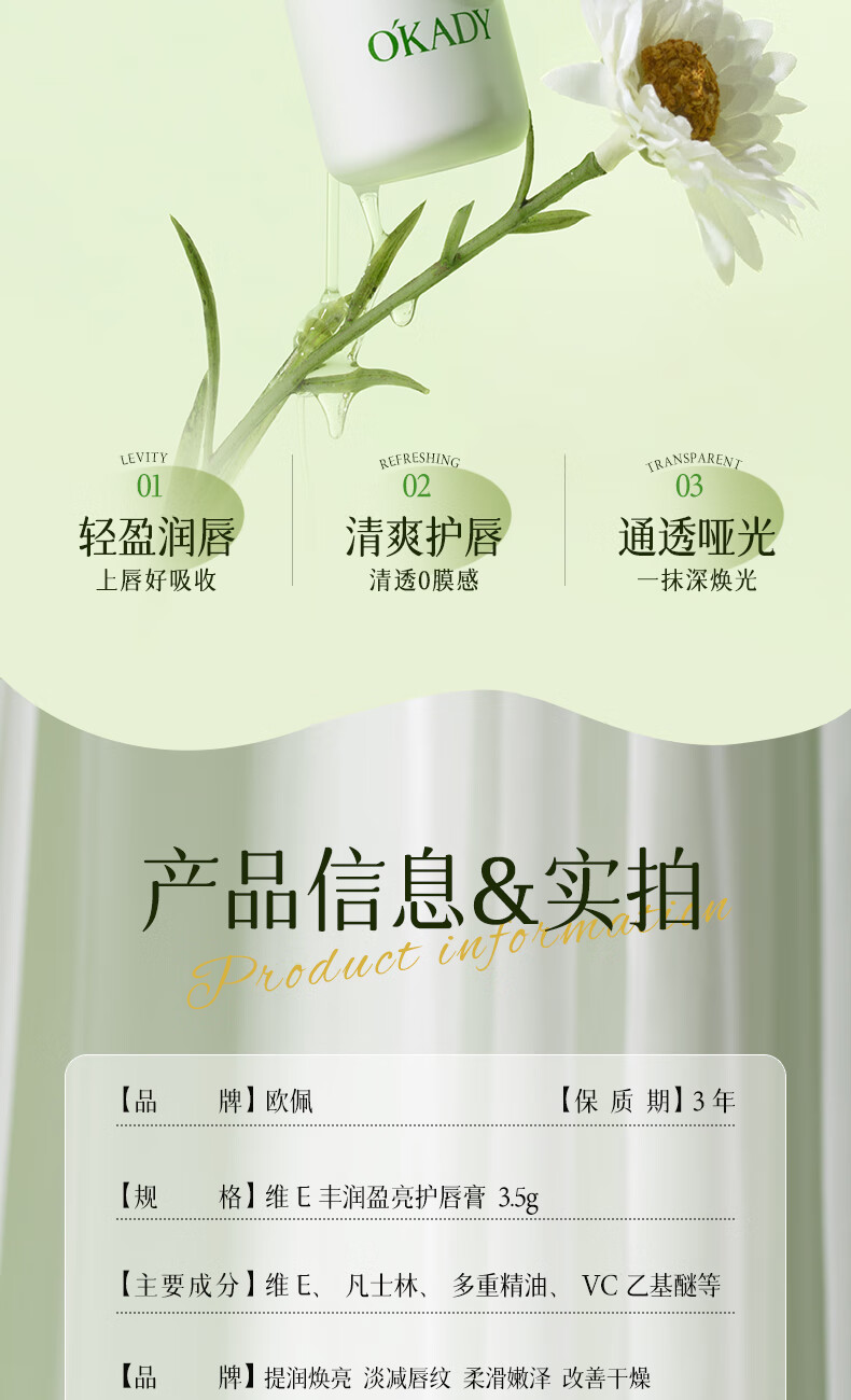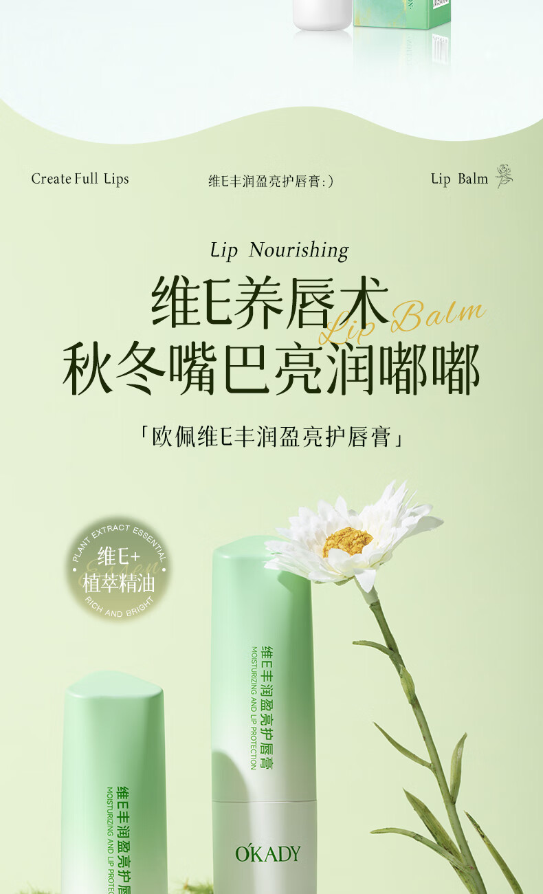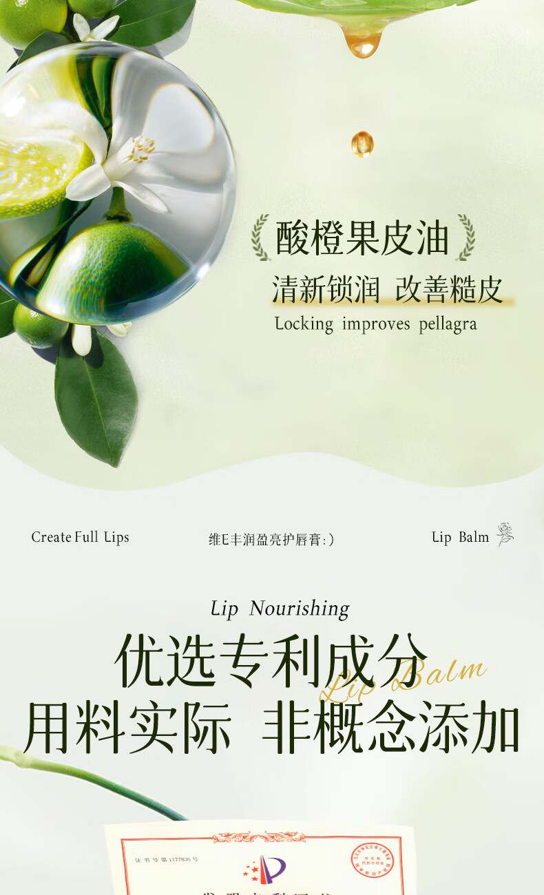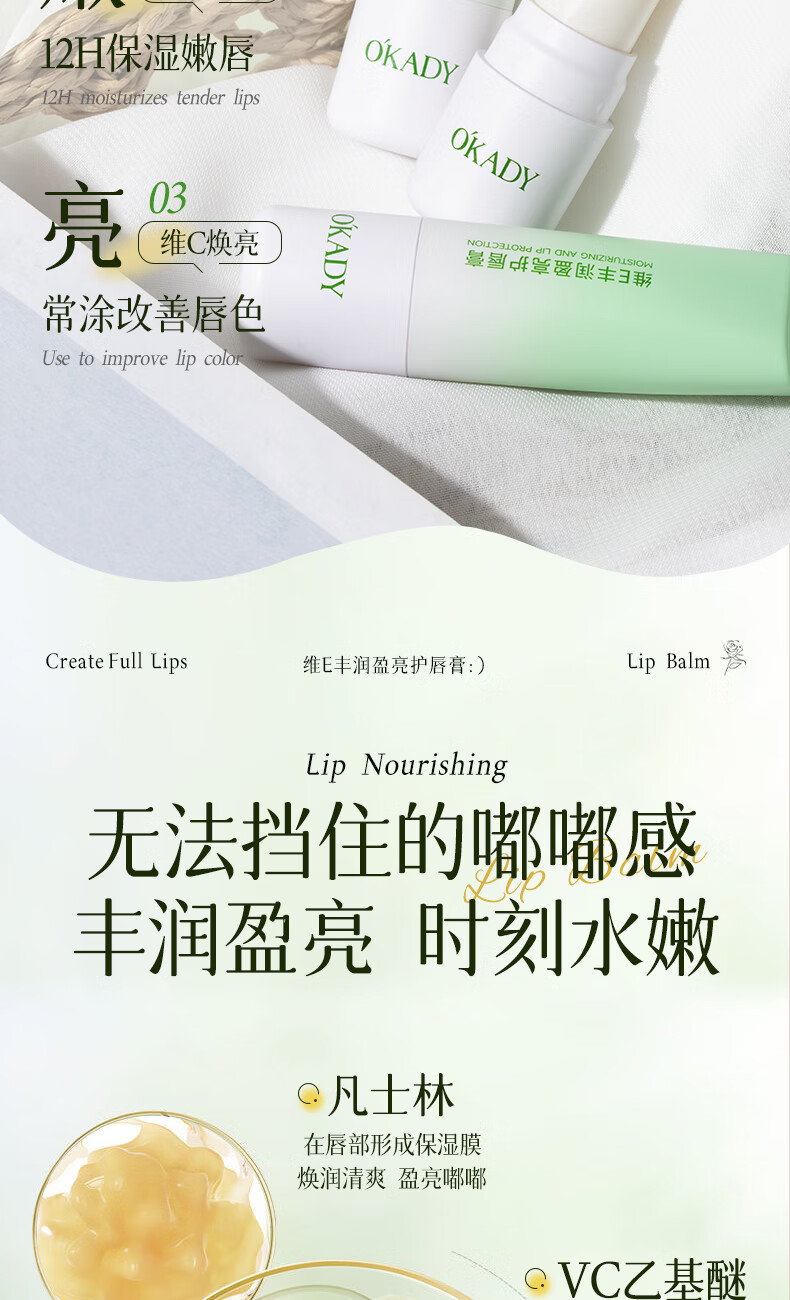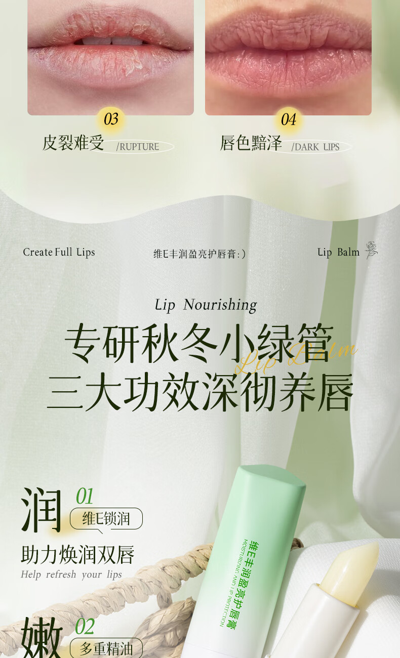 欧佩维E润唇膏丰润盈亮护唇膏防干裂脱皮补水滋润死皮干燥唇部 维生素C植萃润唇膏
