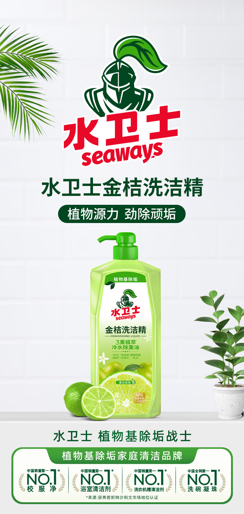 水卫士金桔洗洁精1.35kg 去油除菌餐具洗涤果蔬清洗剂食品用级别水卫仕 【到手5.4斤】1.35kg*2瓶